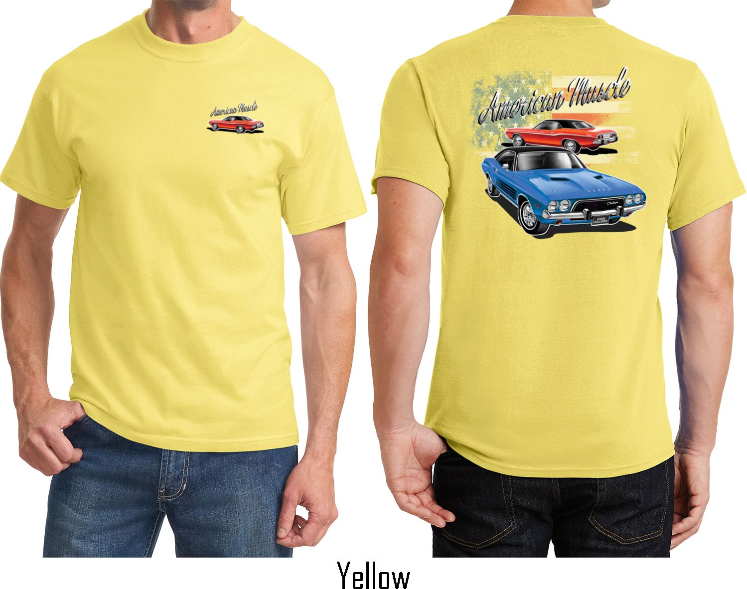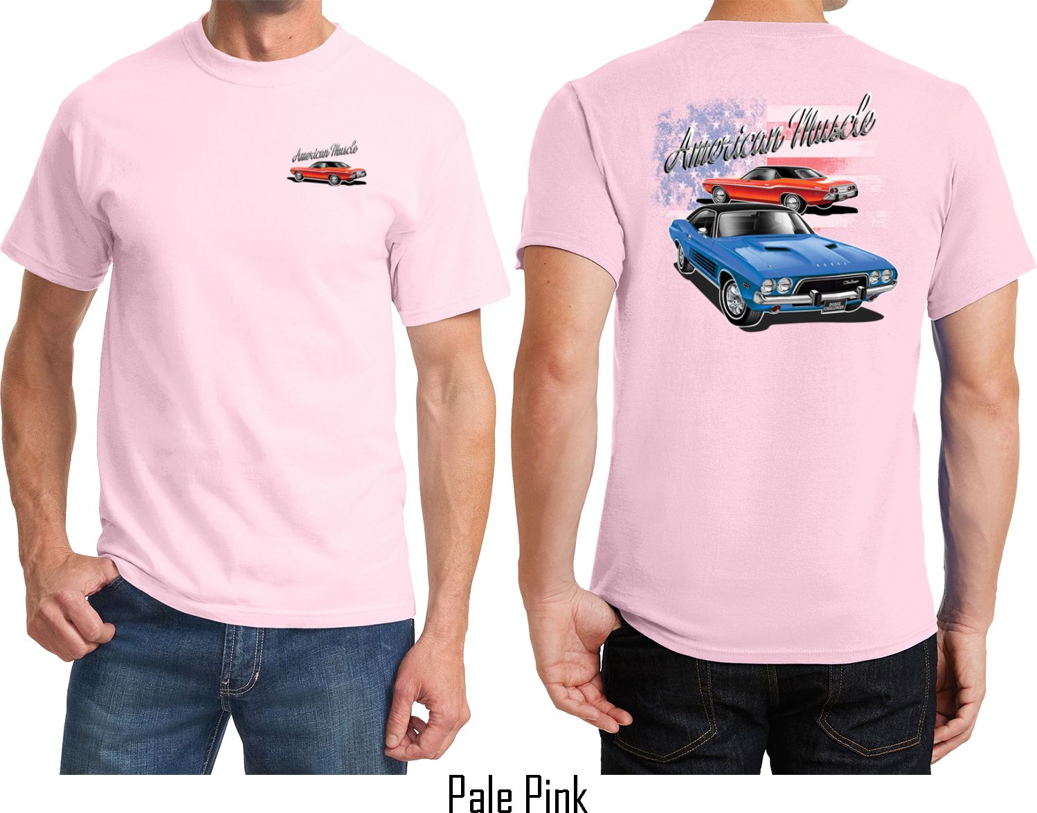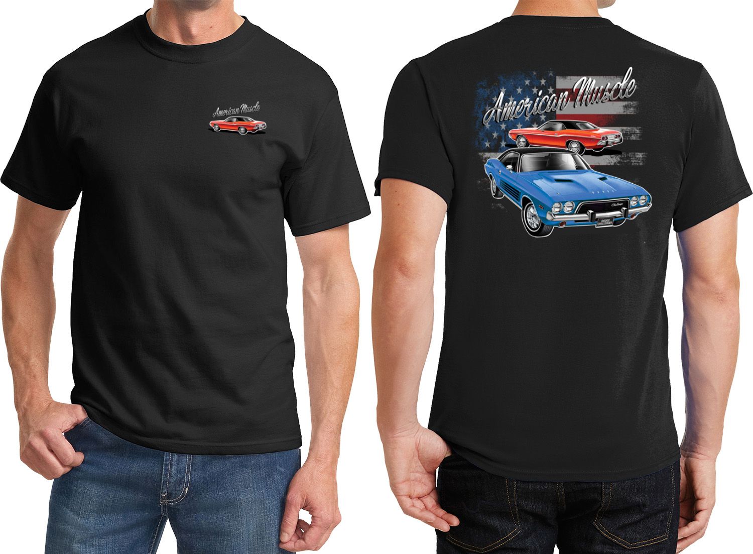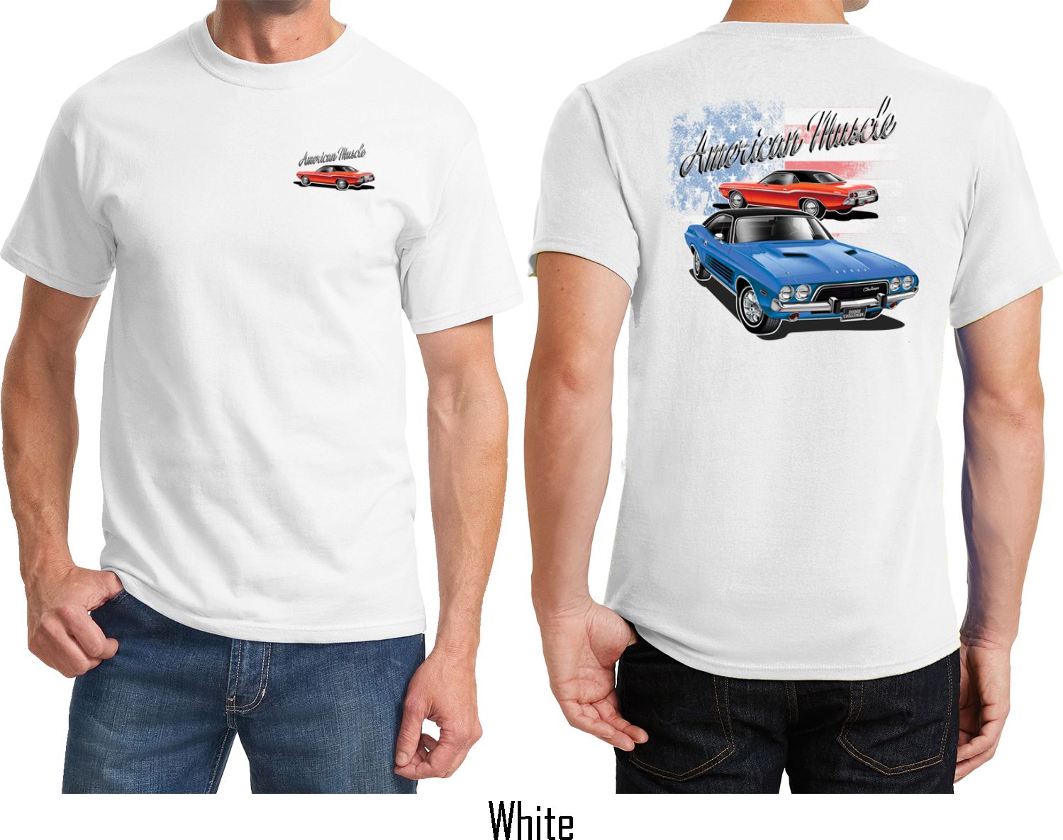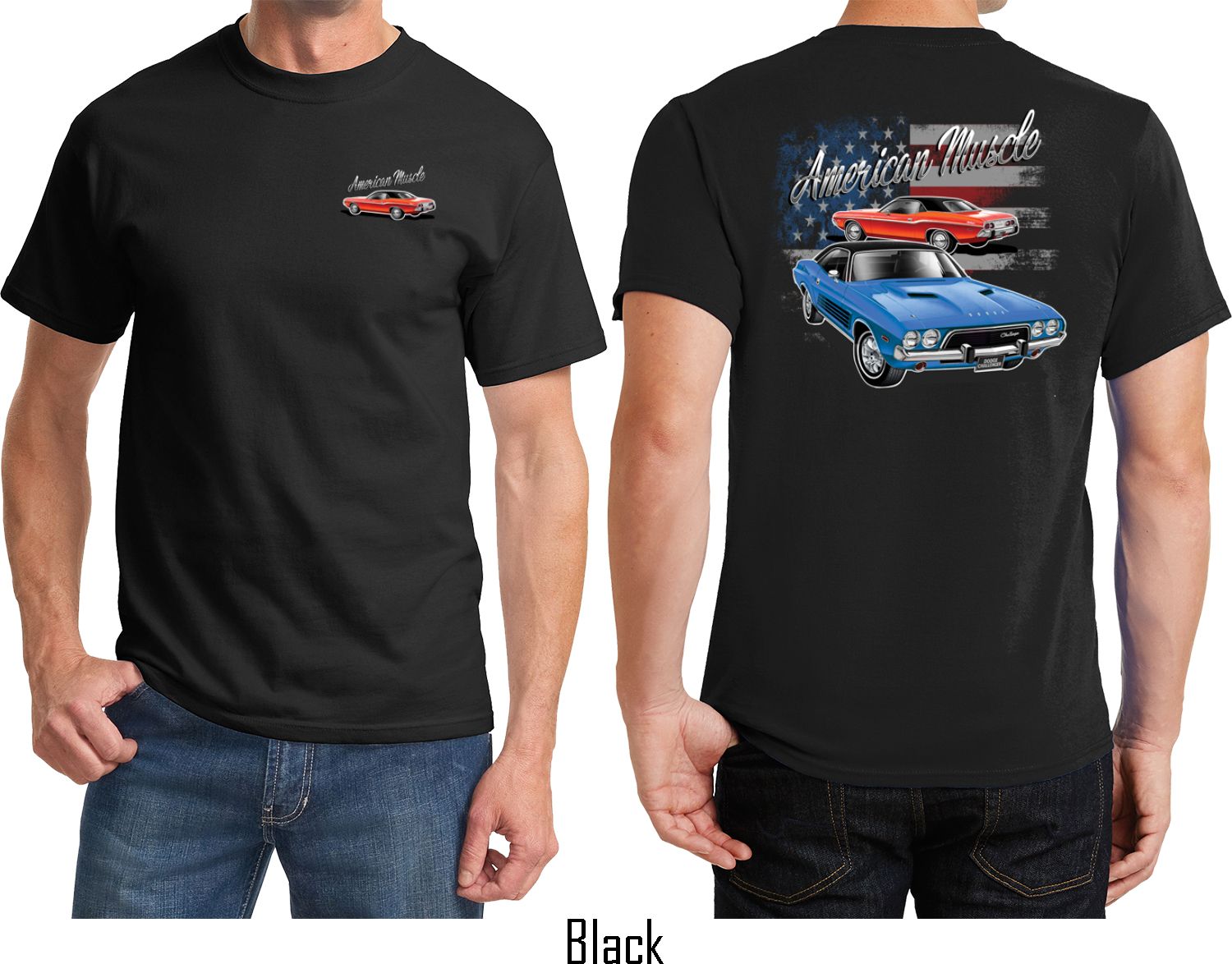 | | Dodge American Muscle Blue and Red (Front & Back) T-shirtA mens t-shirt featuring a red Dodge Challenger on the front and a blue and red American Muscle Dodge Challenger on the back. Our mens tee is made of 100% cotton. (Ash is made with a blend of cotton/poly) Available in sizes Small through 6XL. Machine wash cold with like colors; dry low heat. ![]() |