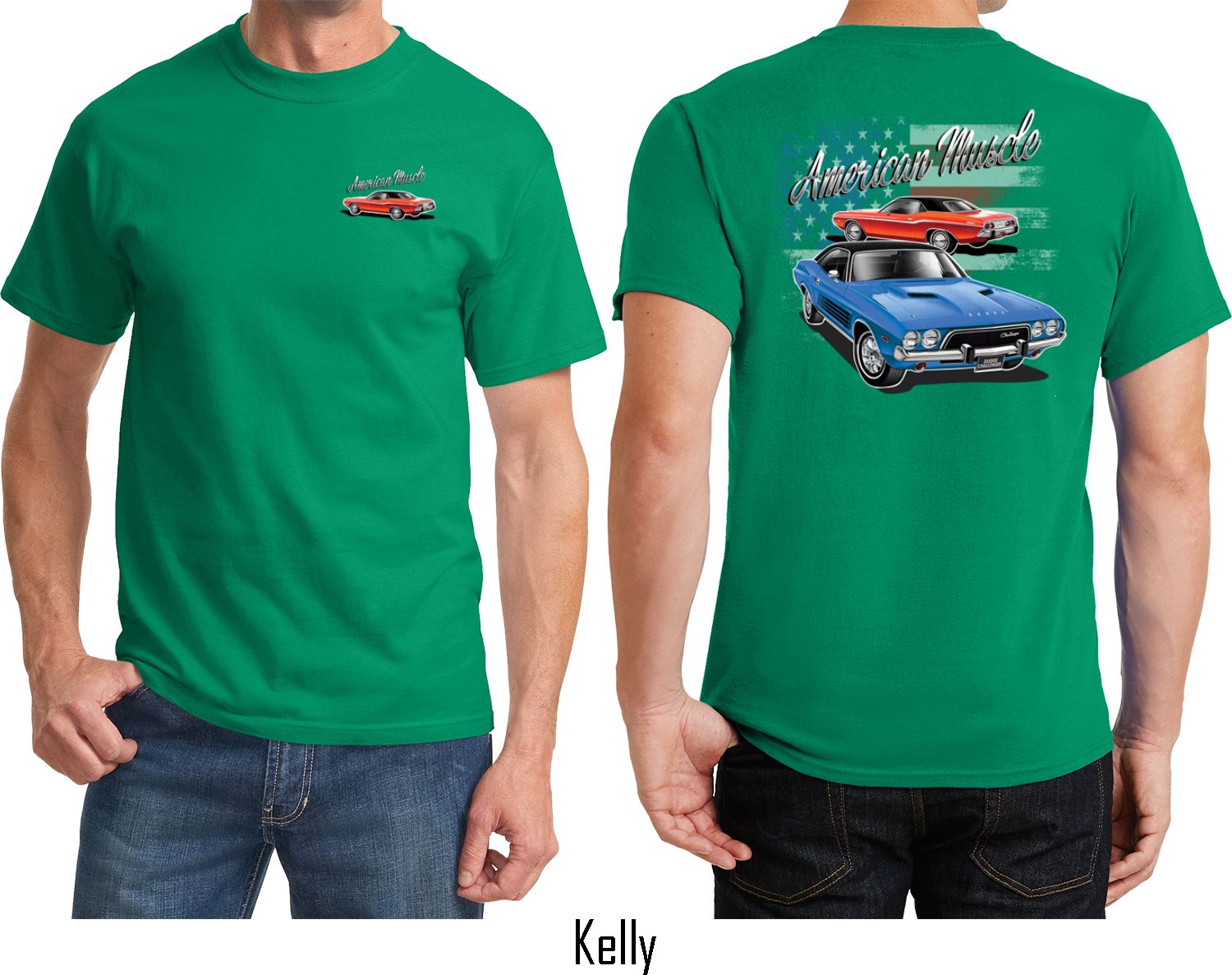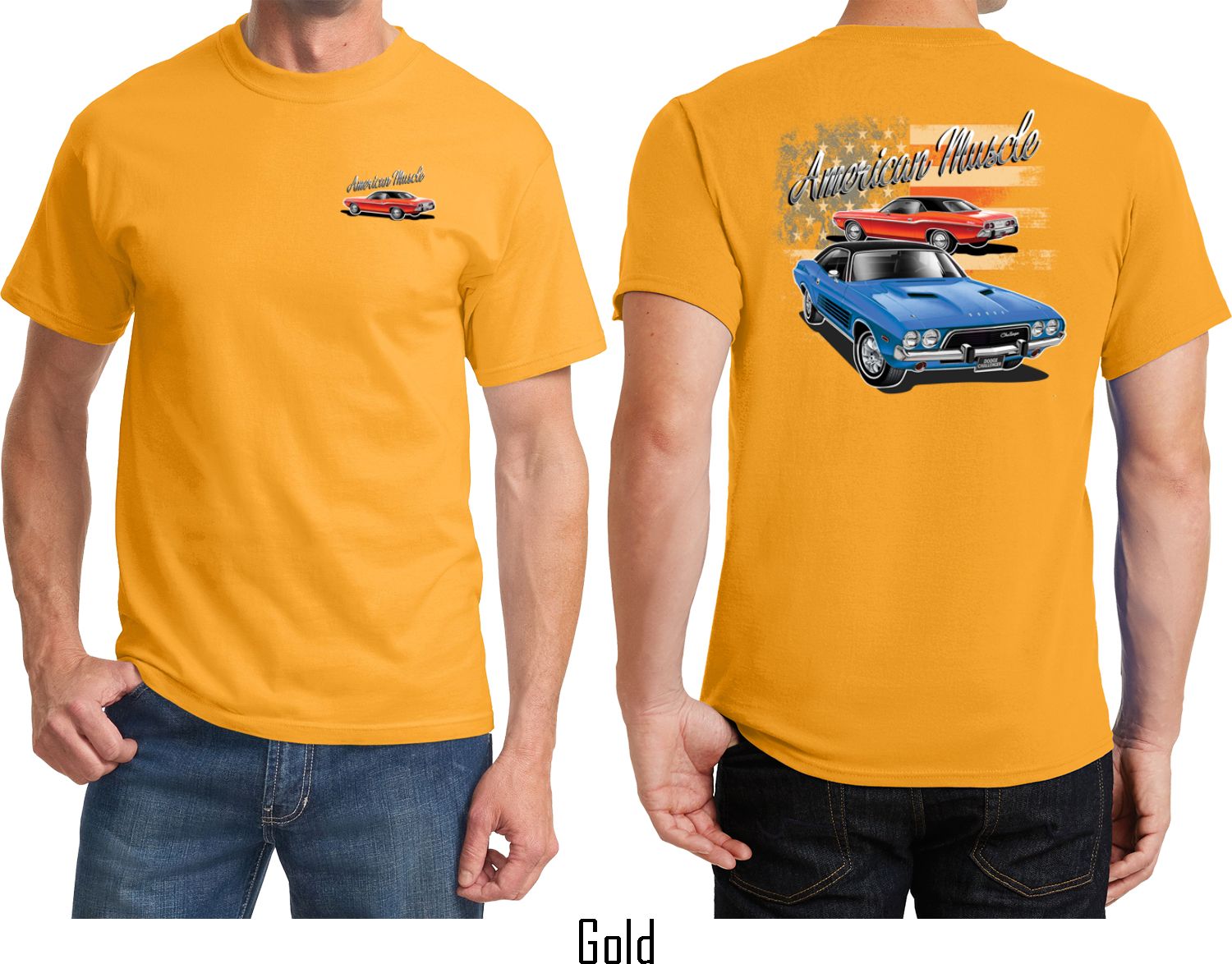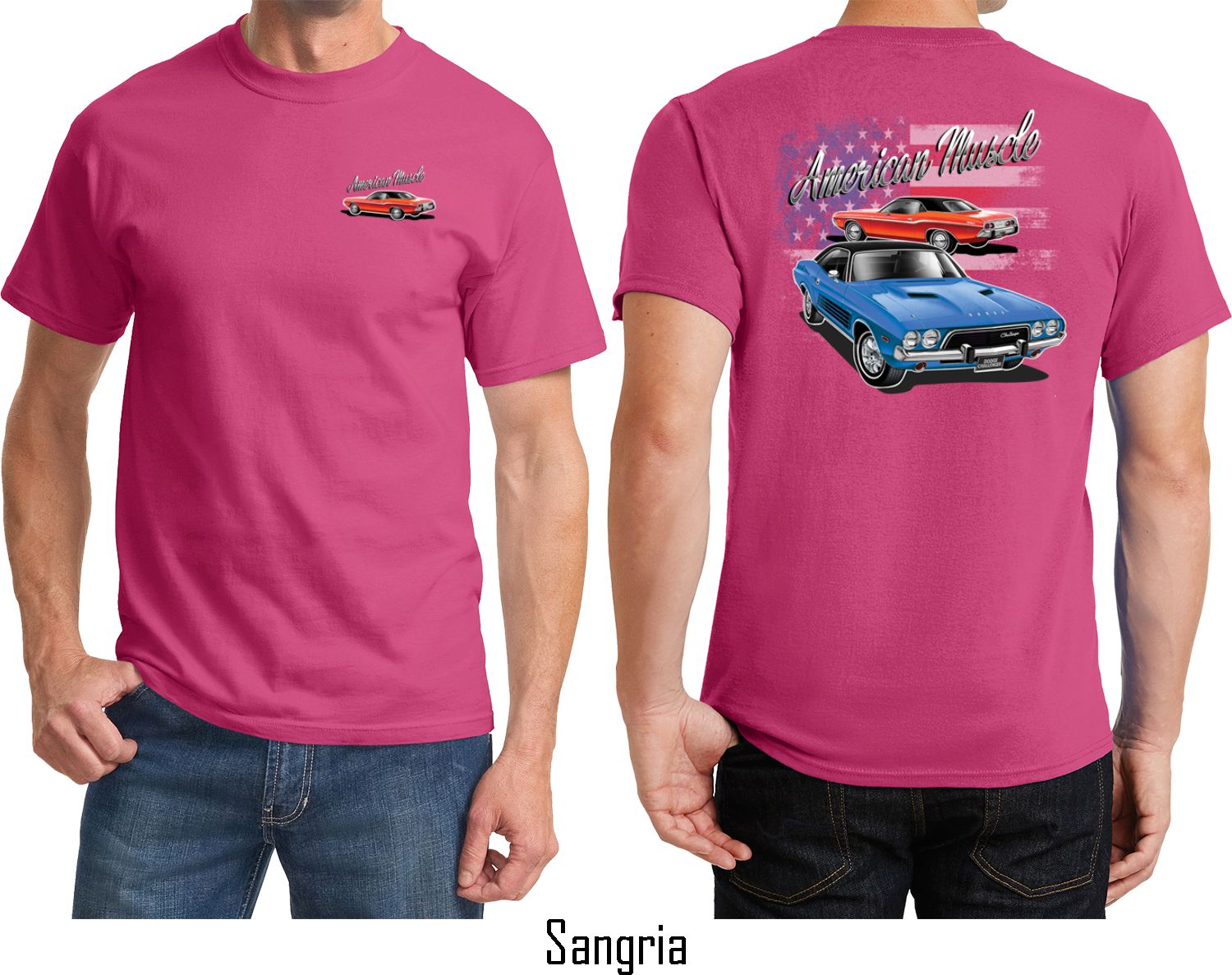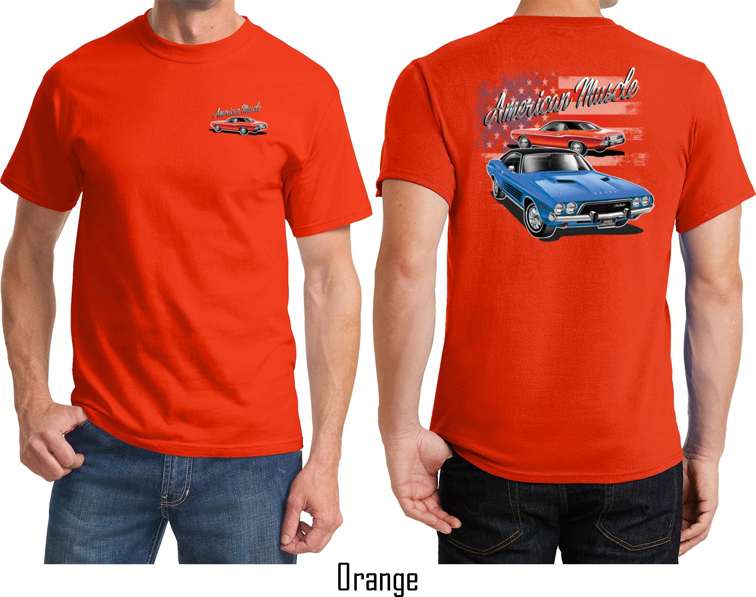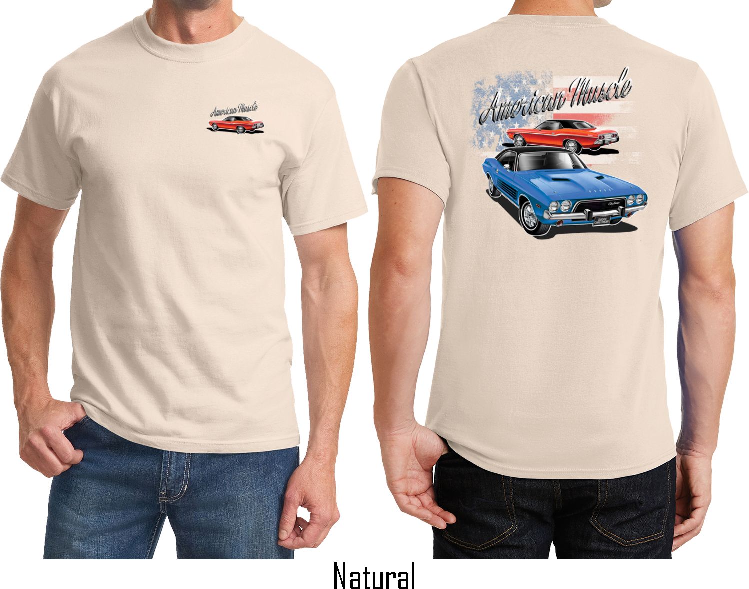 | | Dodge American Muscle Blue and Red (Front & Back) T-shirtA mens t-shirt featuring a red Dodge Challenger on the front and a blue and red American Muscle Dodge Challenger on the back. Our mens tee is made of 100% cotton. (Ash is made with a blend of cotton/poly) Available in sizes Small through 6XL. Machine wash cold with like colors; dry low heat. ![]() |