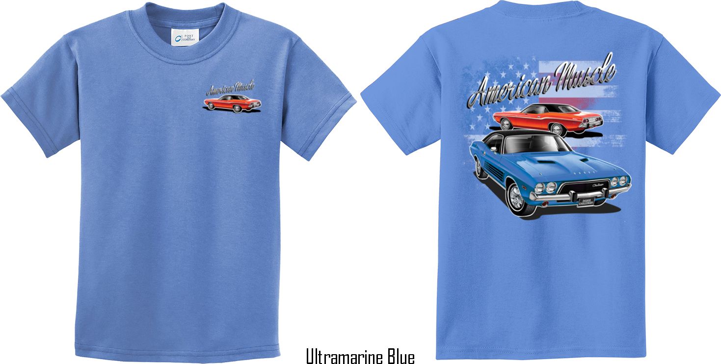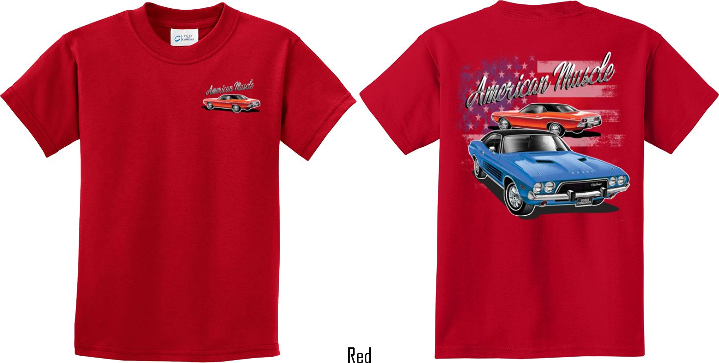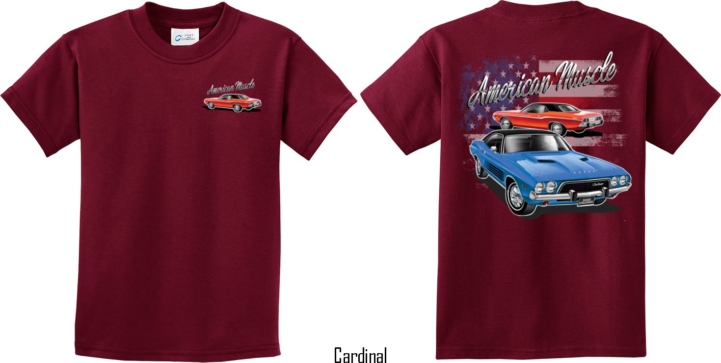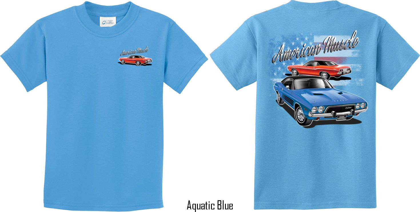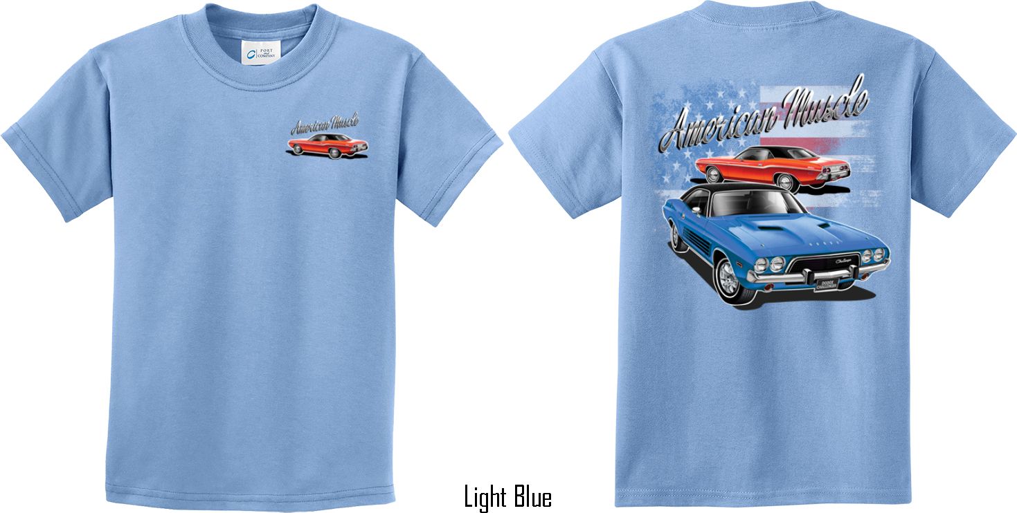 | | Dodge American Muscle Blue and Red (Front & Back) Youth T-shirtA kids t-shirt featuring a red Dodge Challenger on the front and a blue and red American Muscle Dodge Challenger on the back. Our kids tee is made of 100% cotton. (Ash and Athletic Heather are made with a blend of cotton/poly) Available in sizes Small through XL. Machine wash cold with like colors; dry low heat. ![]() |