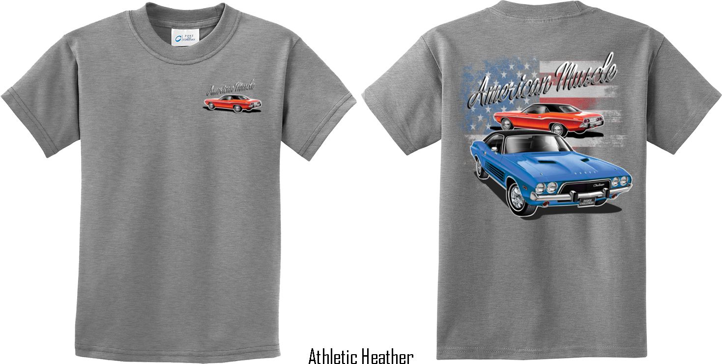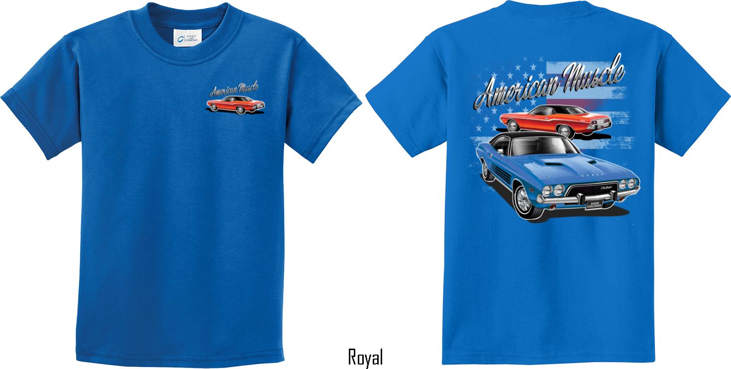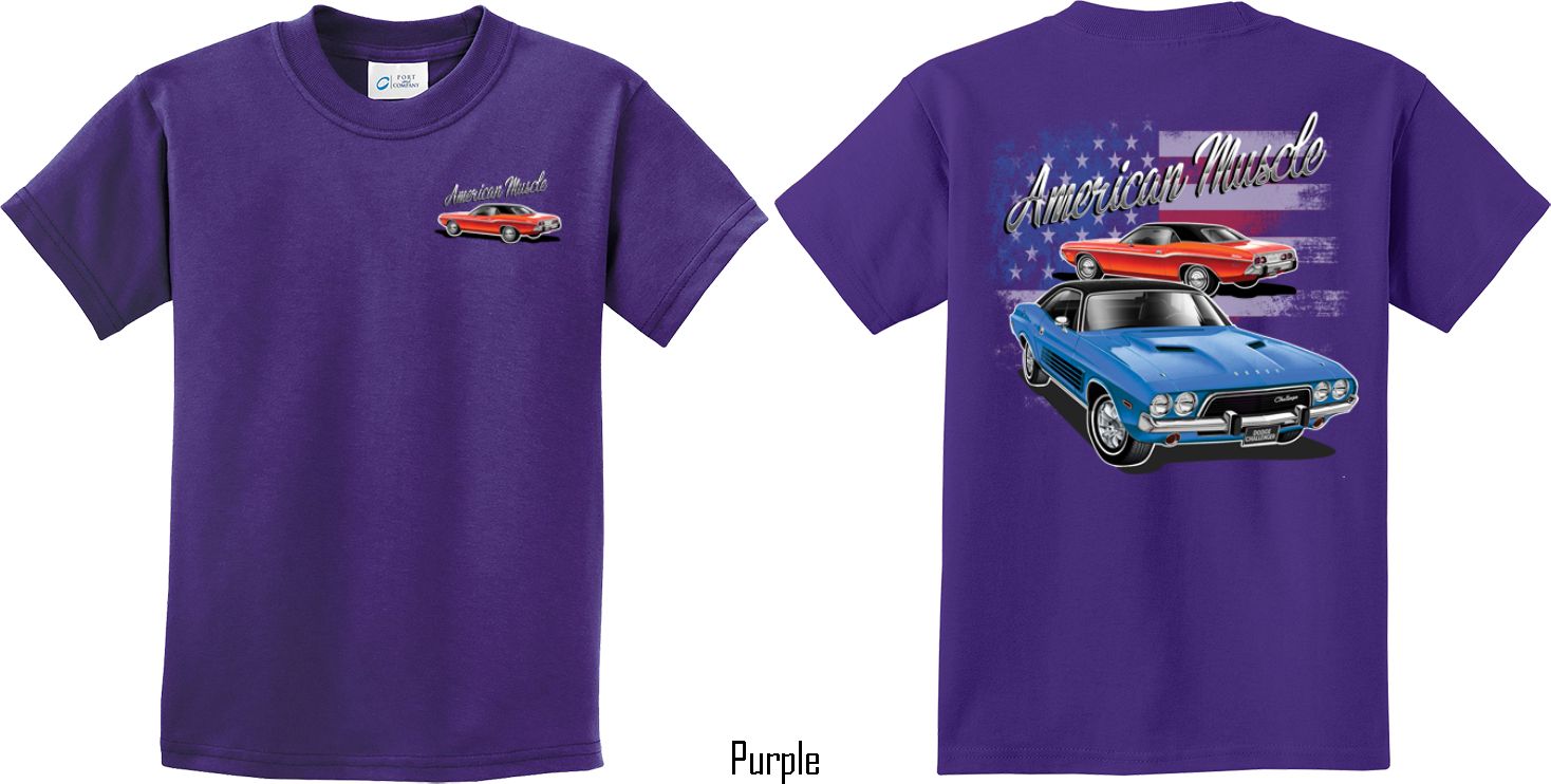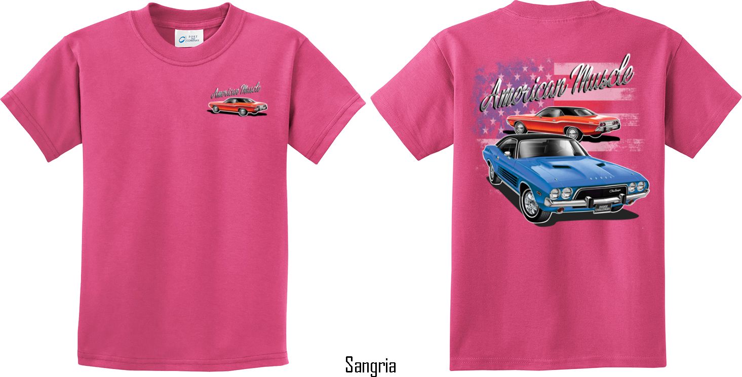 | | Dodge American Muscle Blue and Red (Front & Back) Youth T-shirtA kids t-shirt featuring a red Dodge Challenger on the front and a blue and red American Muscle Dodge Challenger on the back. Our kids tee is made of 100% cotton. (Ash and Athletic Heather are made with a blend of cotton/poly) Available in sizes Small through XL. Machine wash cold with like colors; dry low heat. ![]() |