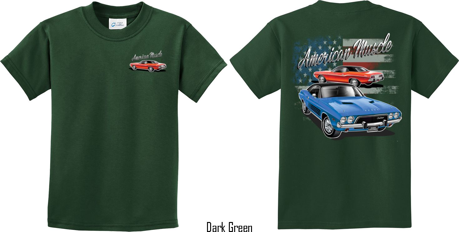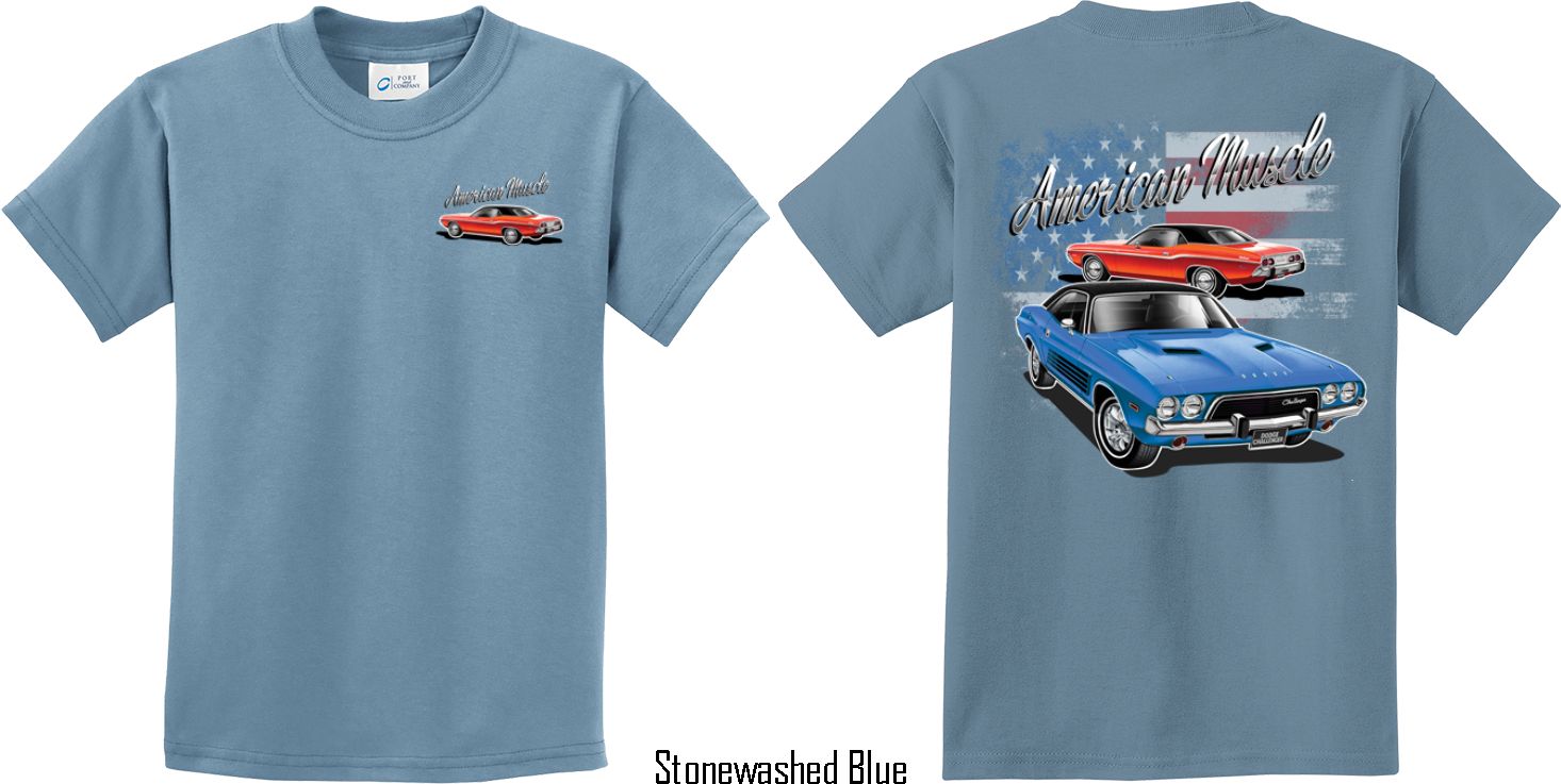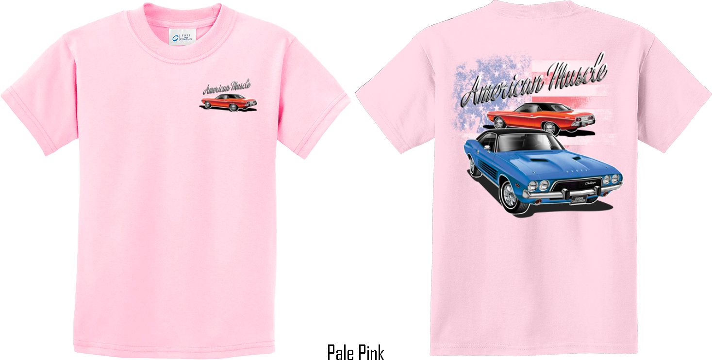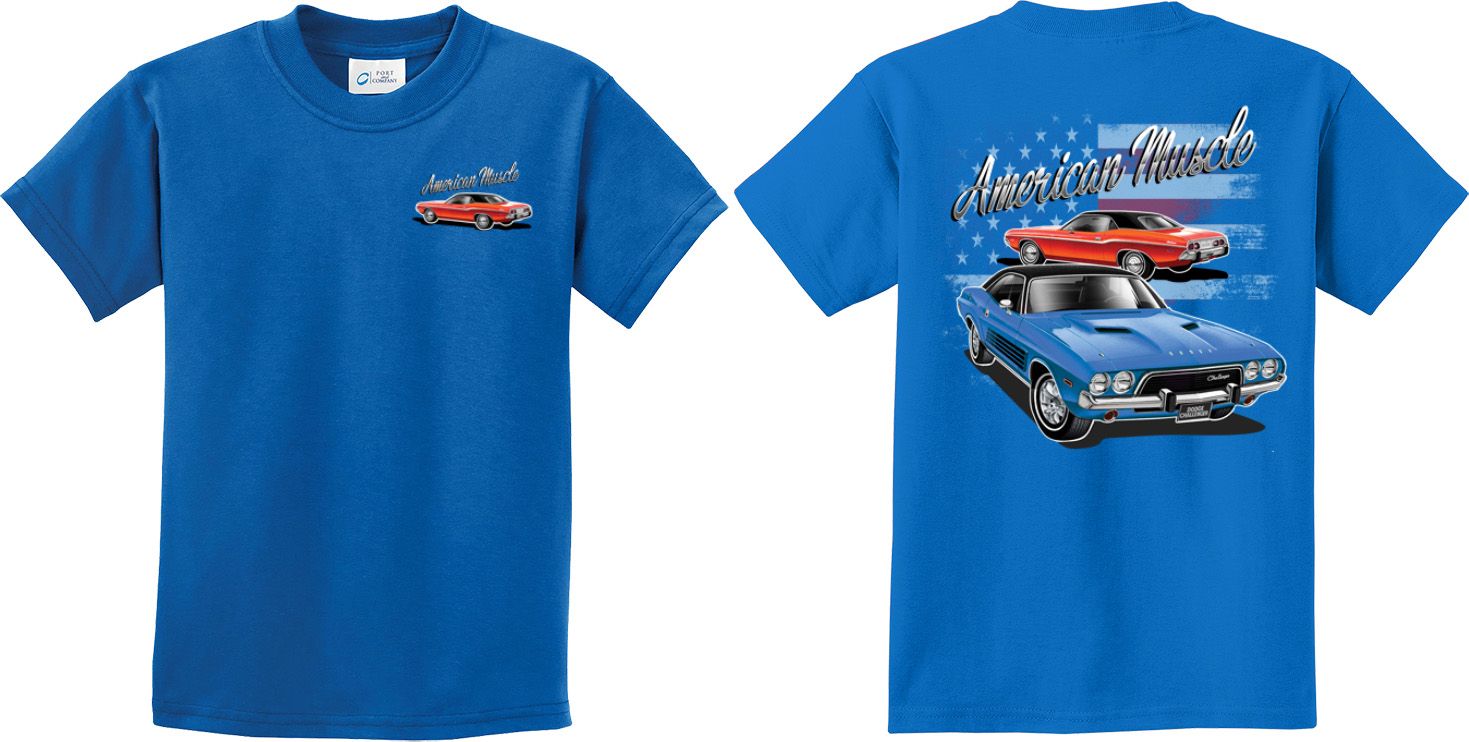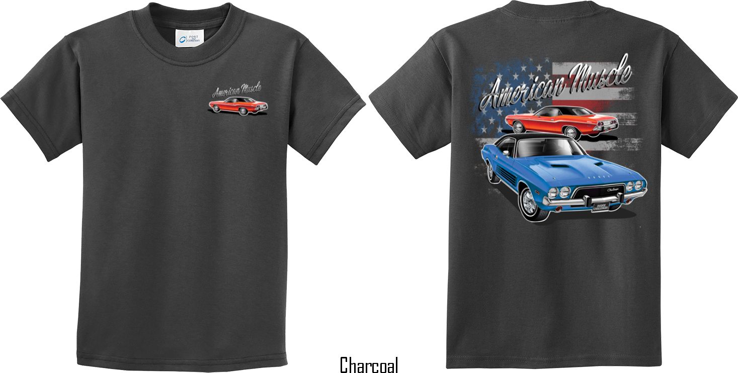 | | Dodge American Muscle Blue and Red (Front & Back) Youth T-shirtA kids t-shirt featuring a red Dodge Challenger on the front and a blue and red American Muscle Dodge Challenger on the back. Our kids tee is made of 100% cotton. (Ash and Athletic Heather are made with a blend of cotton/poly) Available in sizes Small through XL. Machine wash cold with like colors; dry low heat. ![]() |