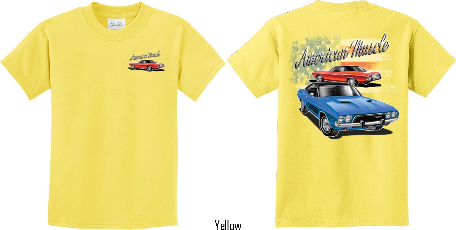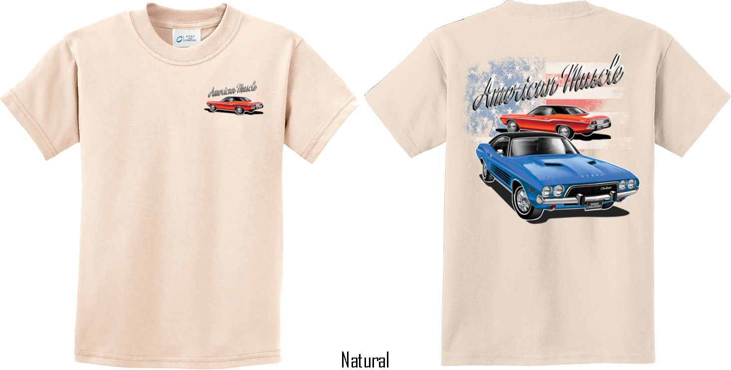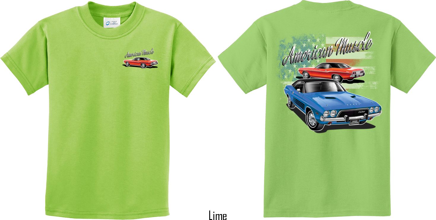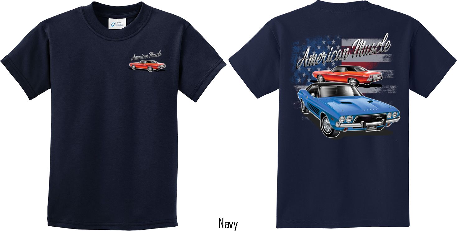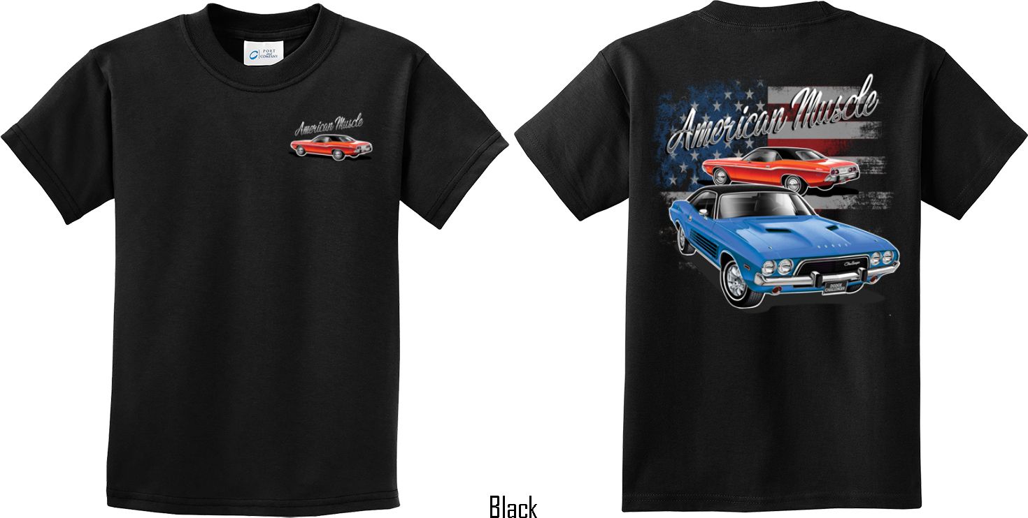 | | Dodge American Muscle Blue and Red (Front & Back) Youth T-shirtA kids t-shirt featuring a red Dodge Challenger on the front and a blue and red American Muscle Dodge Challenger on the back. Our kids tee is made of 100% cotton. (Ash and Athletic Heather are made with a blend of cotton/poly) Available in sizes Small through XL. Machine wash cold with like colors; dry low heat. ![]() |