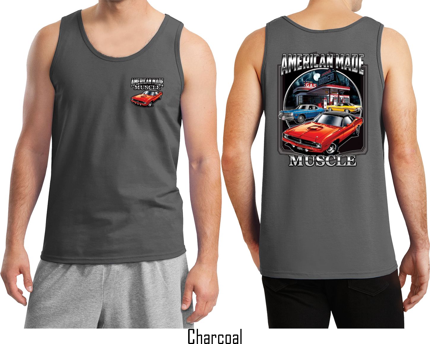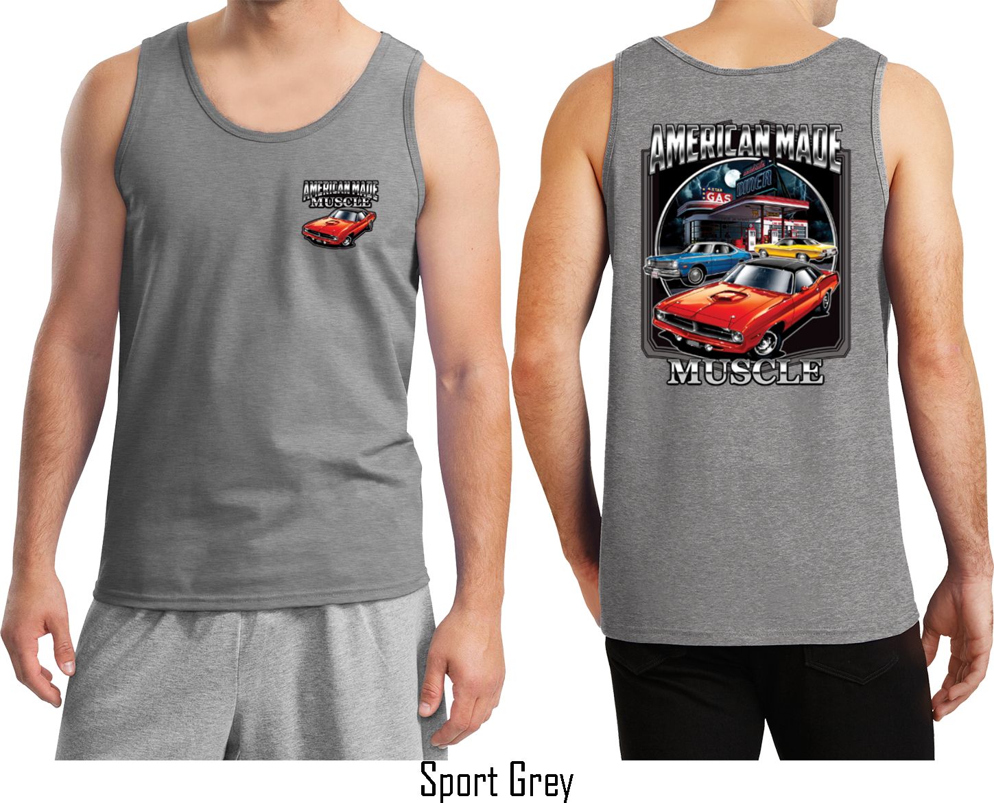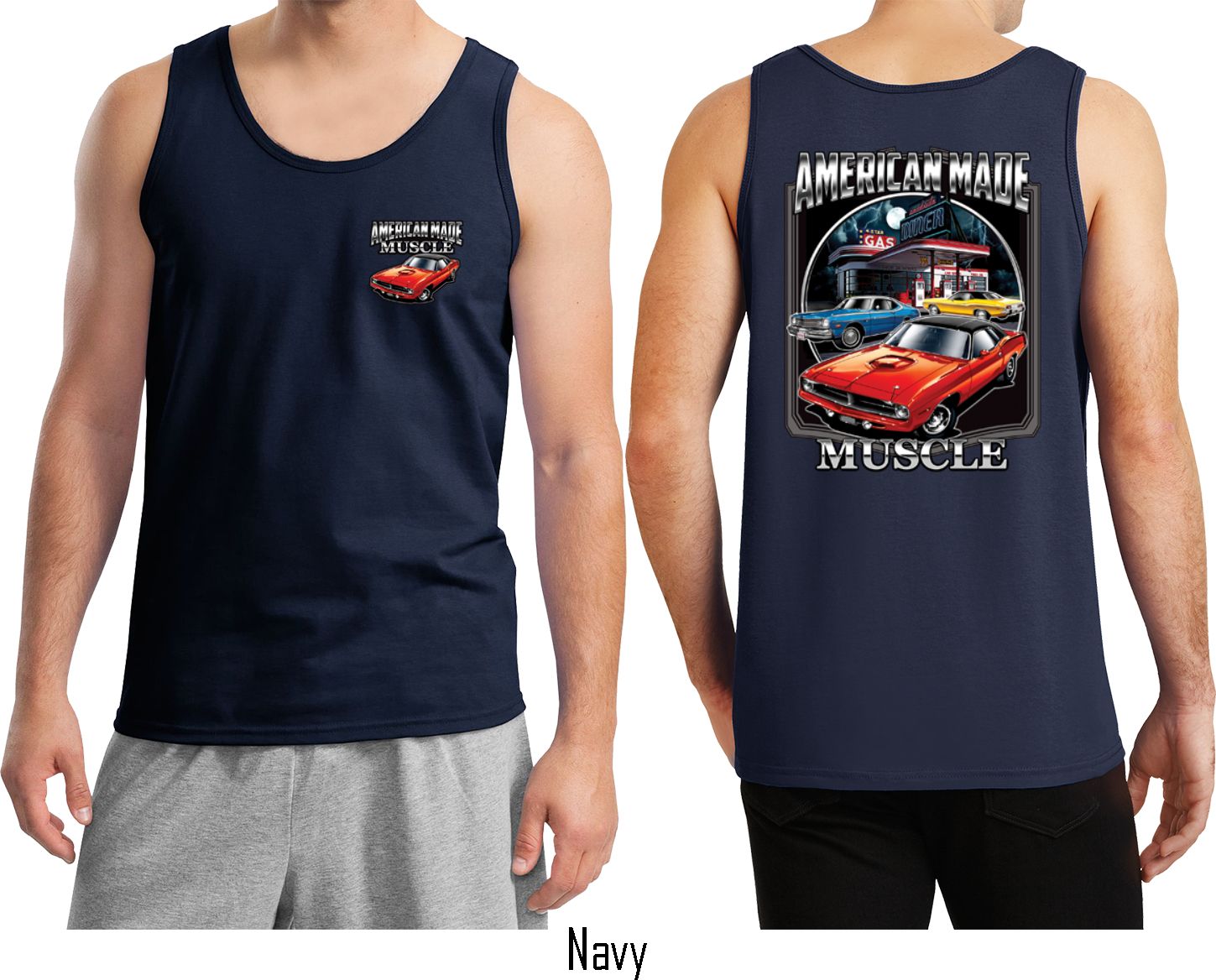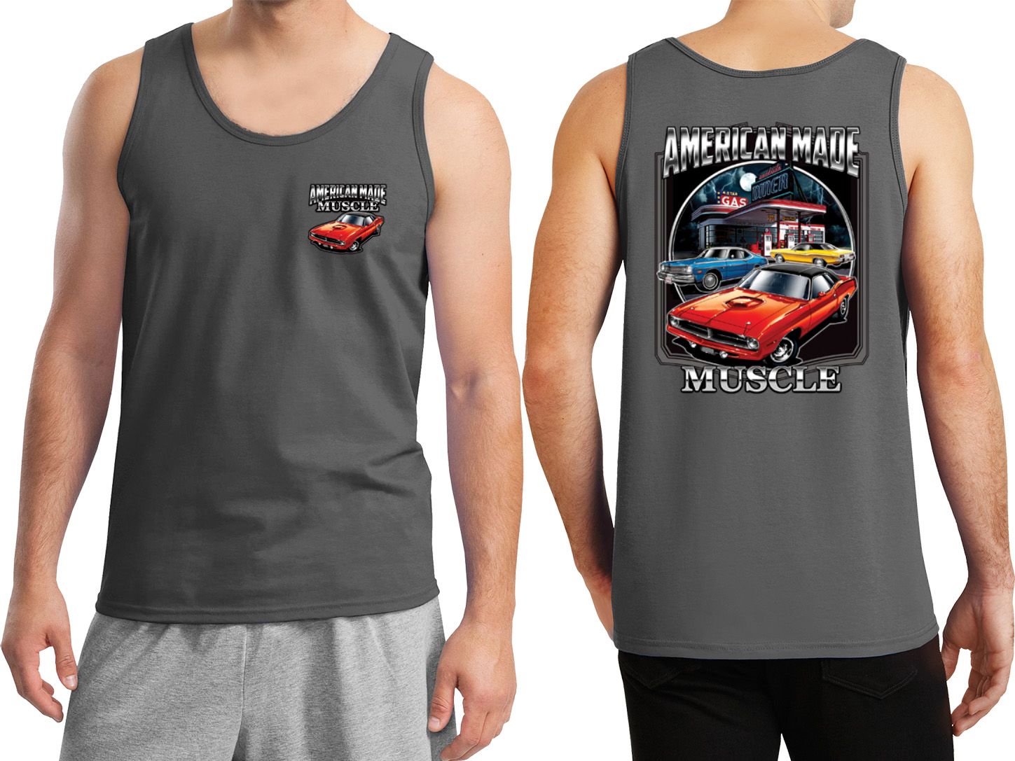 | | Dodge Chrysler American Made (Front & Back) Tank TopA mens tanktop featuring Classic Dodge American Muscle Cars on the front and back. Our mens tank top is made of 100% cotton. (Ash and Sports Grey are made with a blend of cotton/poly) Available in sizes Small through 2XL. Machine wash cold with like colors; dry low heat. ![]() |
