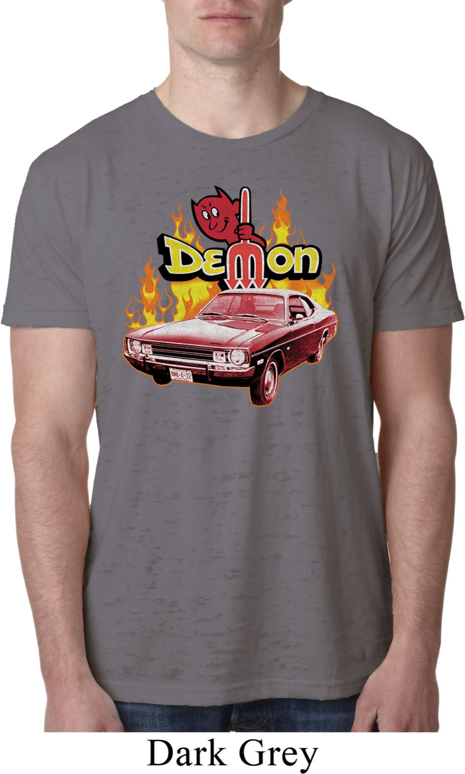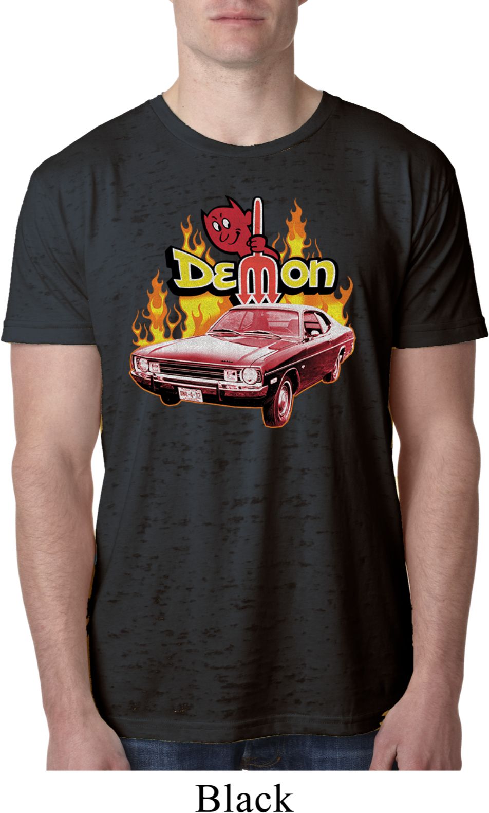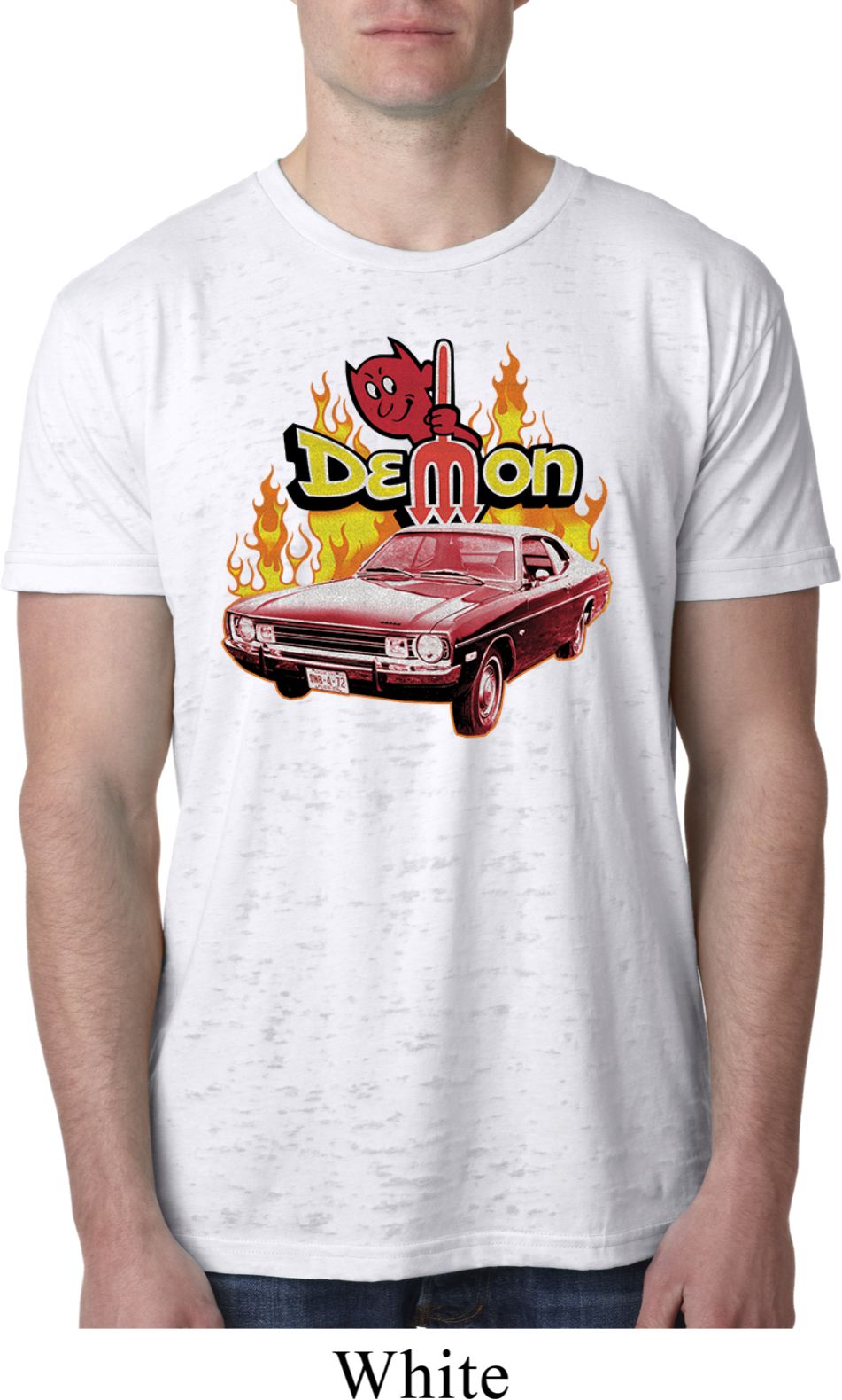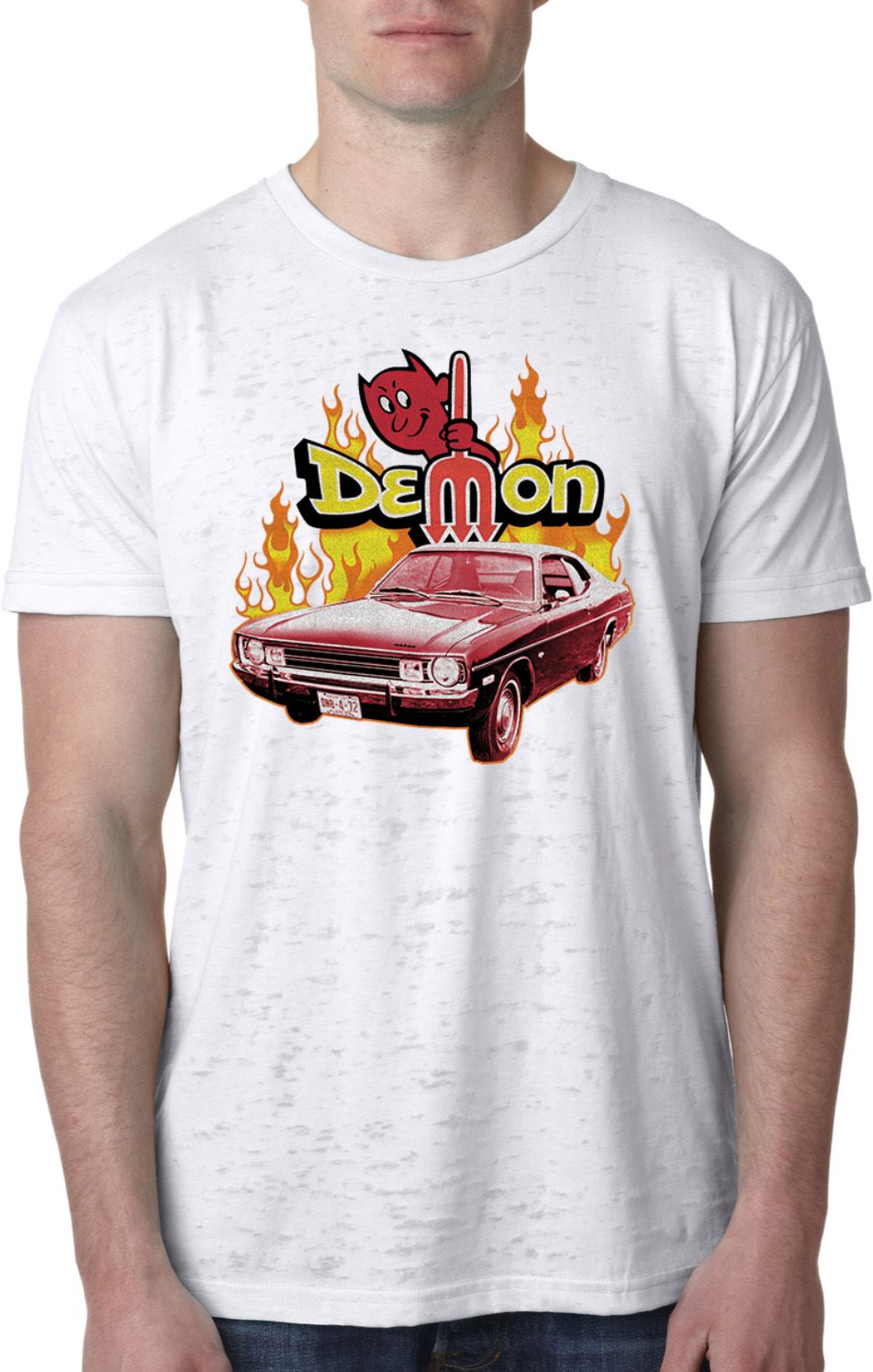 | | Dodge Demon Burnout T-shirtA mens burnout shirt featuring a classic Dodge Demon. Our mens tee is made with a blend of cotton/poly. A perfect gift for all classic car enthusiasts! Available in sizes Small through 2XL. Machine wash cold with like colors; dry low heat. ![]() |