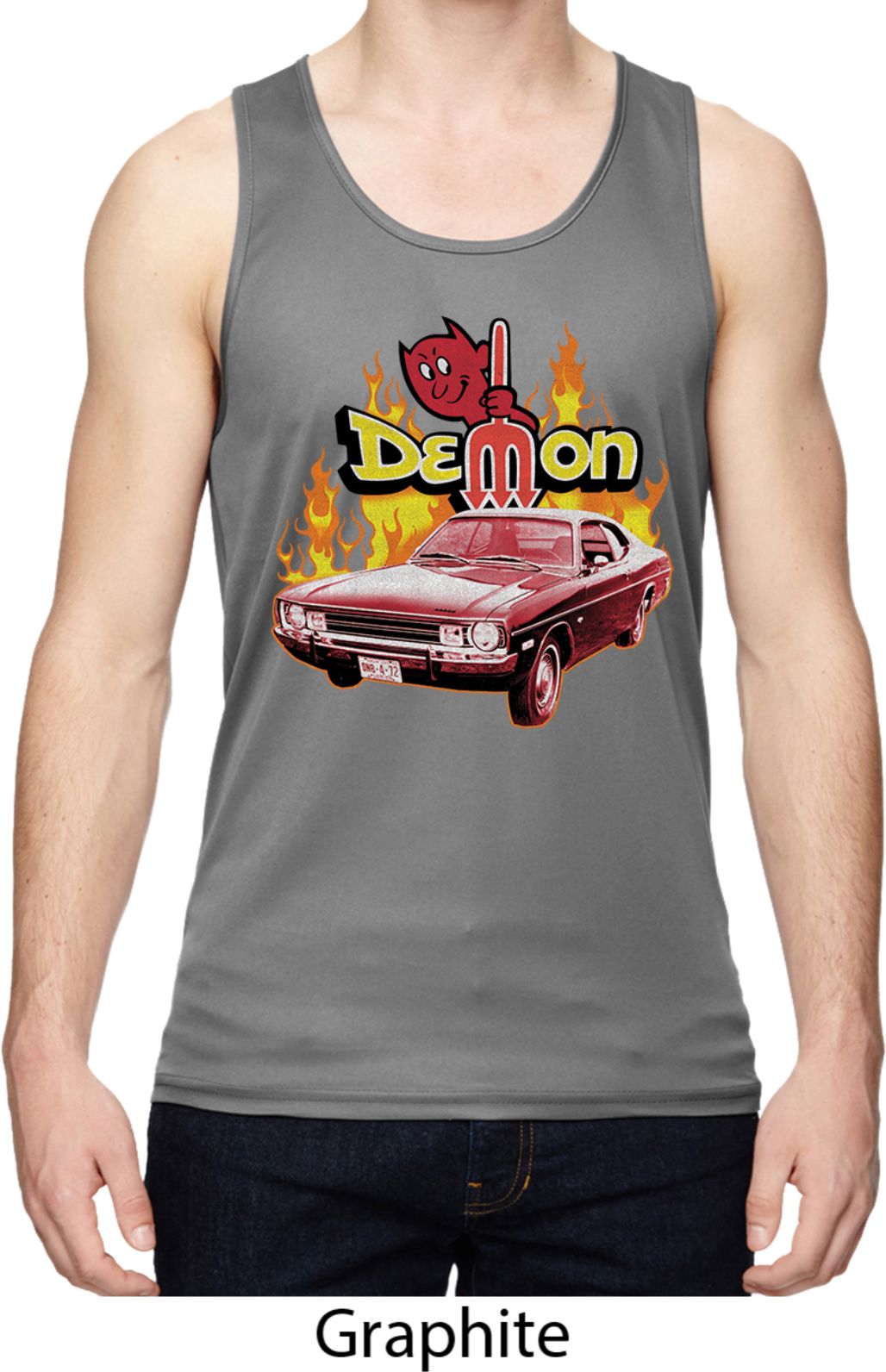 | | Dodge Demon Dry Wicking Tank TopA mens dry wicking tank top featuring a classic Dodge Demon. Our mens tanktop is made of 100% polyester. A perfect gift for all classic car enthusiasts! Available in sizes Small through 3XL. Machine wash cold with like colors; dry low heat. |