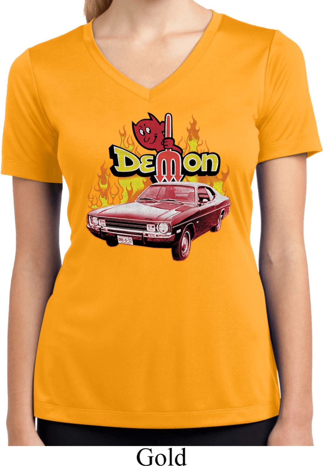 | | Dodge Demon Ladies Dry Wicking V-neckA ladies dry wicking v-neck featuring a classic Dodge Demon. Our ladies tee is made of 100% polyester. A perfect gift for all classic car enthusiasts! Available in sizes Small through 3XL. Machine wash cold with like colors; dry low heat. ![]() |
