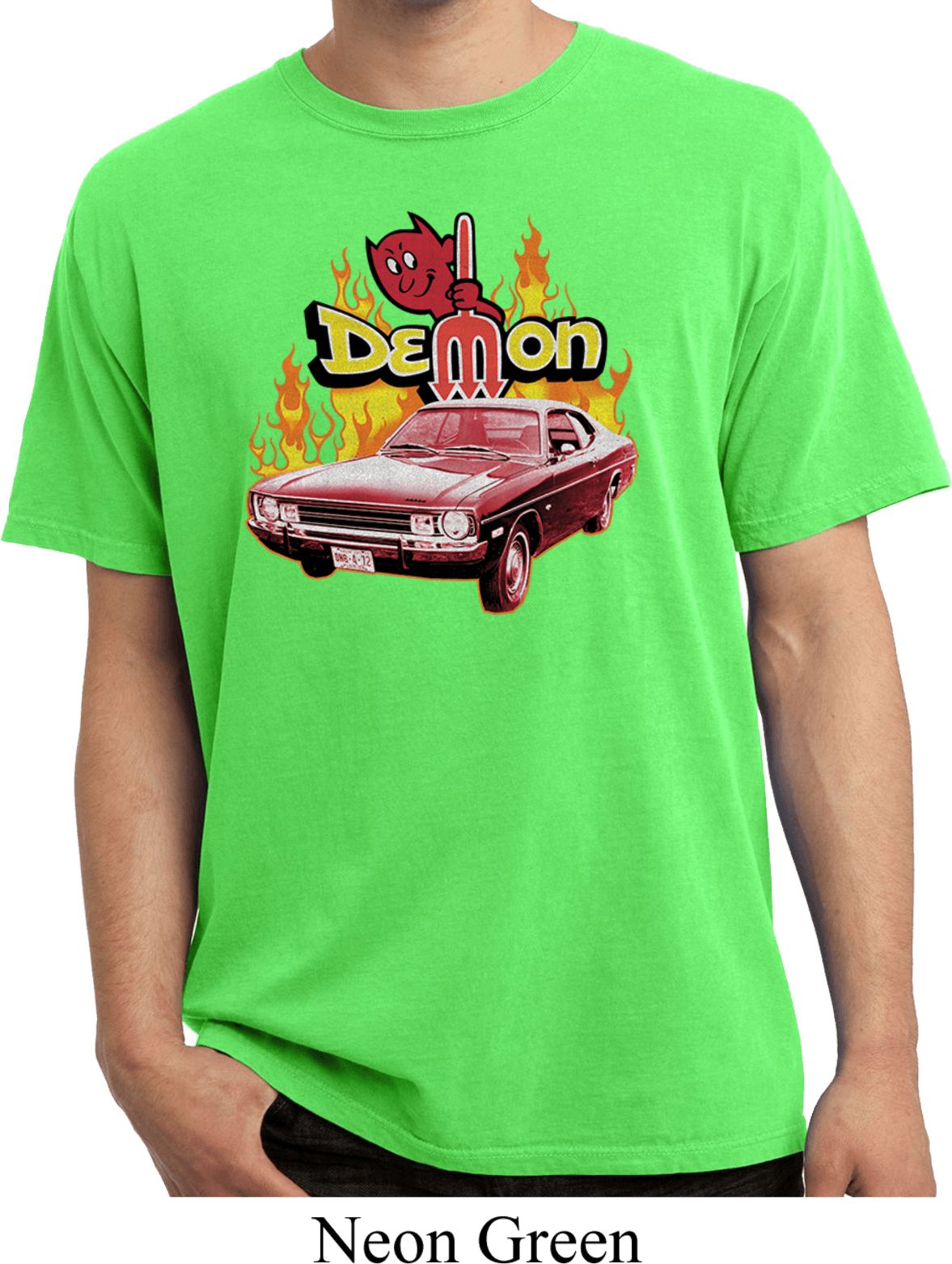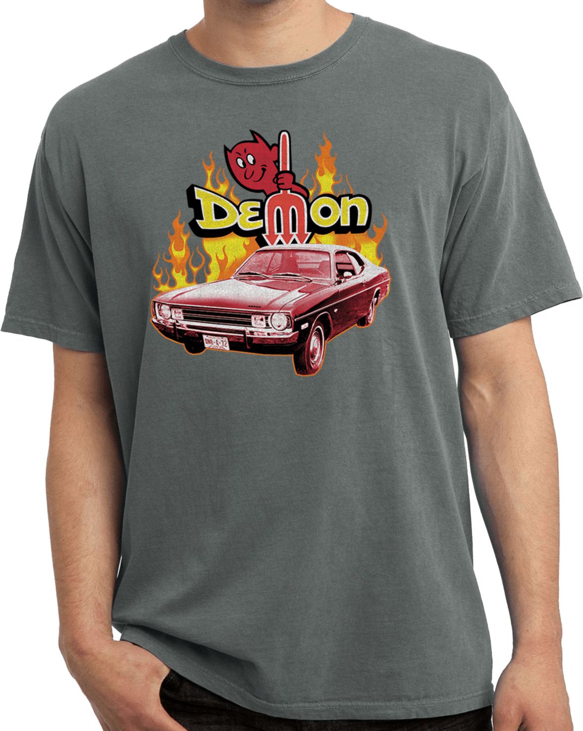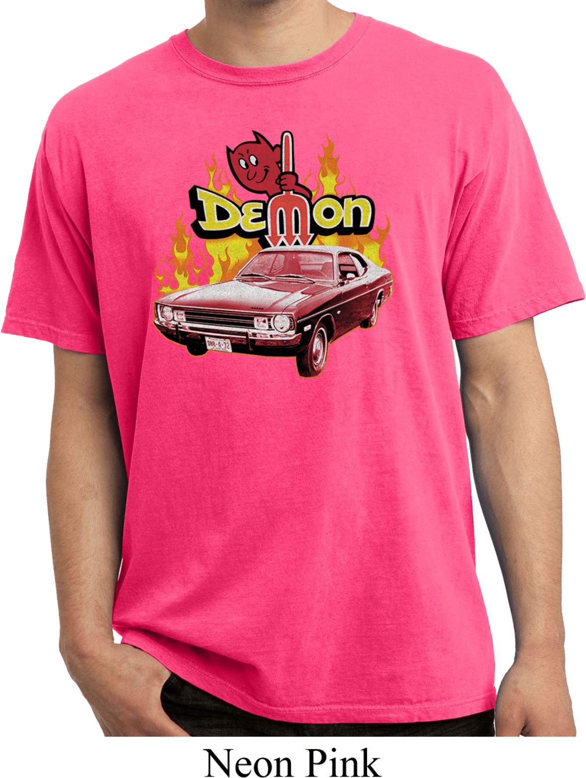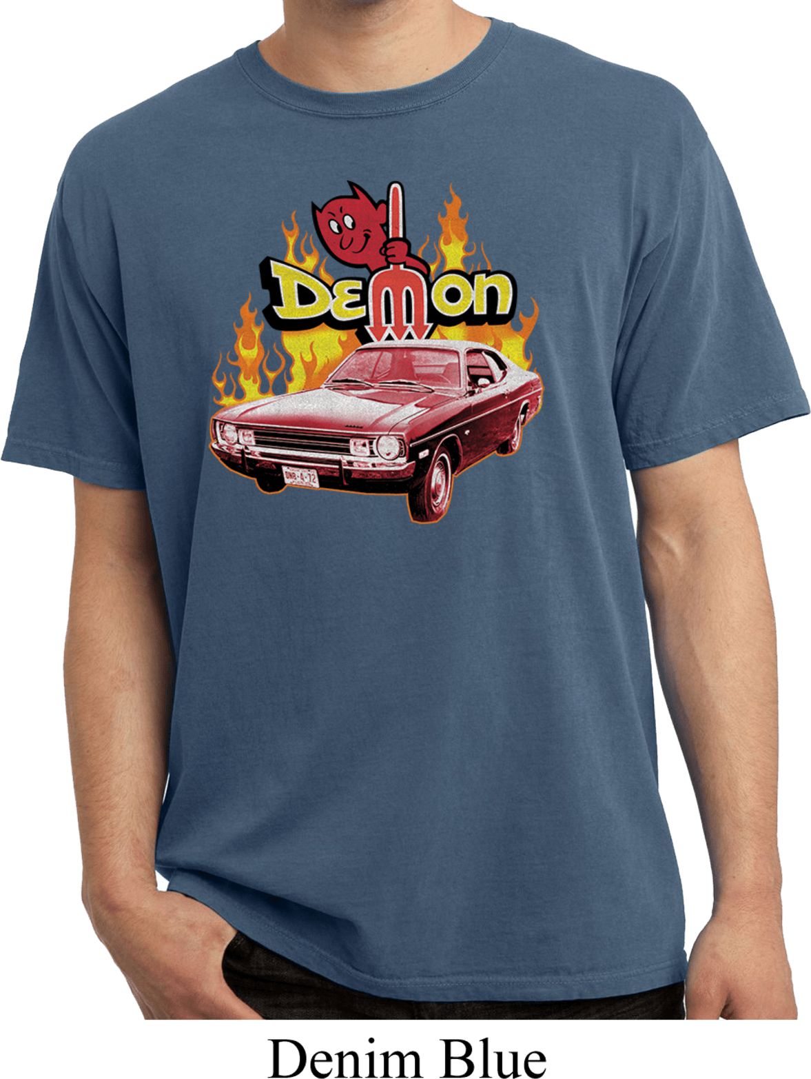 | | Dodge Demon Pigment Dyed T-shirtA vintage mens shirt featuring a classic Dodge Demon. Our mens tee is made of 100% cotton. A perfect gift for all classic car enthusiasts! Available in sizes Small through 4XL. Machine wash cold with like colors; dry low heat. ![]() |