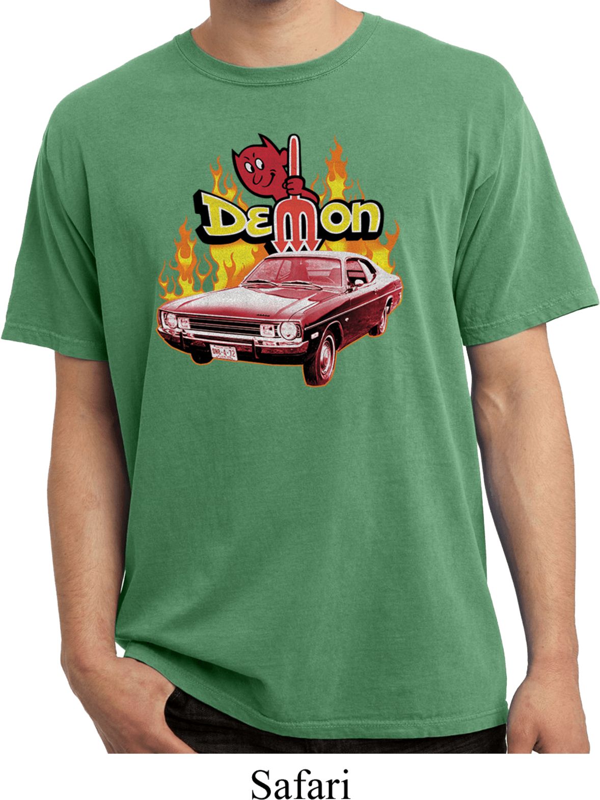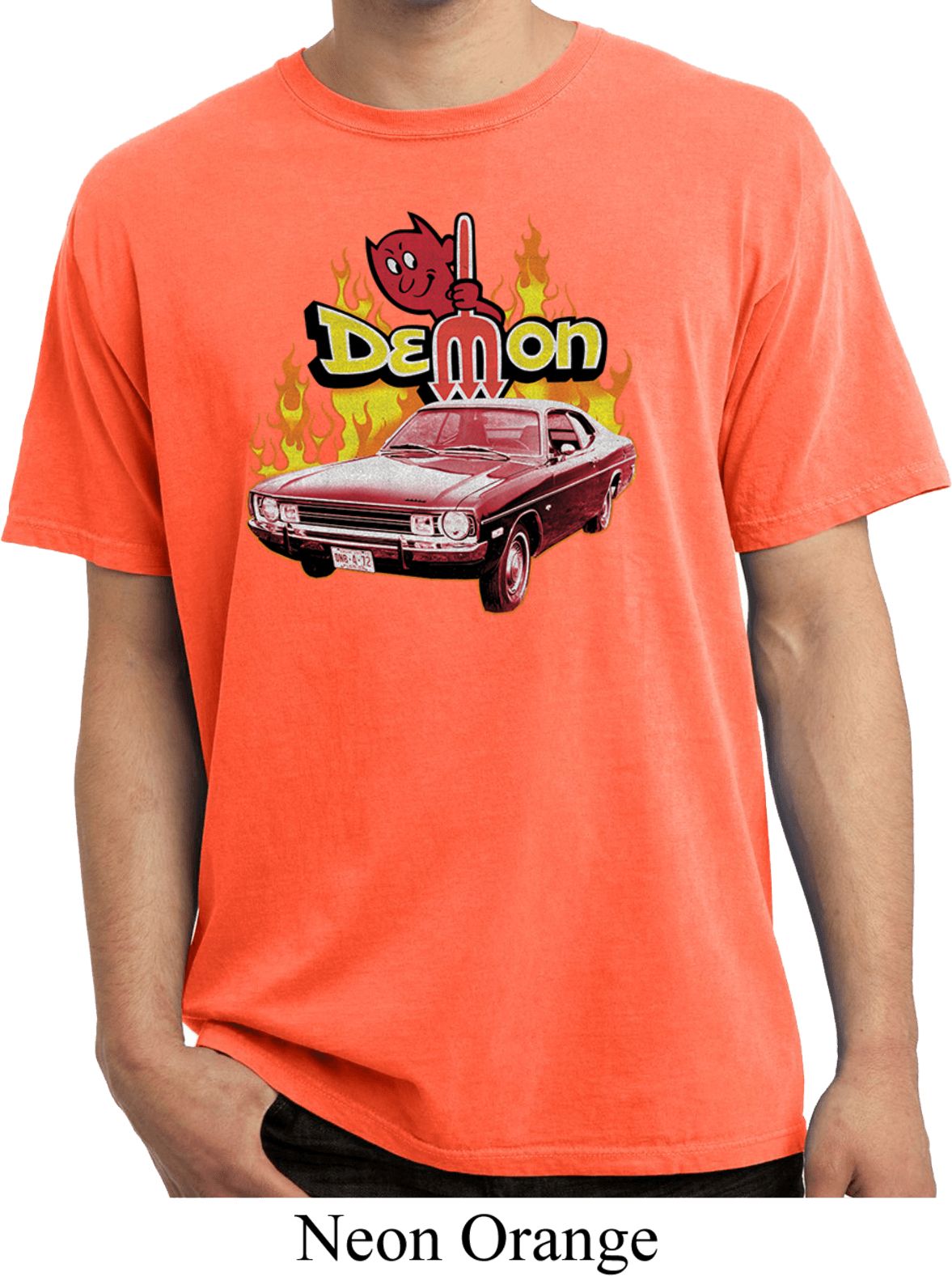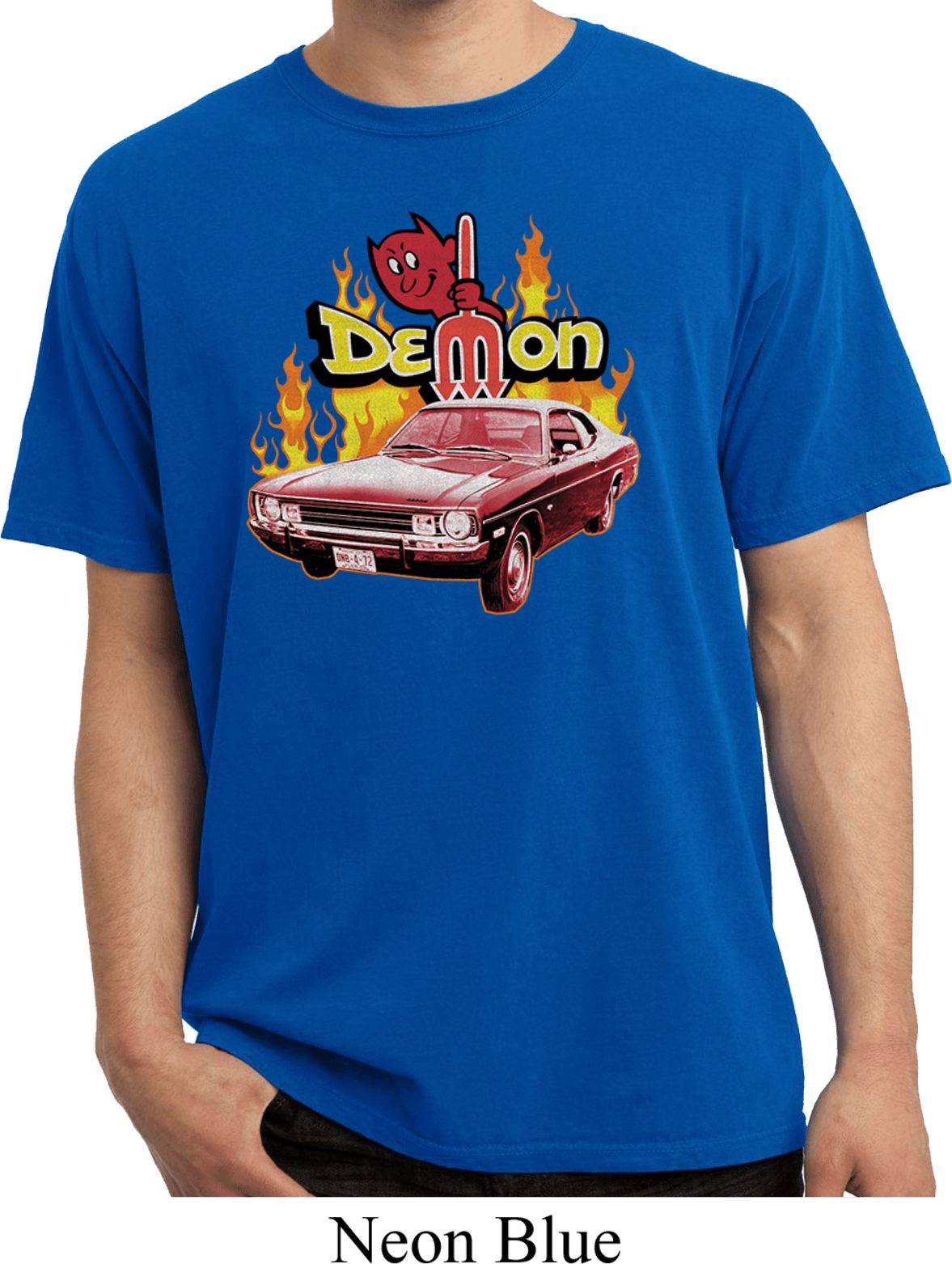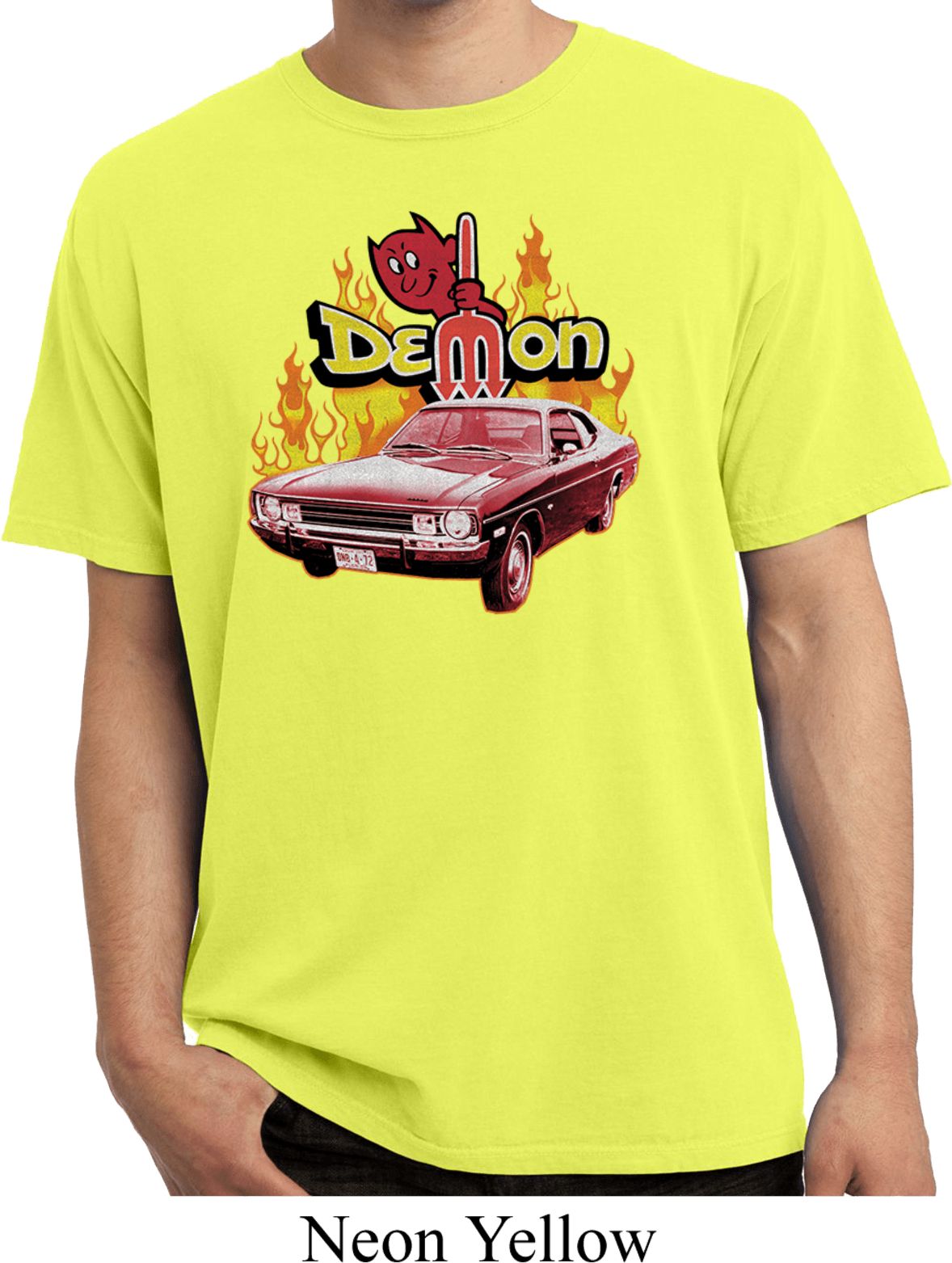 | | Dodge Demon Pigment Dyed T-shirtA vintage mens shirt featuring a classic Dodge Demon. Our mens tee is made of 100% cotton. A perfect gift for all classic car enthusiasts! Available in sizes Small through 4XL. Machine wash cold with like colors; dry low heat. ![]() |