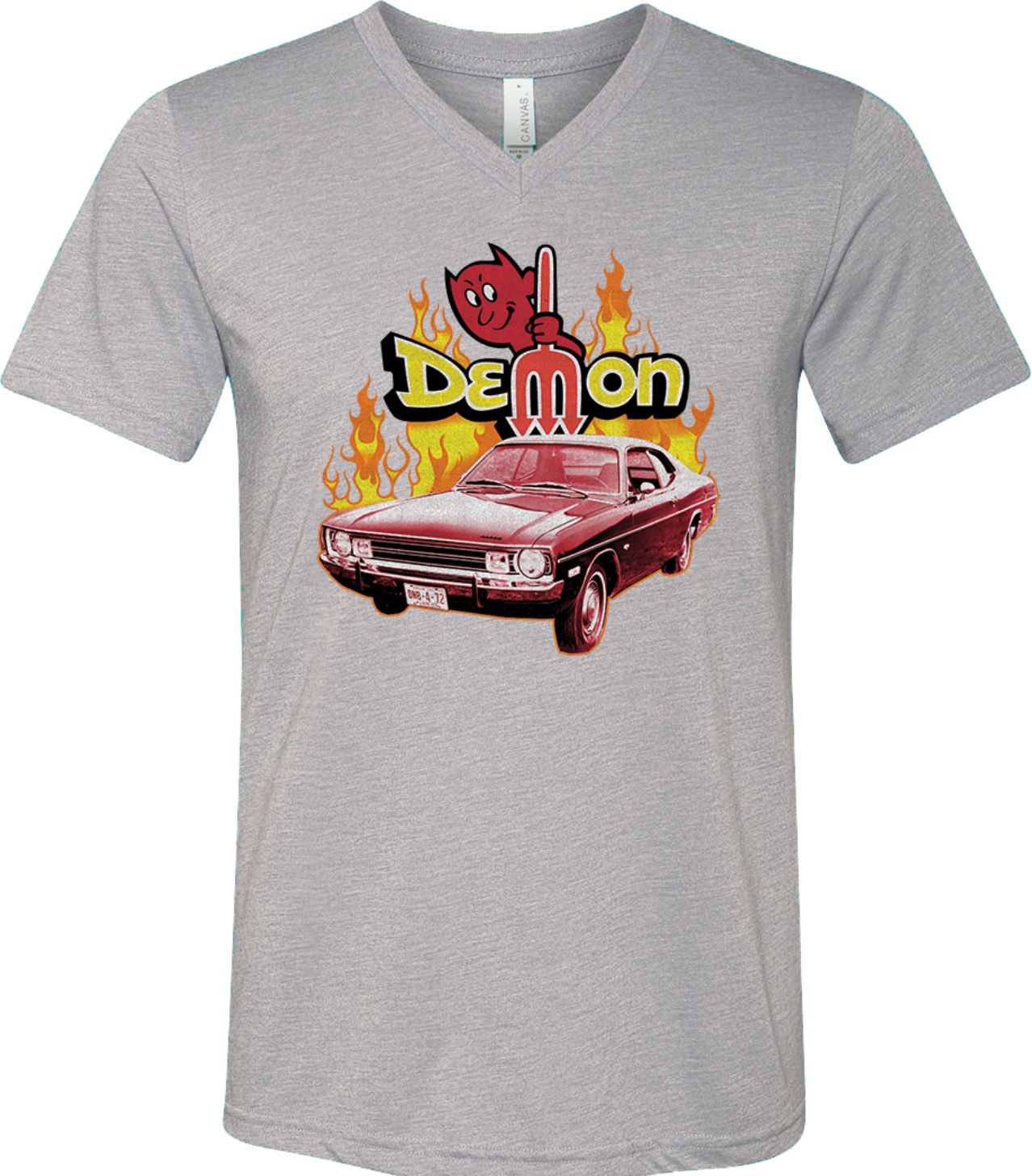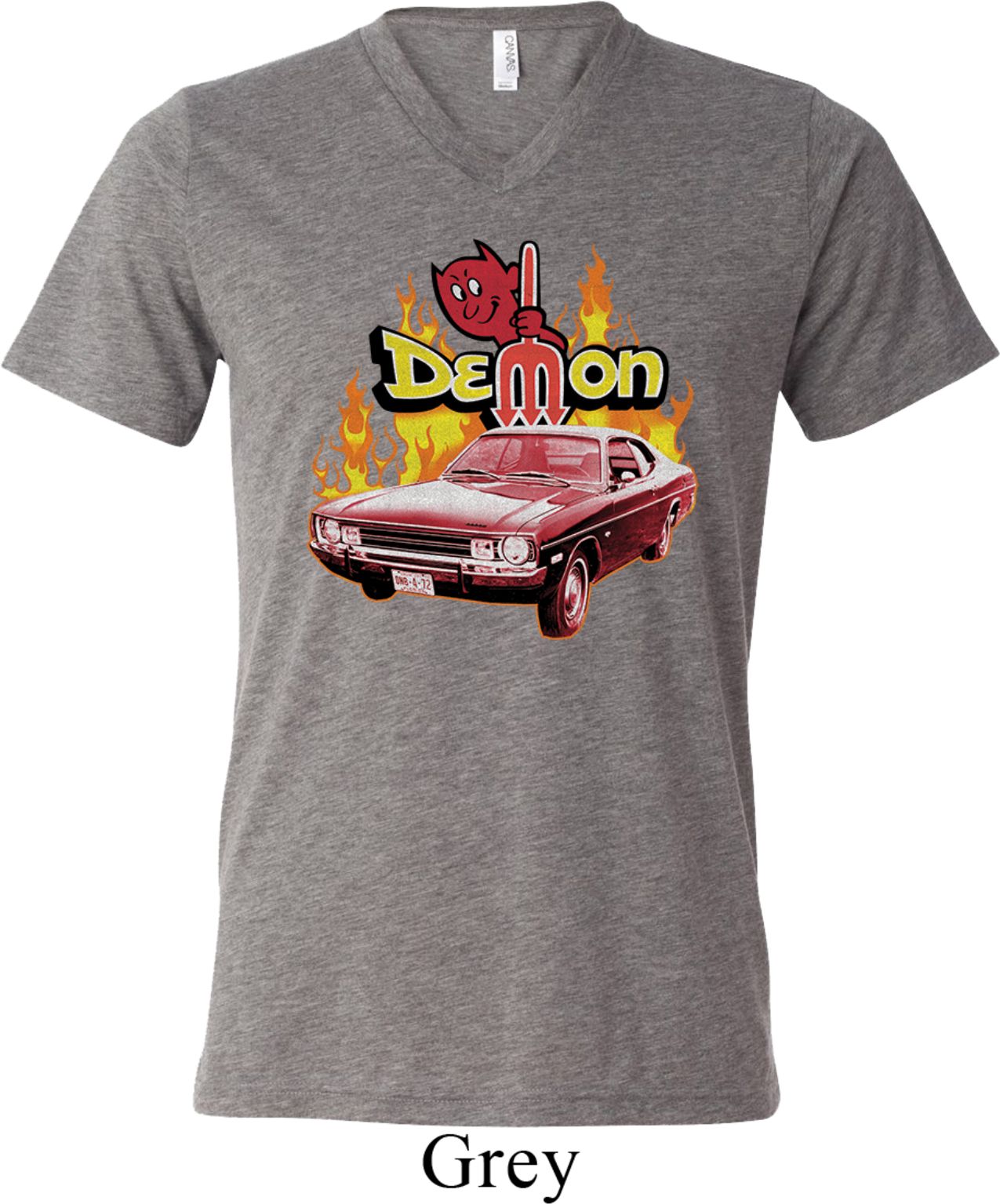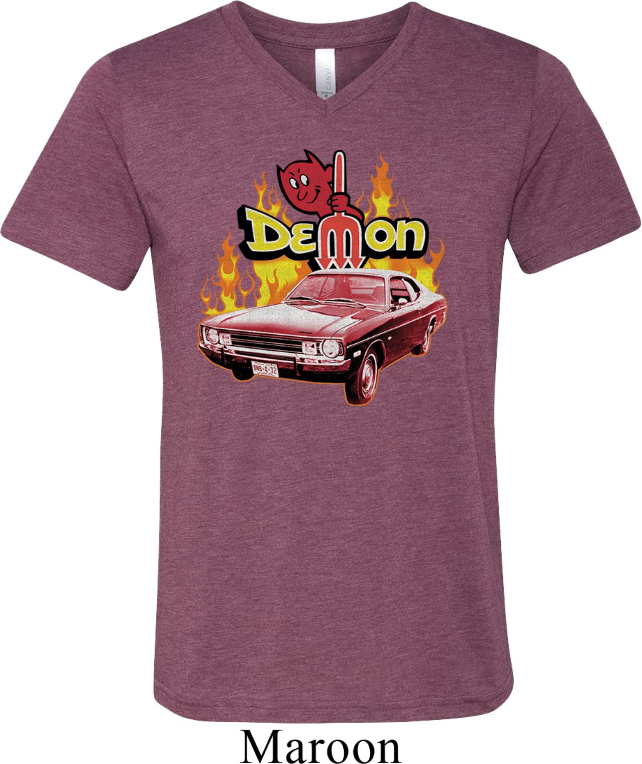 | | Dodge Demon Tri Blend V-neckA mens tri blend v-neck featuring a classic Dodge Demon. Our mens tee is made with a blend of cotton/poly/rayon. A perfect gift for all classic car enthusiasts! Available in sizes Small through 2XL. Machine wash cold with like colors; dry low heat. ![]() |