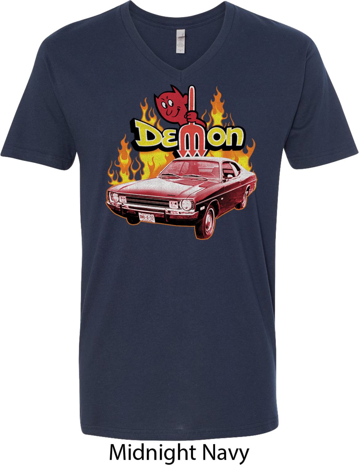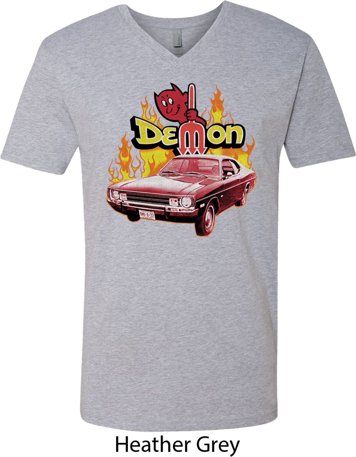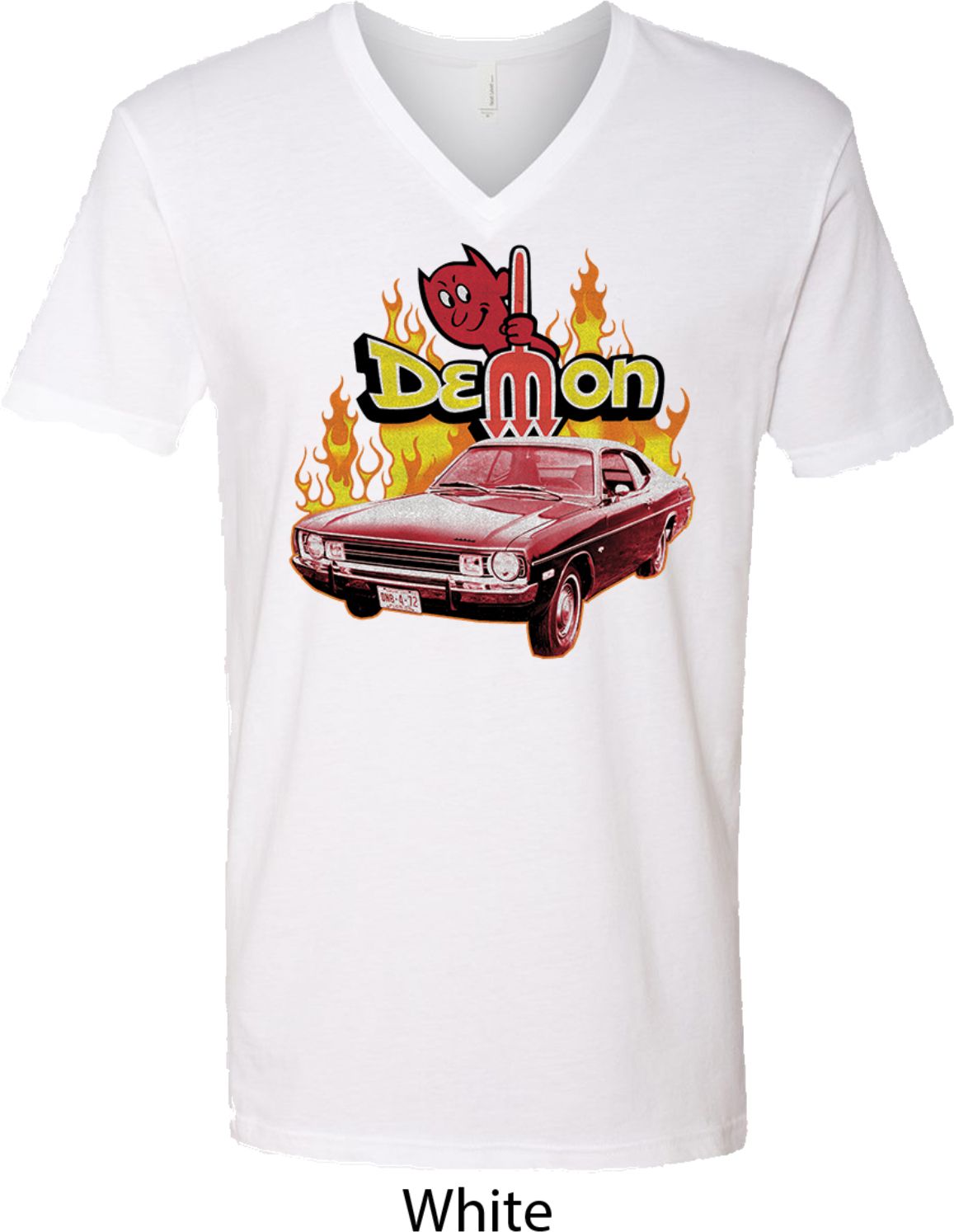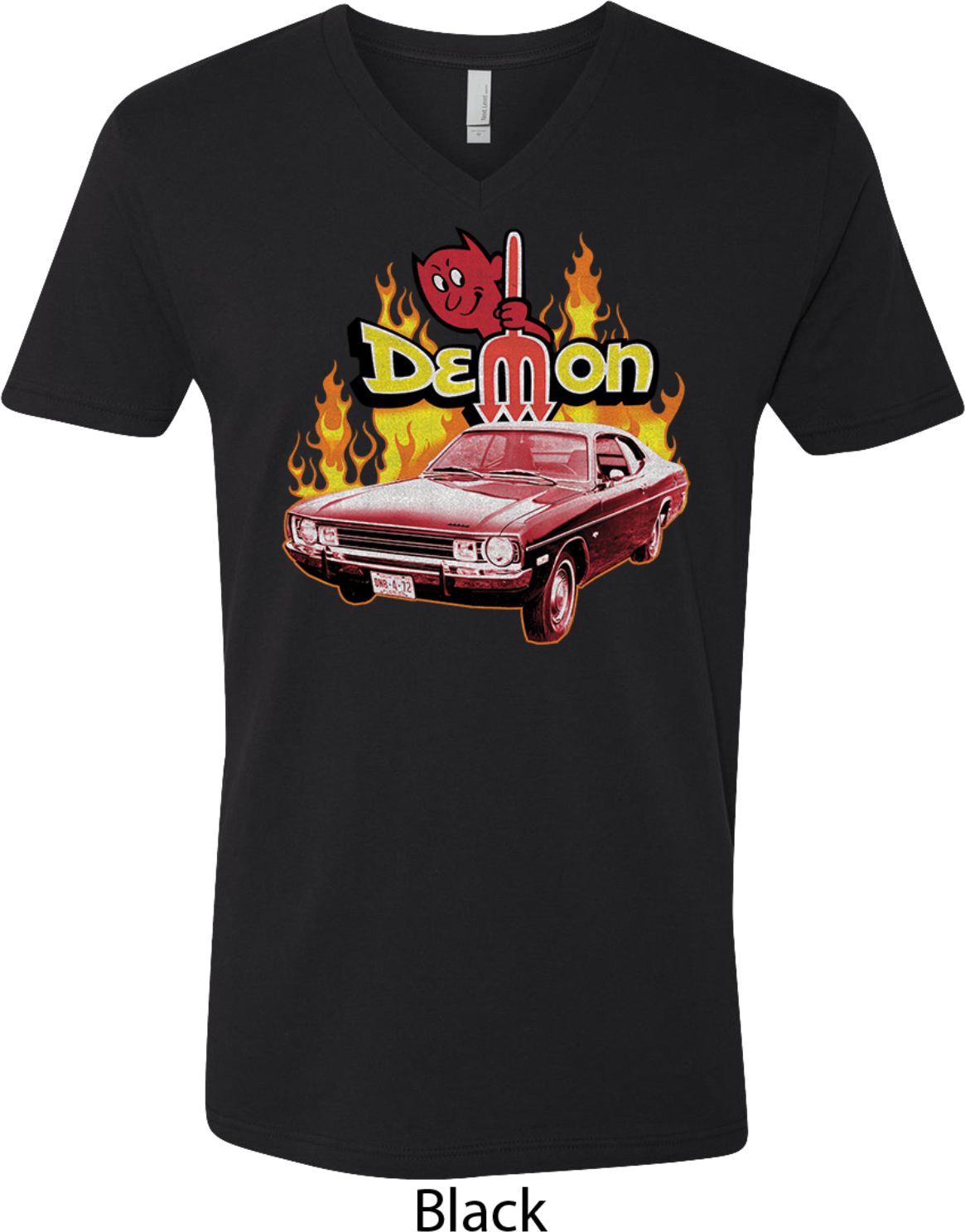 | | Dodge Demon V-neck ShirtA mens v-neck featuring a classic Dodge Demon. Our mens tee is made of 100% cotton. (Heather Grey is made with a blend of cotton/poly) A perfect gift for all classic car enthusiasts! Available in sizes Small through 2XL. Machine wash cold with like colors; dry low heat. ![]() |
