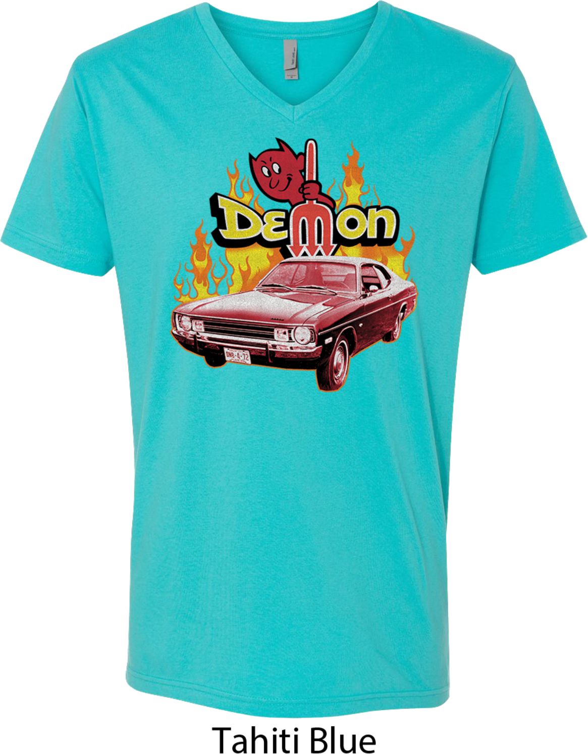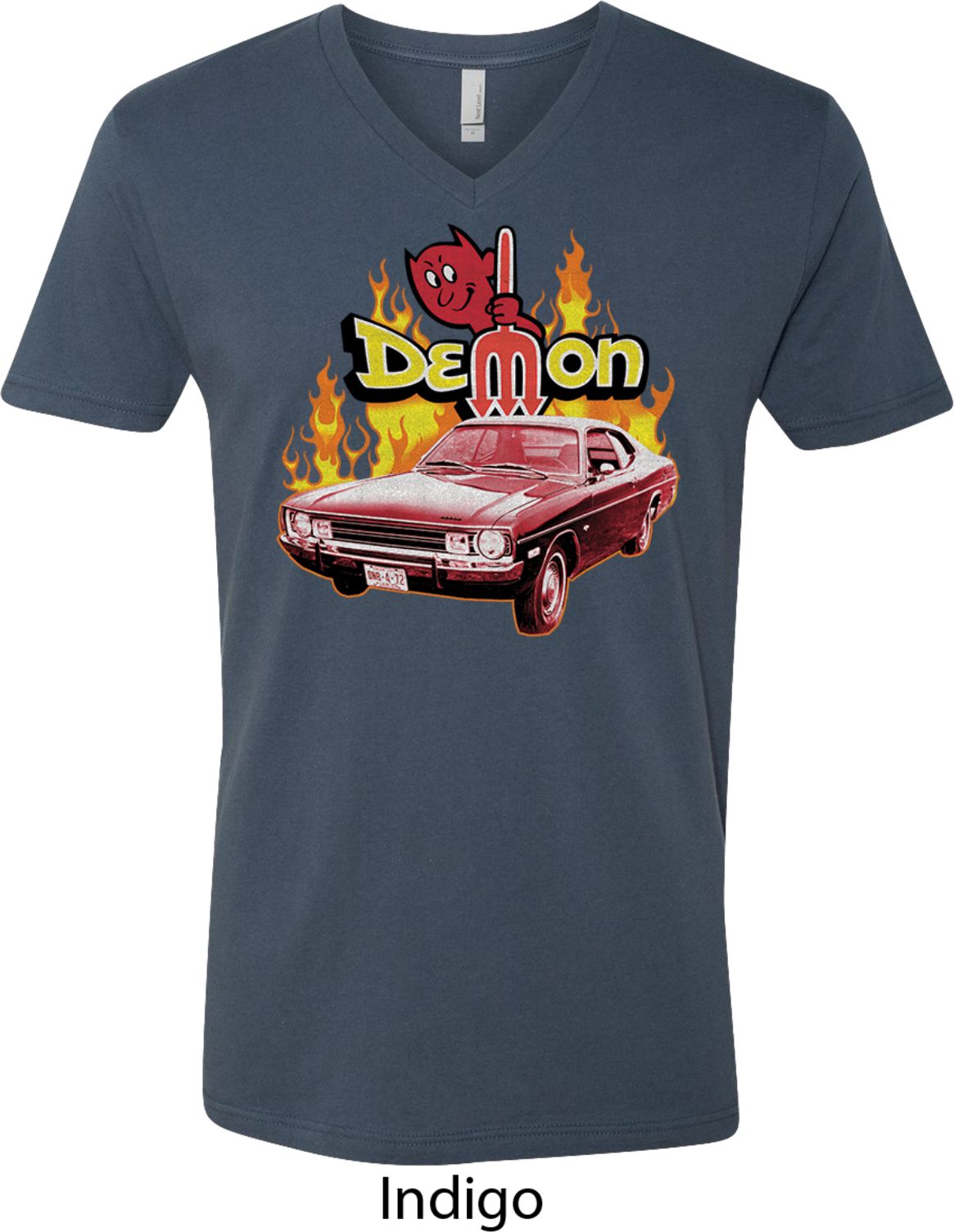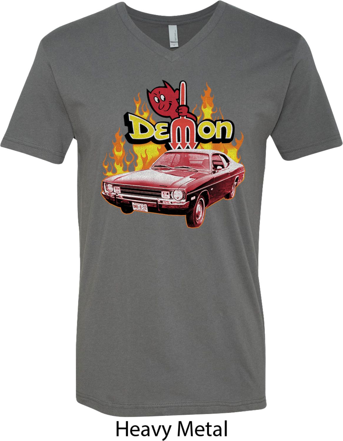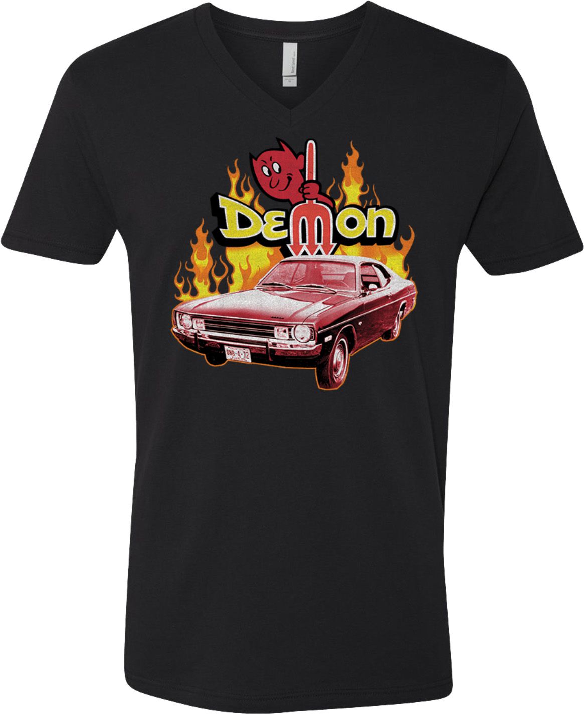 | | Dodge Demon V-neck ShirtA mens v-neck featuring a classic Dodge Demon. Our mens tee is made of 100% cotton. (Heather Grey is made with a blend of cotton/poly) A perfect gift for all classic car enthusiasts! Available in sizes Small through 2XL. Machine wash cold with like colors; dry low heat. ![]() |