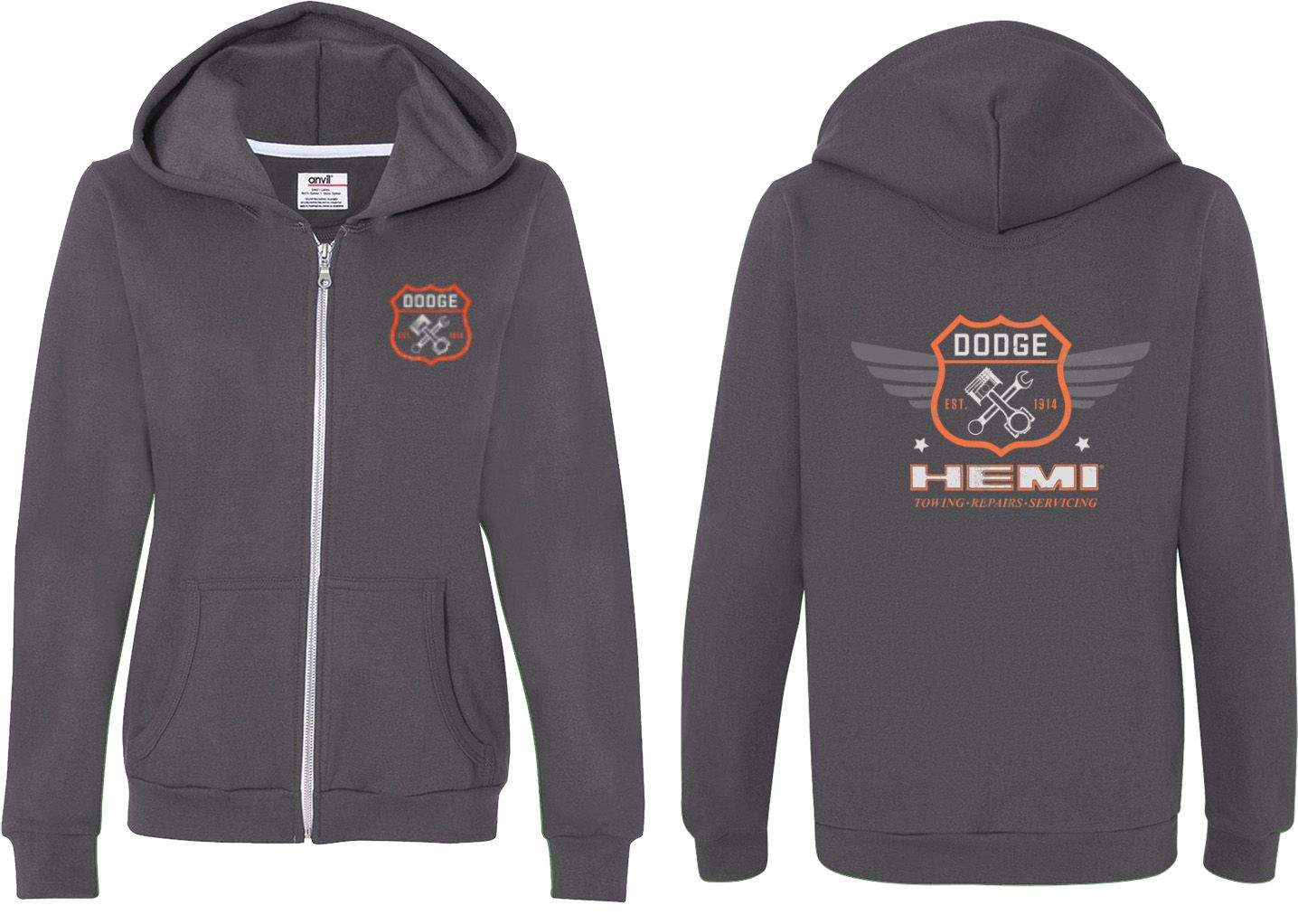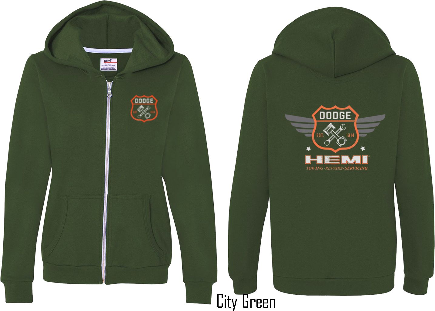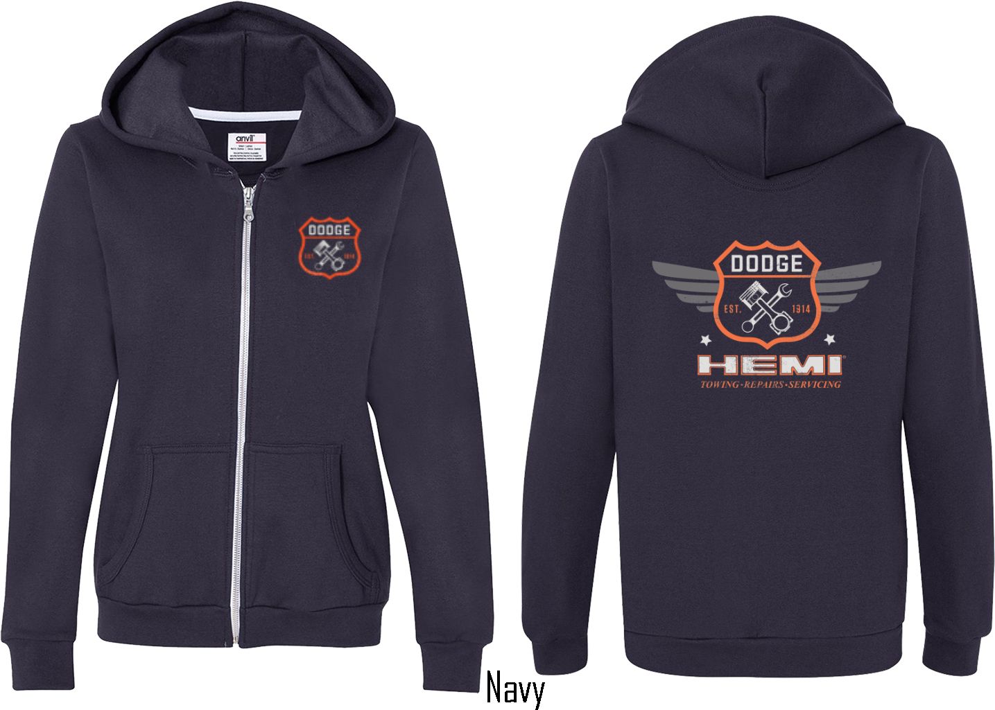 | | Dodge Garage Hemi (Front & Back) Ladies Full Zip HoodieA ladies full zip hoodie featuring Dodge Garage Est. 1914 on the front and back Hemi: Towing, Repairs, Servicing. This ladies full zip makes an awesome gift for all Dodge car enthusiasts! Our ladies full zip hoodie is made with a blend of cotton/poly. Available in sizes Small through 2XL. Machine wash cold with like colors; dry low heat. ![]() |