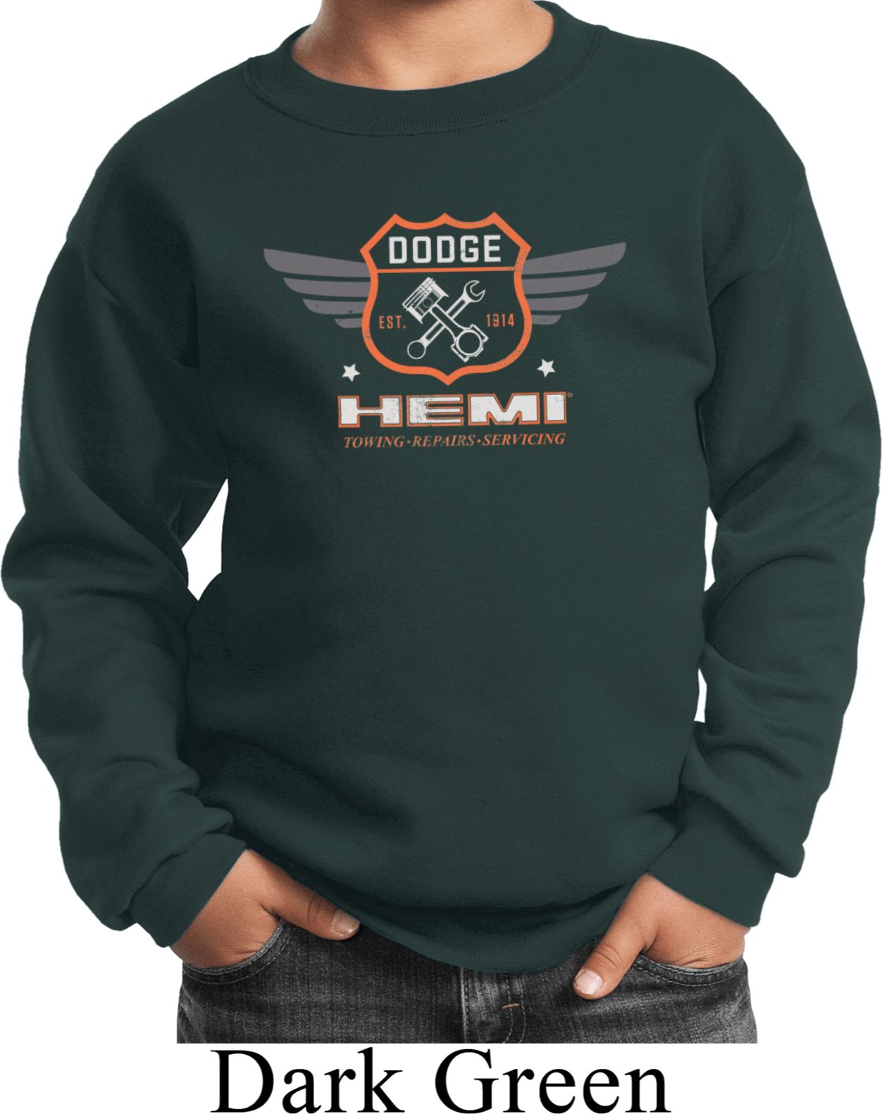 | | Dodge Garage Hemi Kids Sweat ShirtDodge Garage Hemi Kids Sweat Shirt A great shirt for someone who loves Dodge A cotton/poly blend Available in Youth Small, Youth Medium, Youth Large & Youth XL Also available in colors Black, Charcoal, Dark Green, Navy, Neon Blue, Purple, and Royal ![]() |