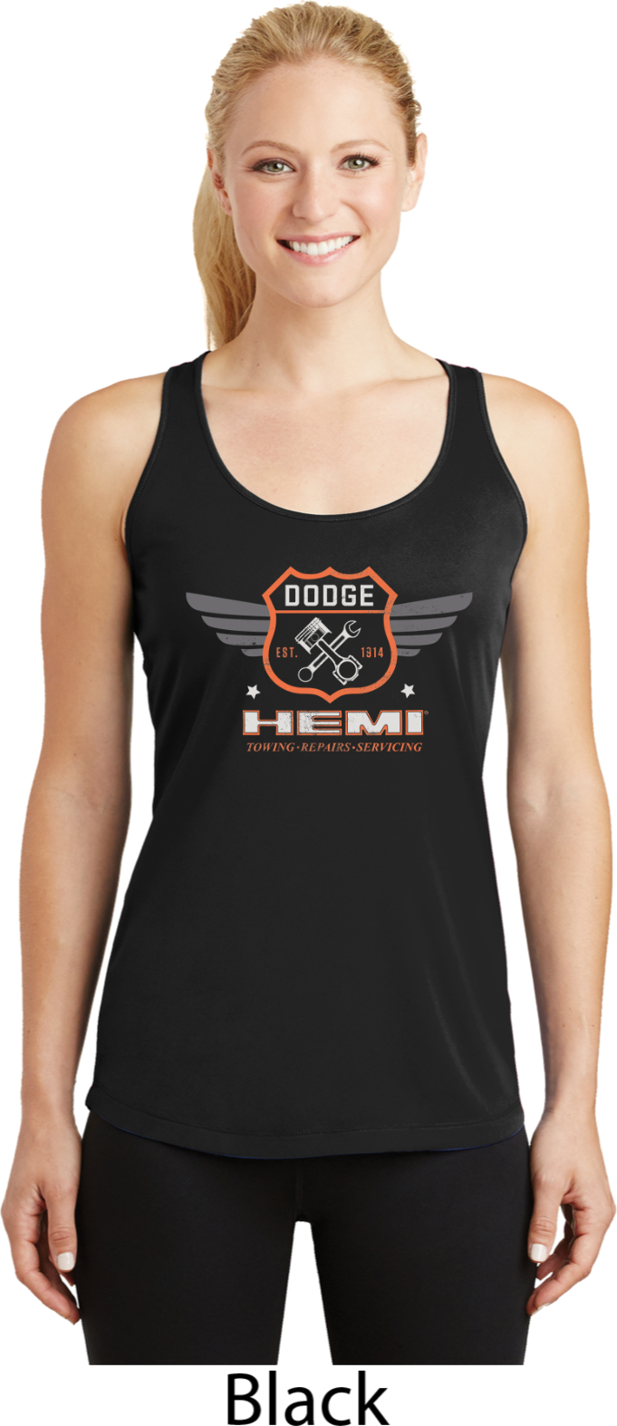 | | Dodge Garage Hemi Ladies Moisture Wicking Racerback Tank TopDodge Garage Hemi Ladies Moisture Wicking Racerback Tank Top A great shirt for someone who loves Dodge 100% polyester Available in Ladies Small, Ladies Medium, Ladies Large, Ladies XL, Ladies 2XL, Ladies 3XL & Ladies 4XL Also available in colors Black, Iron Grey, Navy, and Royal |