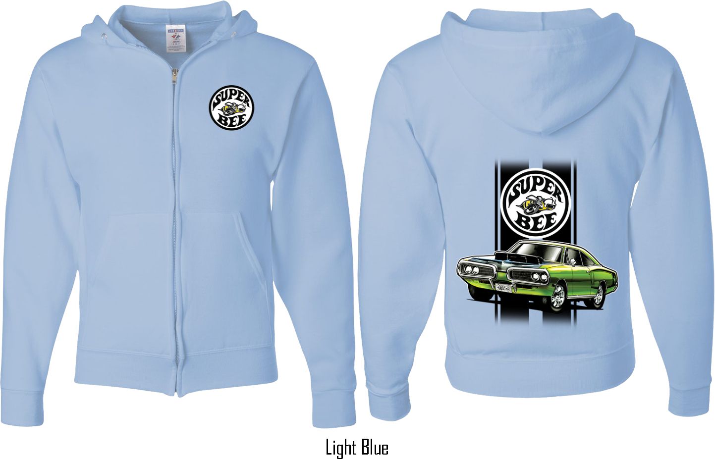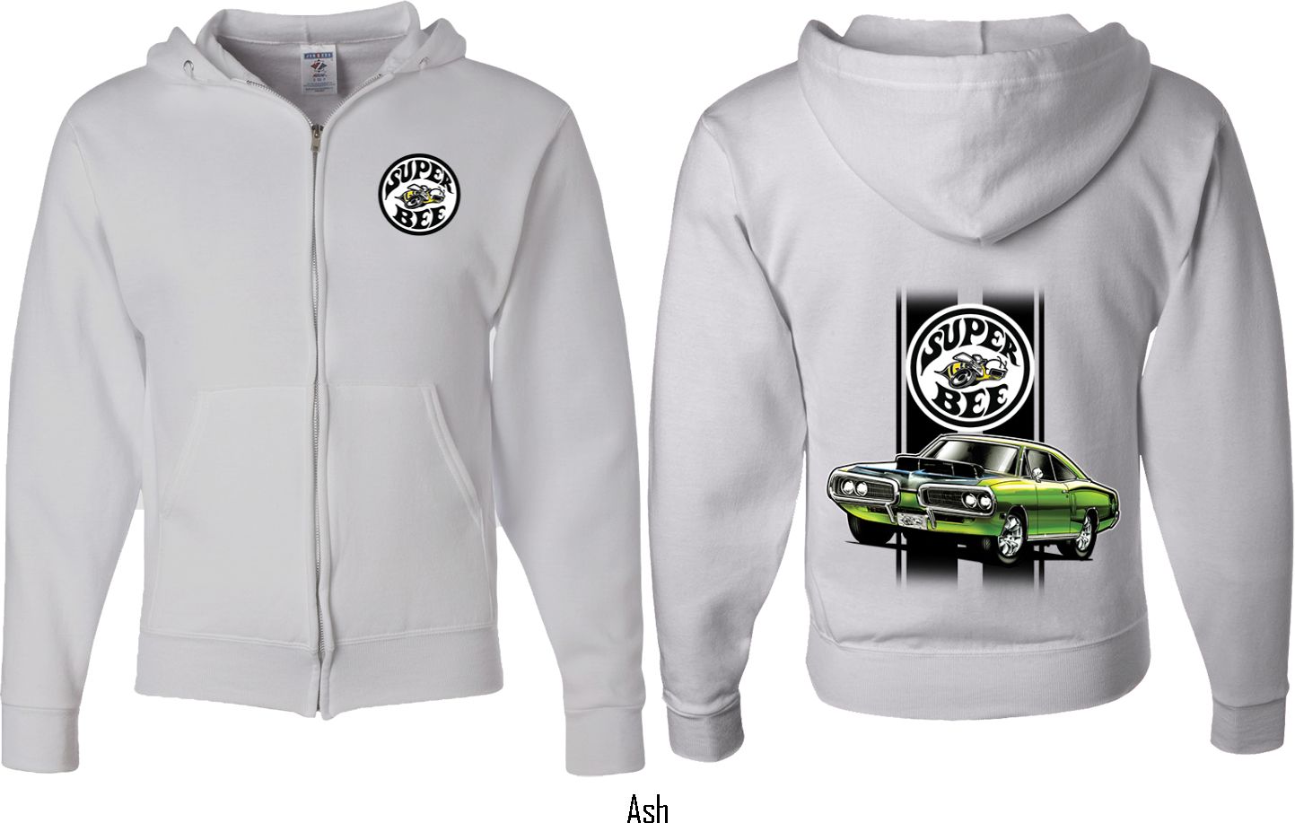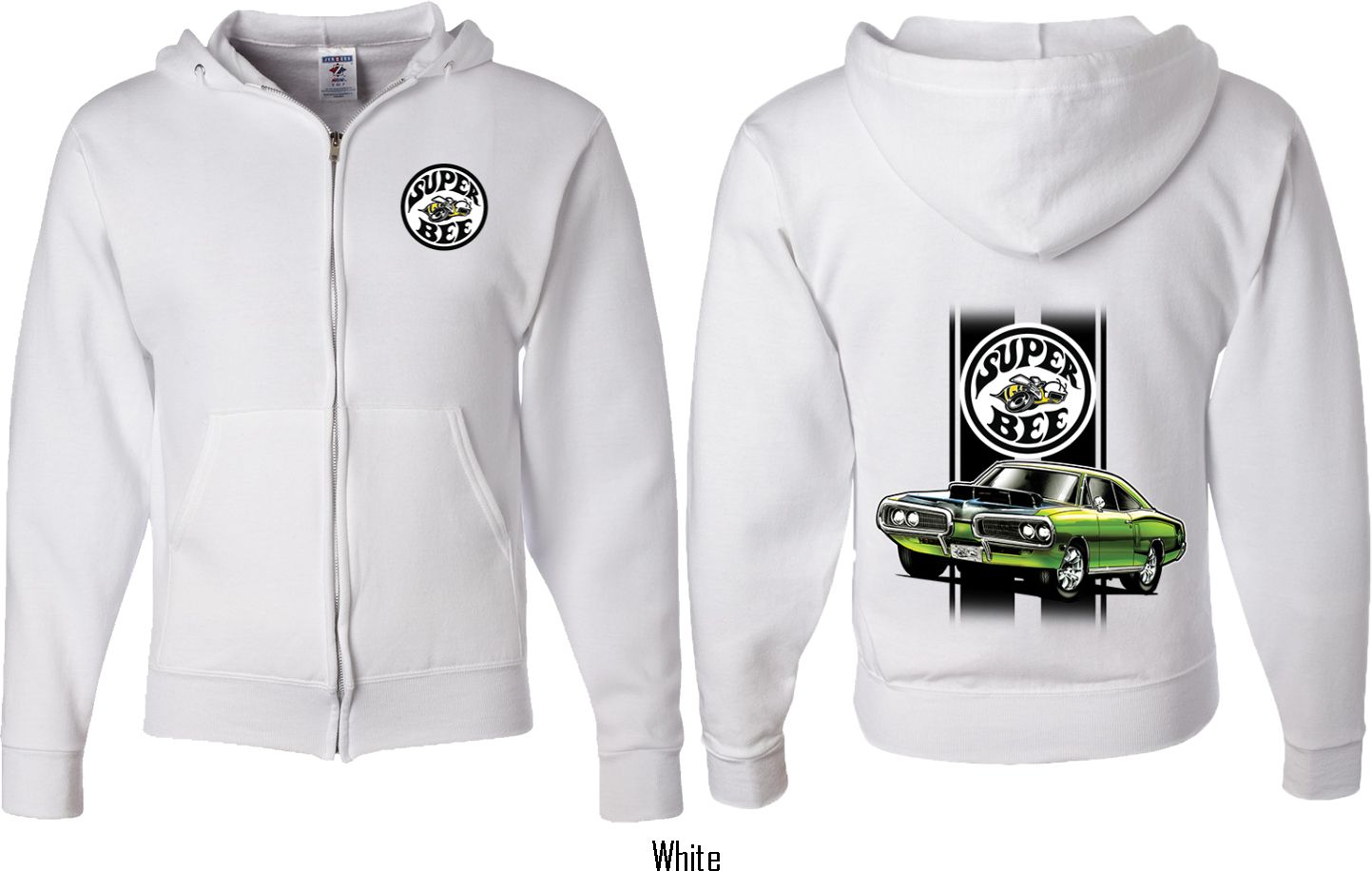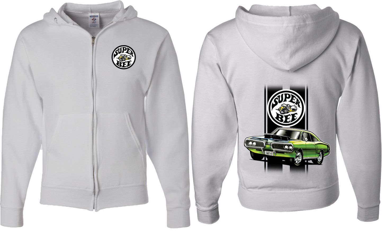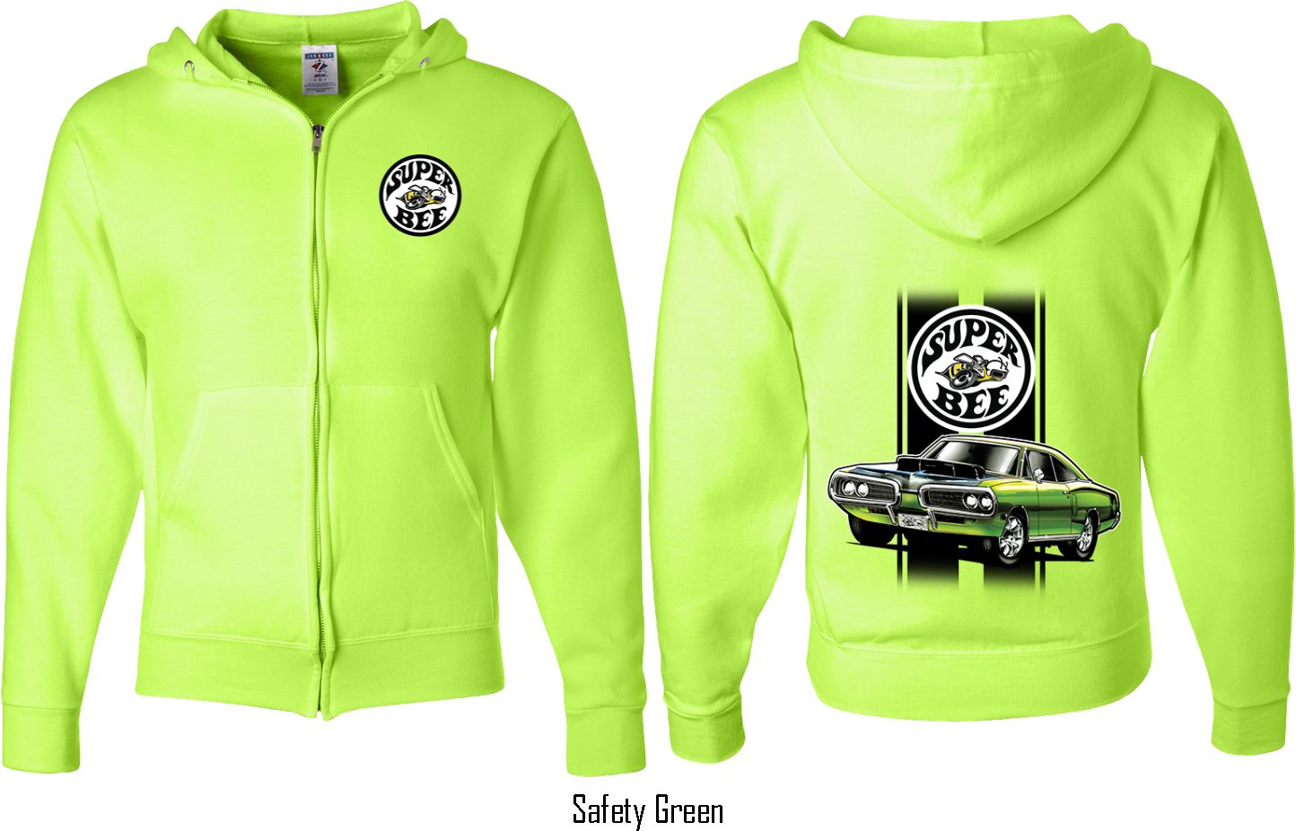 | | Dodge Green Super Bee (Front & Back) Full Zip HoodieA mens full zip hoodie featuring a Super Bee logo on the front and a green Dodge Super Bee on the back. Our mens full zip is made with a blend of cotton/poly. Available in sizes Small through 3XL. Machine wash cold with like colors; dry low heat. ![]() |