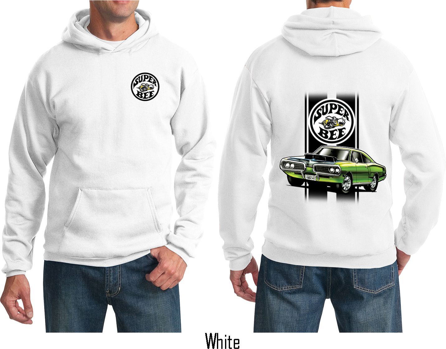 | | Dodge Green Super Bee (Front & Back) HoodieA mens hoodie with a kangaroo pouch pocket featuring a Super Bee logo on the front and a green Dodge Super Bee on the back. Our mens hoodie is made with a blend of cotton/poly. Available in sizes Small through 4XL. Machine wash cold with like colors; dry low heat. ![]() |