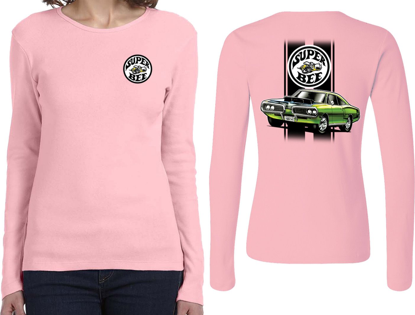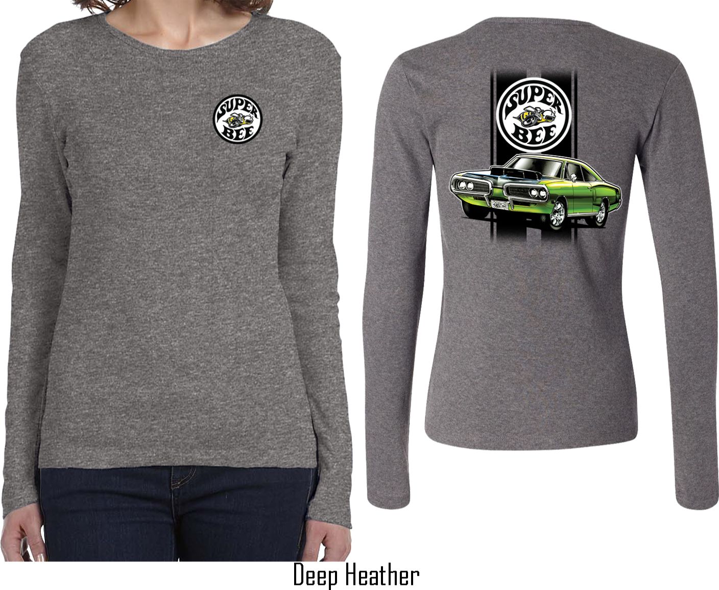 | | Dodge Green Super Bee (Front & Back) Ladies Long SleeveA ladies long sleeve featuring a Super Bee logo on the front and a green Dodge Super Bee on the back. Our ladies shirt is made of 100% cotton. (Deep Heather is made with a blend of cotton/poly) Available in sizes Small through 2XL. Machine wash cold with like colors; dry low heat. ![]() |