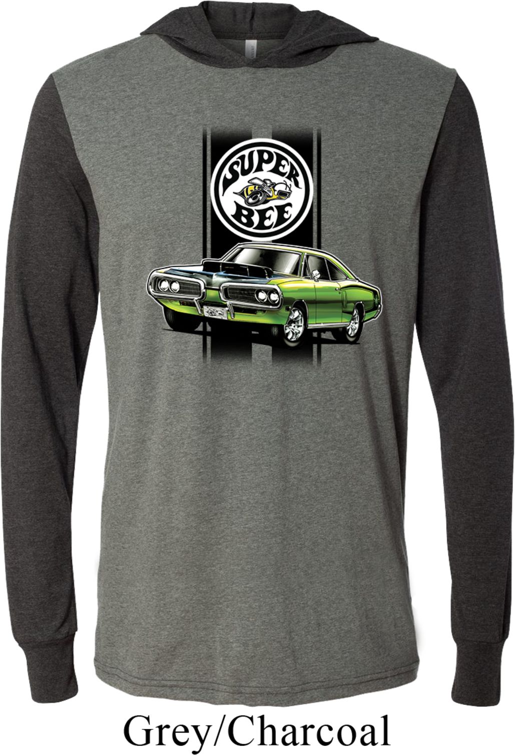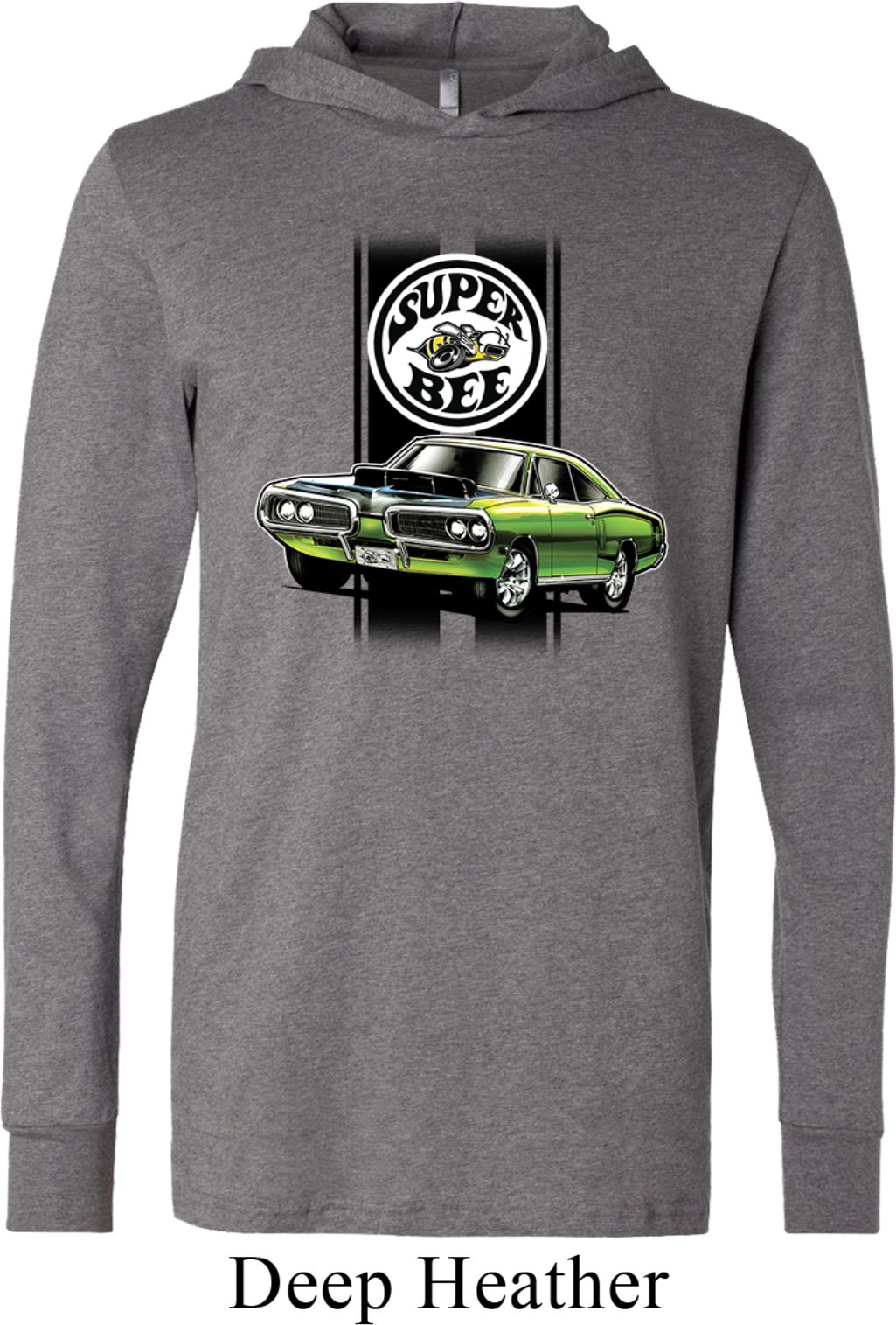 | | Dodge Green Super Bee Lightweight Hoodie TeeDodge Green Super Bee Lightweight Hoodie Tee A super bee logo with the green car A cotton/poly blend Asphalt, black, and white are 100% cotton Charcoal heather is a cotton/poly/rayon blend Available in Small, Medium, Large, XL & 2XL Also available in colors Deep Heather, Grey/Charcoal, and White |