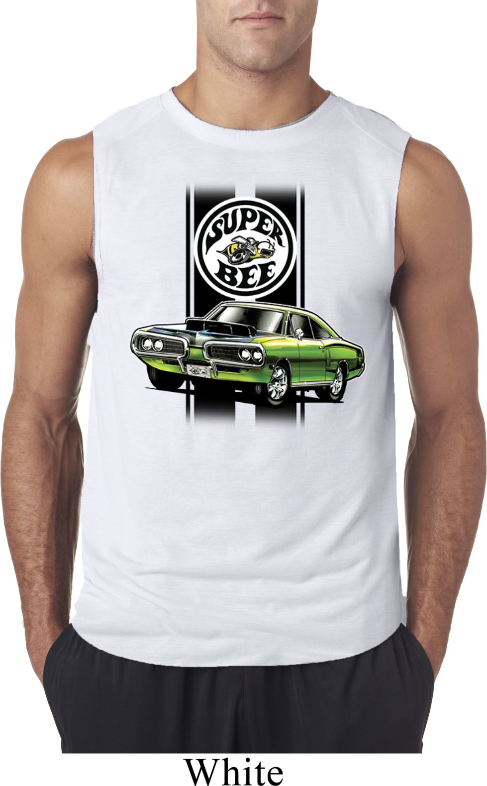 Dodge Green Super Bee Mens White Sleeveless T-Shirt