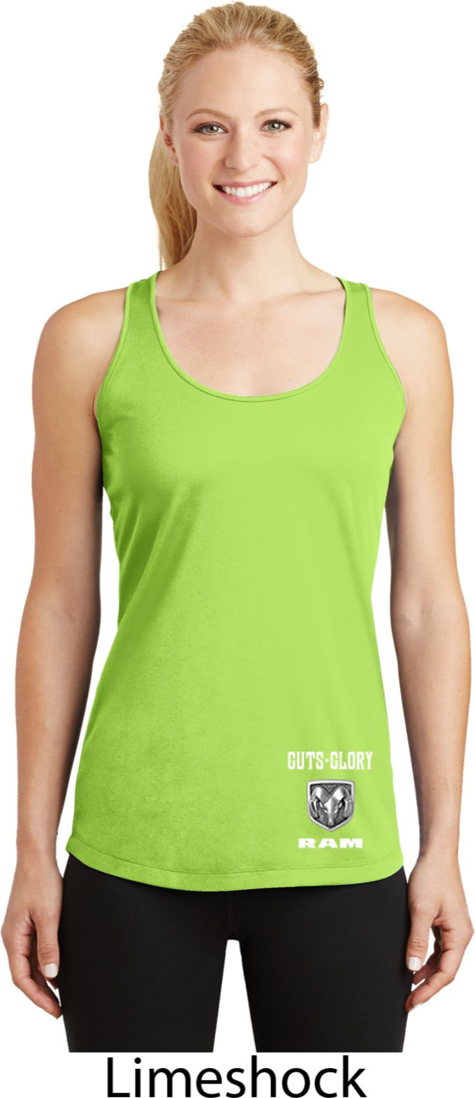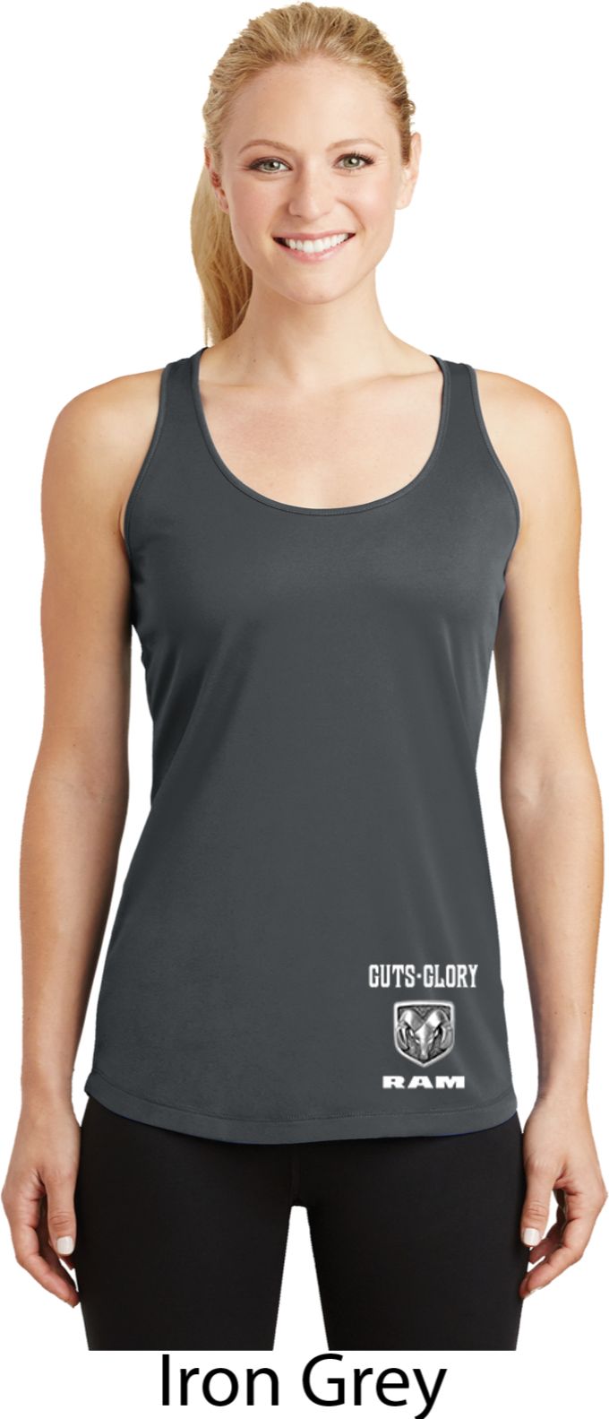 | | Dodge Guts and Glory Ram Bottom Print Ladies Dry Wicking RacerbackDodge Guts and Glory Ram Bottom Print Ladies Dry Wicking Racerback A great shirt for someone who loves Dodge 100% polyester Available in Ladies Small, Ladies Medium, Ladies Large, Ladies XL, Ladies 2XL, Ladies 3XL & Ladies 4XL Also available in colors Black, Hot Coral, Iron Grey, Lime, Neon Pink, Navy, Red, and Royal |
