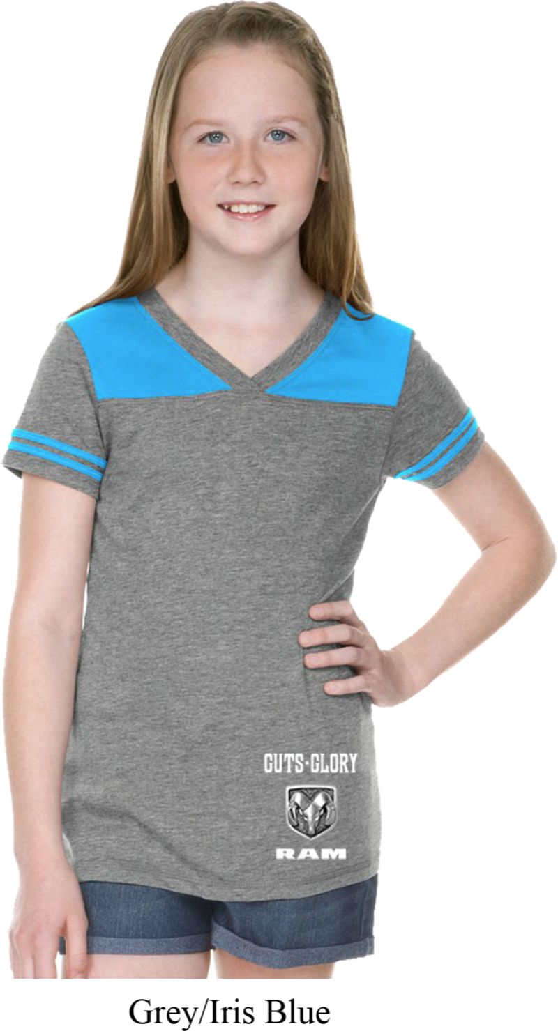 | | Dodge Guts and Glory Ram Logo Bottom Print Girls Football ShirtDodge Guts and Glory Ram Logo Bottom Print Girls Football Shirt A great shirt for someone who loves Dodge A cotton/poly blend Available in Small(7/8), Medium(9/10), Large(12/14) & XL(16) Also available in colors Grey/Black, Grey/Cardinal, Grey/Cobalt, Grey/Grape, Grey/Island Blue, Grey/Navy, Grey/Red, Grey/Orange, and Grey/Watermelon |