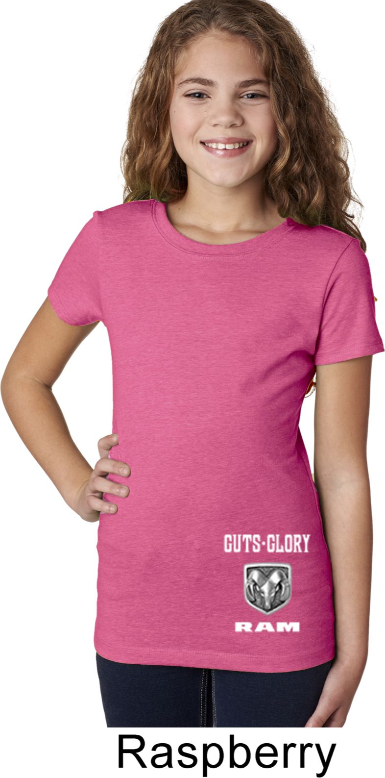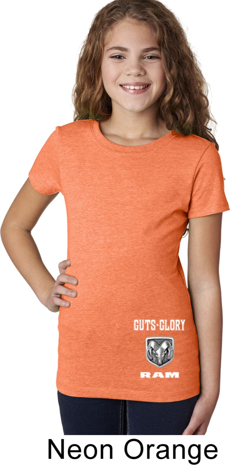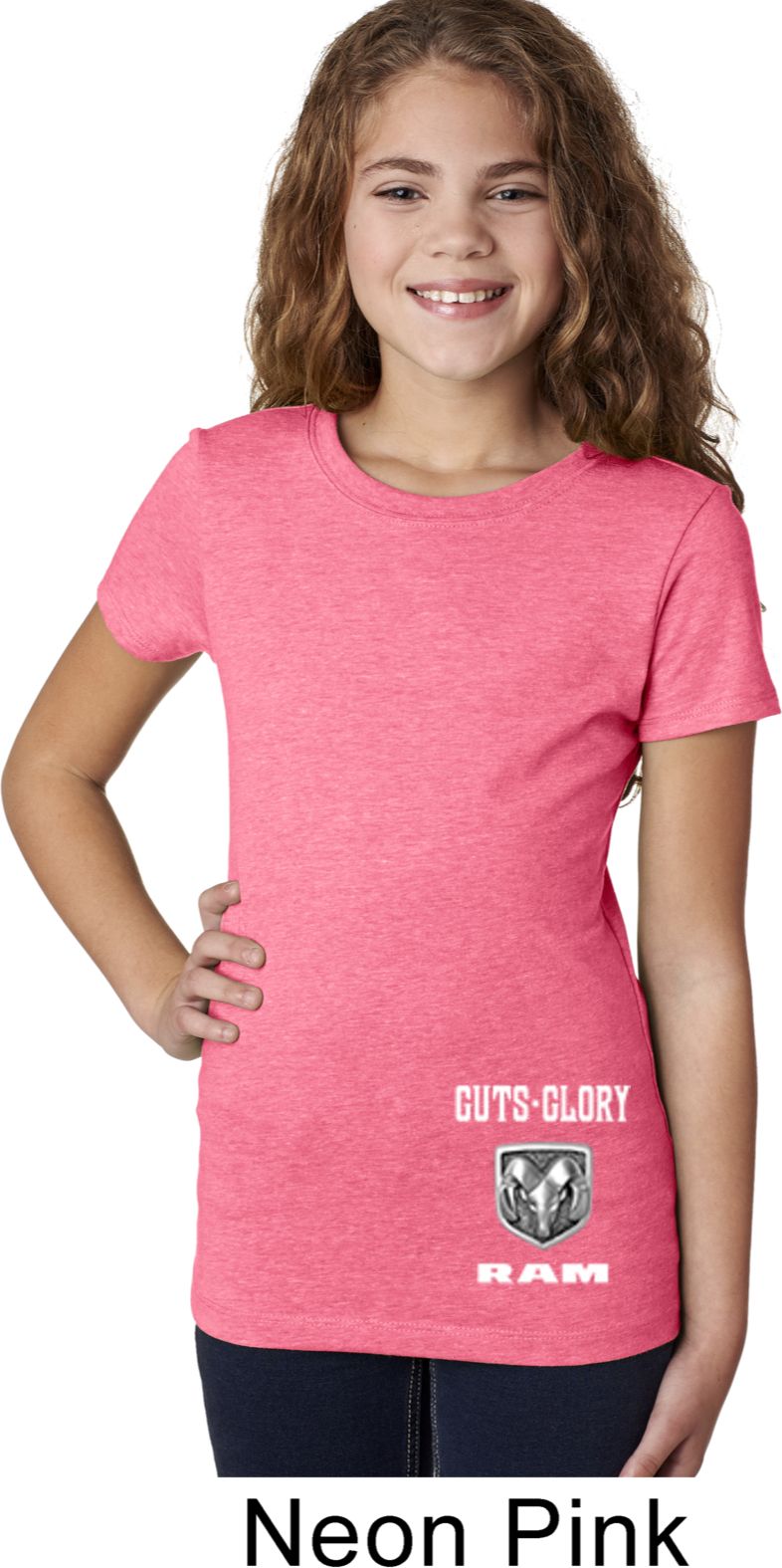 | | Dodge Guts and Glory Ram Logo Bottom Print Girls ShirtDodge Guts and Glory Ram Logo Bottom Print Girls Shirt A great shirt for someone who loves Dodge A cotton/poly blend Available in Youth XS, Youth Small, Youth Medium, Youth Large & Youth XL Also available in colors Apple Green, Bondi Blue, Neon Orange, Neon Pink, Orange, Purple, Raspberry, and Silk |