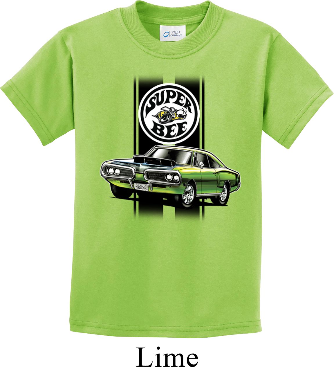 | | Dodge Shirt Green Super Bee Kids ShirtDodge Shirt Green Super Bee Kids Shirt The super bee logo with the green car 100% cotton Ash and athletic heather are a cotton/poly blend Available in Youth Small, Youth Medium, Youth Large & Youth XL Also available in colors Ash, Athletic Heather, Light Blue, Lime, Natural, Pale Pink, White, and Yellow ![]() |