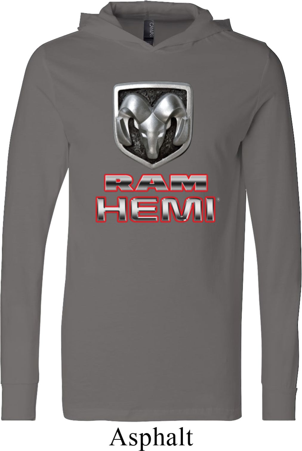 | | Dodge Shirt Ram Hemi Logo Lightweight Hoodie TeeDodge Shirt Ram Hemi Logo Lightweight Hoodie Tee A cotton/poly blend Asphalt, black, and white are 100% cotton Charcoal heather is a cotton/poly/rayon blend Available in Small, Medium, Large, XL & 2XL Also available in colors Asphalt, Black, Charcoal Heather, Deep Heather, Grey/Charcoal, Navy, Royal, and White |