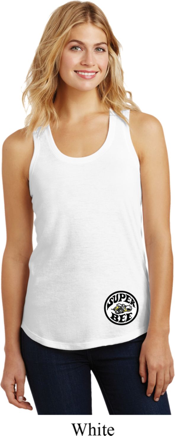 | | Dodge Super Bee Circle Logo Bottom Print Ladies Racerback Tank TopDodge Super Bee Circle Logo Bottom Print Ladies Racerback Tank Top A white circle with the super bee logo A cotton/poly/rayon blend Available in Ladies Small, Ladies Medium, Ladies Large, Ladies XL, Ladies 2XL, Ladies 3XL & Ladies 4XL Also available in colors Grey Frost and White |