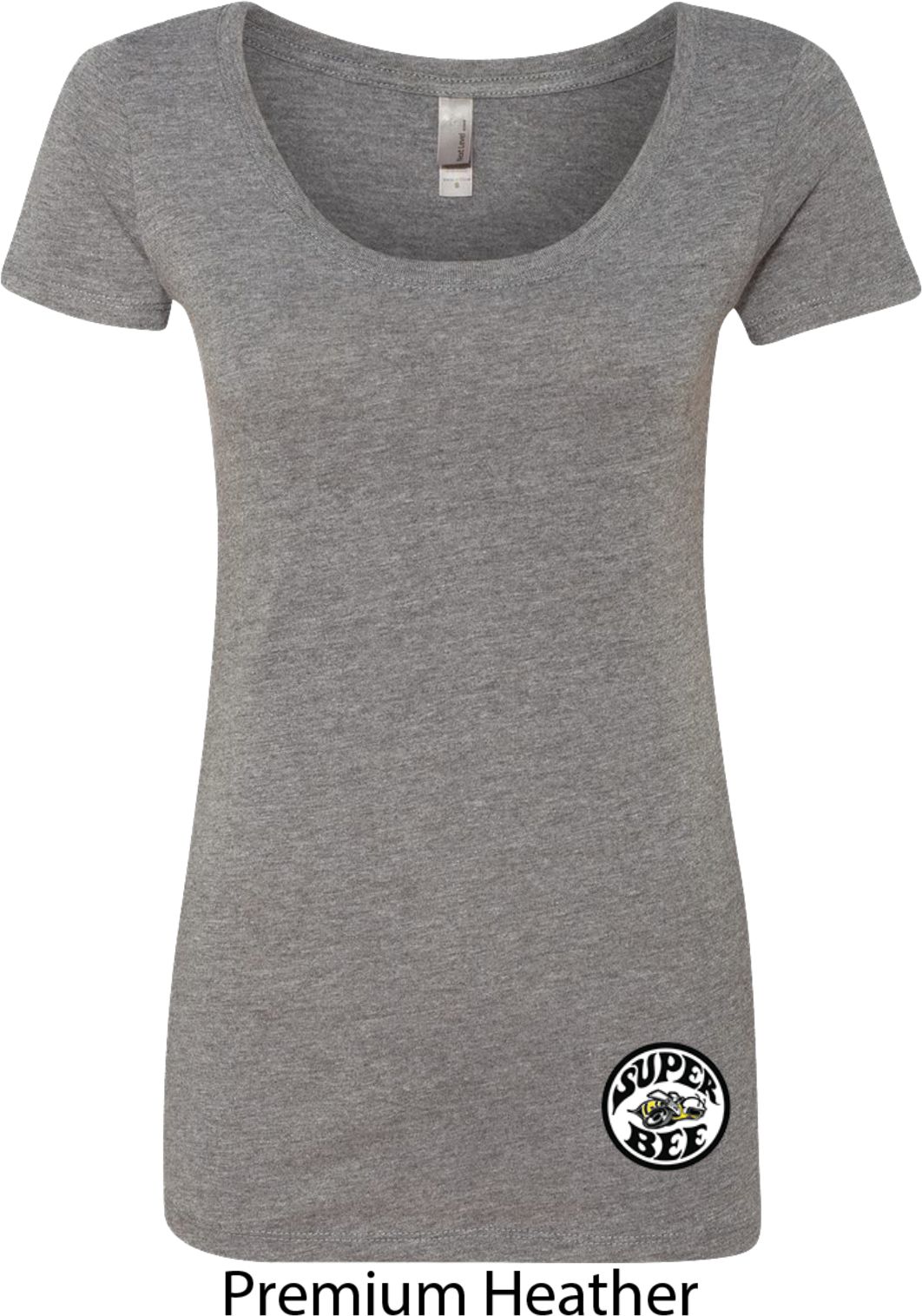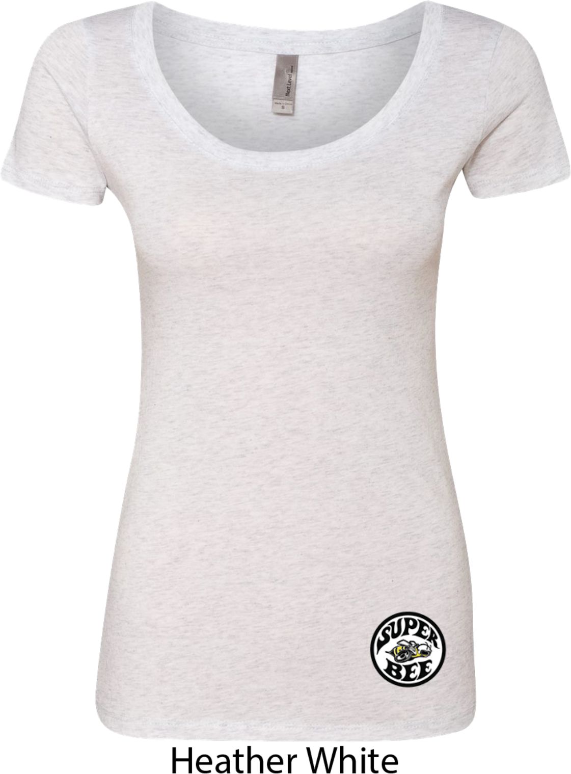 | | Dodge Super Bee Circle Logo Bottom Print Ladies Scoop Neck ShirtDodge Super Bee Circle Logo Bottom Print Ladies Scoop Neck Shirt A white circle with the super bee logo A poly/cotton/rayon blend Available in Ladies Small, Ladies Medium, Ladies Large, Ladies XL & Ladies 2XL Also available in colors Heather White and Premium Heather |