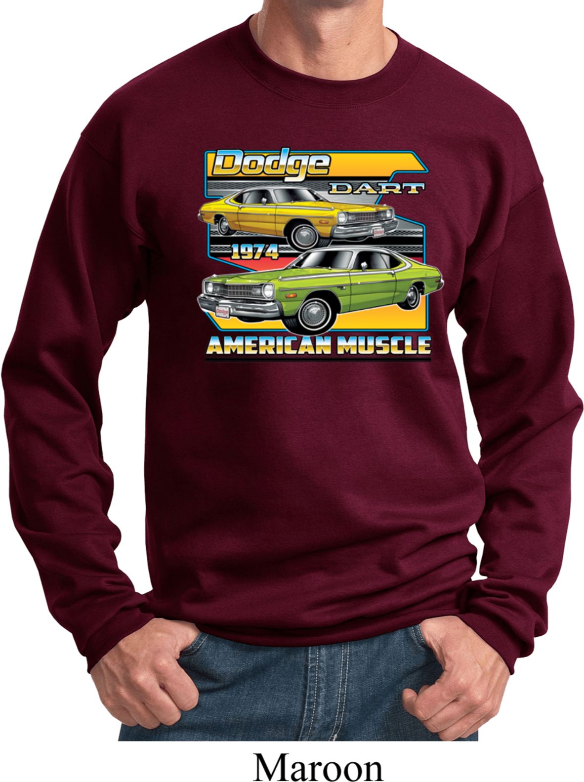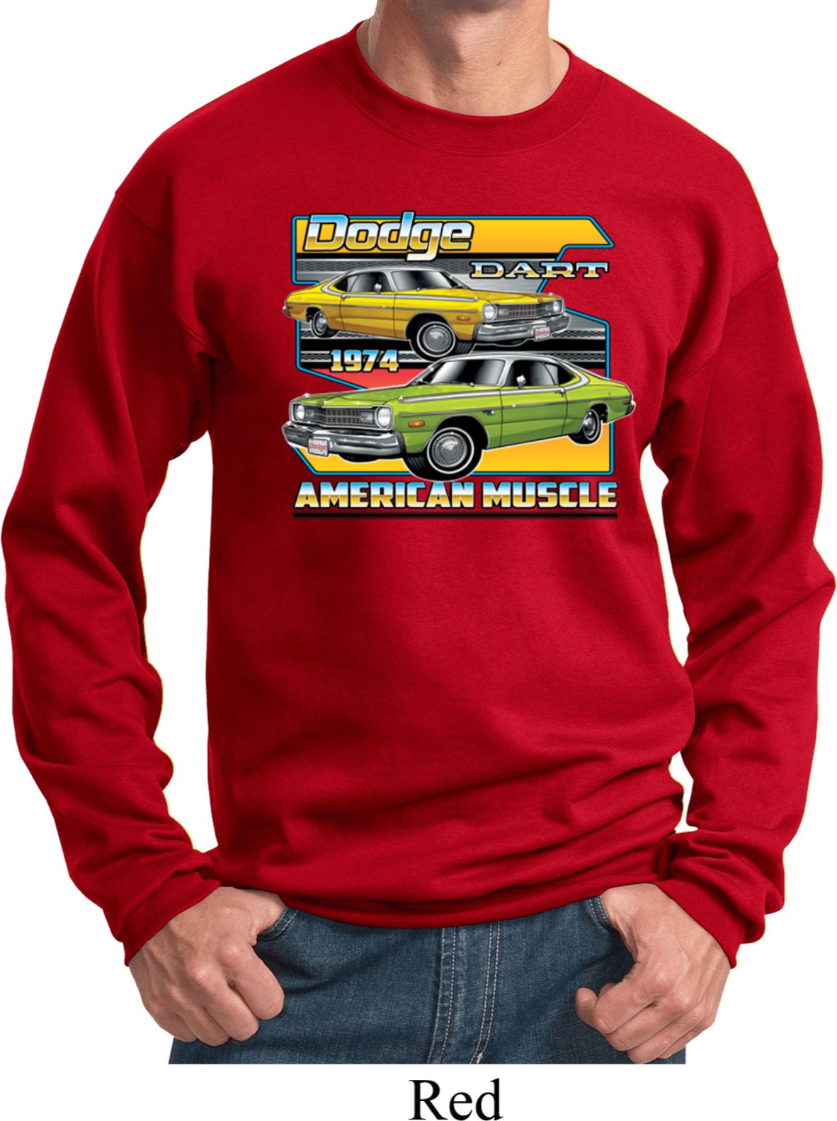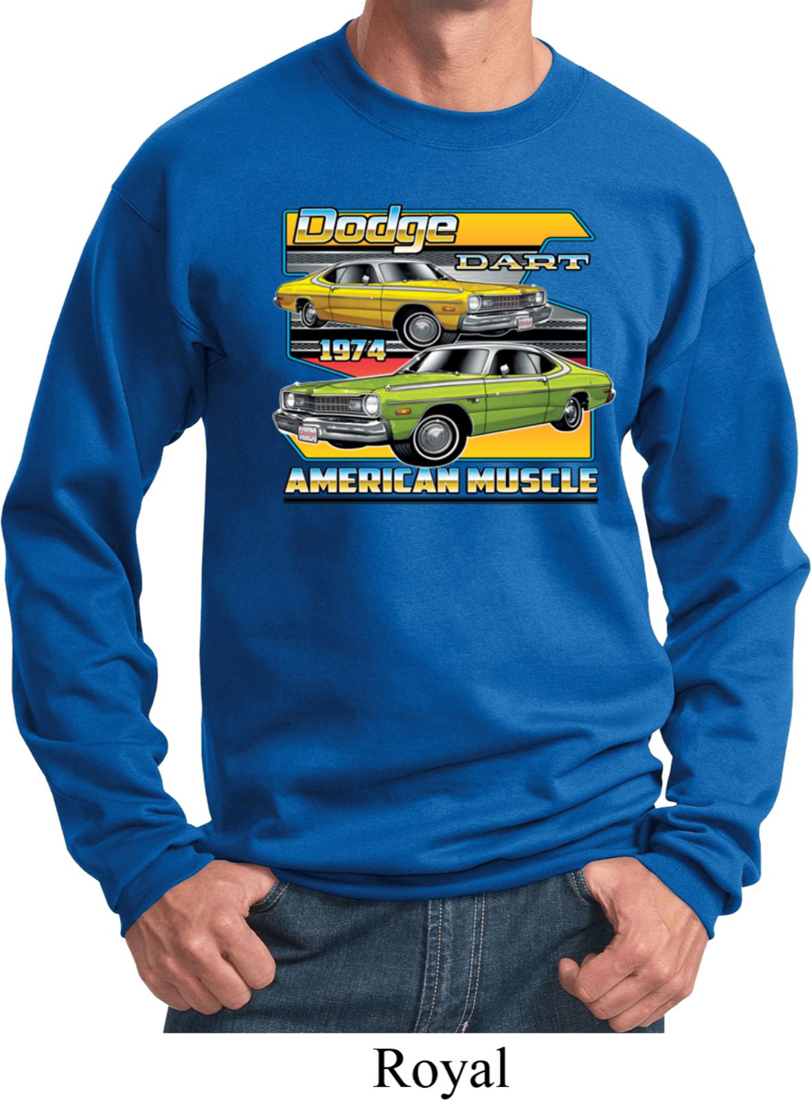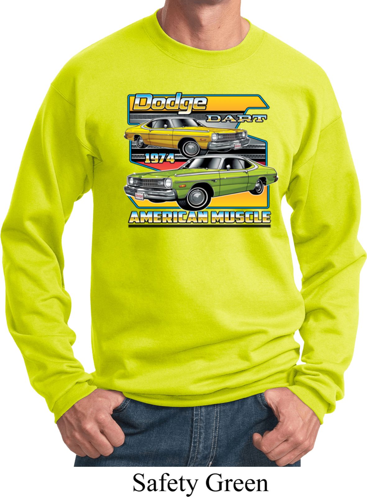 | | Dodge Sweatshirt Dodge Dart Sweat ShirtDodge Sweatshirt Dodge Dart Sweat Shirt A cotton/poly blend Available in Small, Medium, Large, XL, 2XL, 3XL & 4XL Also available in colors Ash, Athletic Heather, Black, Cardinal, Chocolate, Dark Green, Gold, Kelly, Maroon, Navy, Orange, Pale Pink, Purple, Red, Royal, Safety Green, and White ![]() |