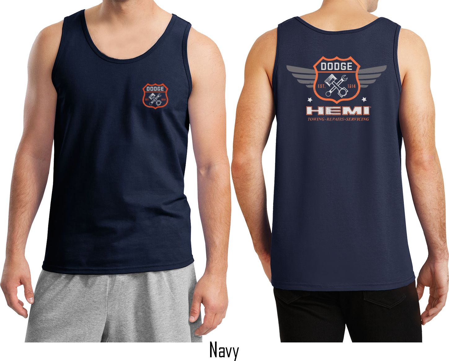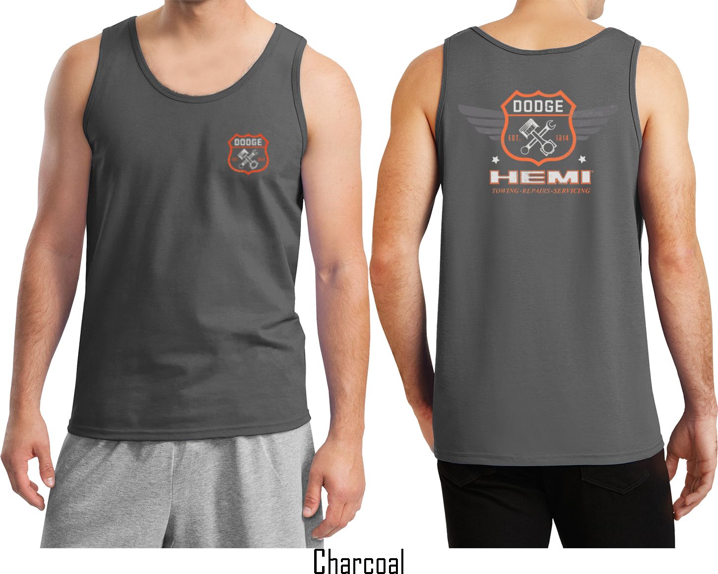 | | Dodge Tank Top Garage Hemi (Front & Back) TanktopA mens tanktop featuring Dodge Garage Est. 1914 on the front and back Hemi: Towing, Repairs, Servicing. This mens tank top makes an awesome gift for all Dodge car enthusiasts! Our mens tanktop is made of 100% cotton. Available in sizes Small through 2XL. Machine wash cold with like colors; dry low heat. ![]() |