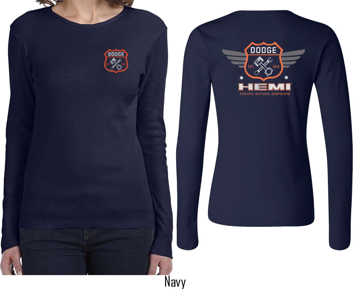 | | Dodge Tee Garage Hemi (Front & Back) Ladies Long SleeveA ladies long sleeve featuring Dodge Garage Est. 1914 on the front and back Hemi: Towing, Repairs, Servicing. This ladies tee makes an awesome gift for all Dodge car enthusiasts! Our ladies shirt is made of 100% cotton. Available in sizes Small through 2XL. Machine wash cold with like colors; dry low heat. ![]() |