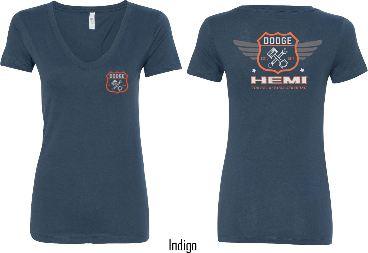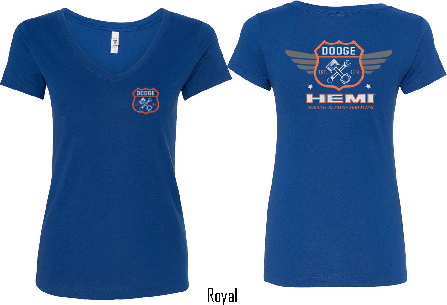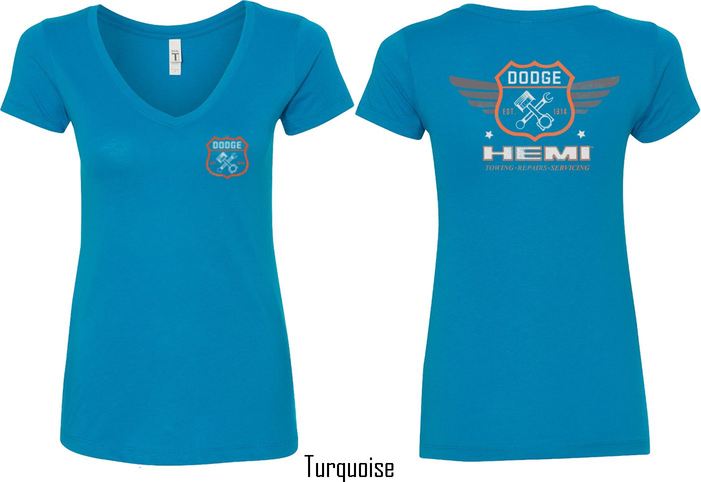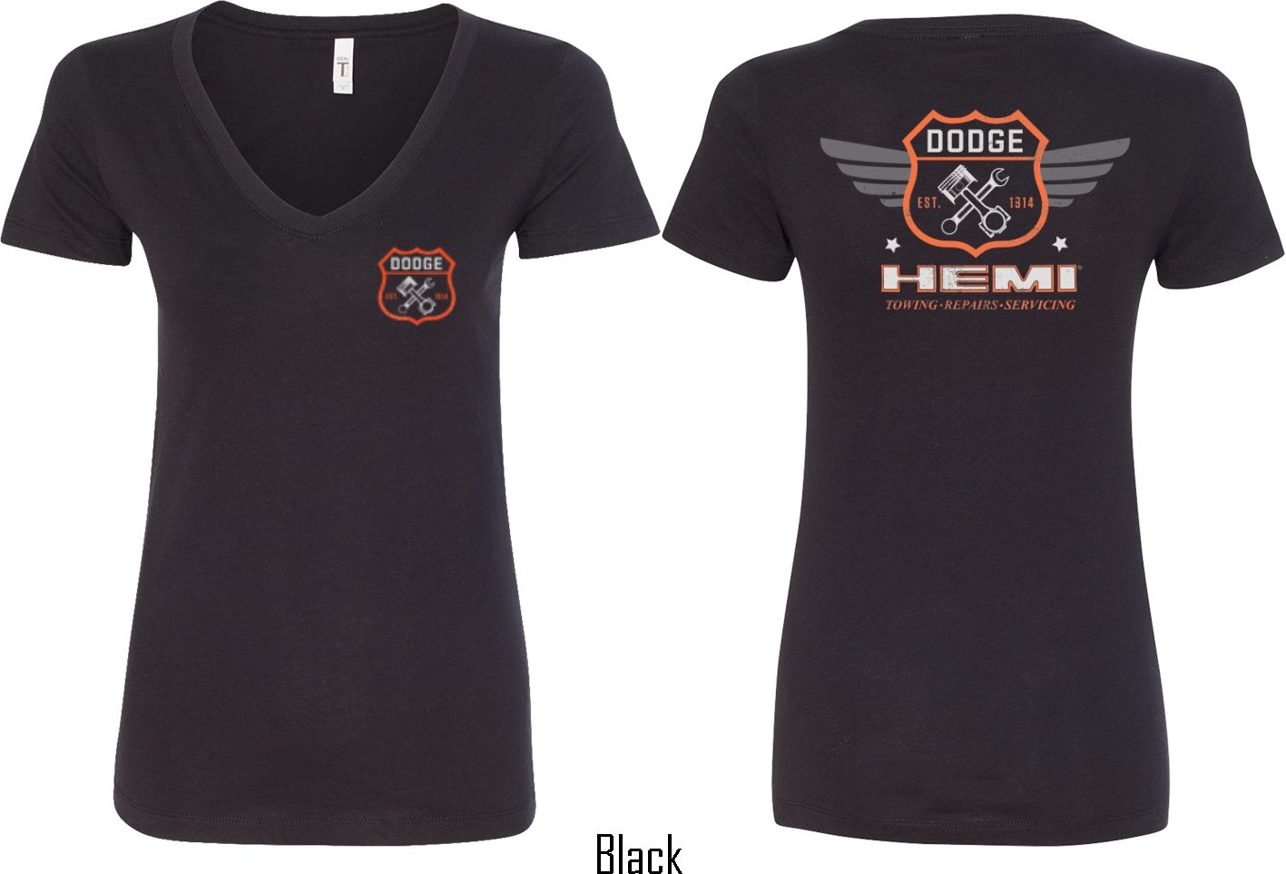 | | Dodge Tee Garage Hemi (Front & Back) Ladies V-neckA fitted ladies v-neck featuring Dodge Garage Est. 1914 on the front and back Hemi: Towing, Repairs, Servicing. This ladies tee makes an awesome gift for all Dodge car enthusiasts! Our ladies shirt is made with a blend of cotton/poly. Available in sizes Small through 2XL. Machine wash cold with like colors; dry low heat. ![]() |