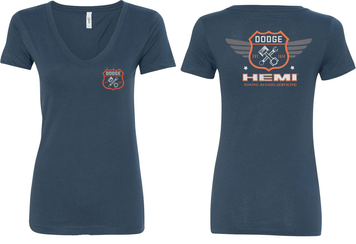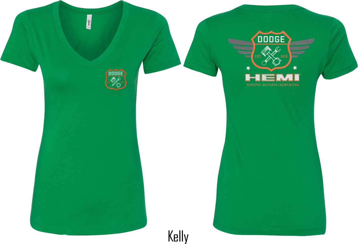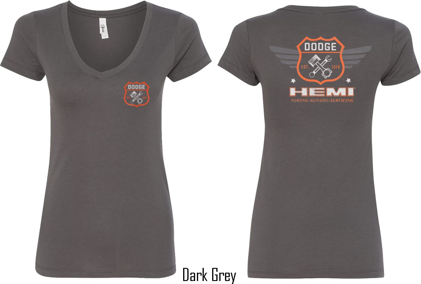 | | Dodge Tee Garage Hemi (Front & Back) Ladies V-neckA fitted ladies v-neck featuring Dodge Garage Est. 1914 on the front and back Hemi: Towing, Repairs, Servicing. This ladies tee makes an awesome gift for all Dodge car enthusiasts! Our ladies shirt is made with a blend of cotton/poly. Available in sizes Small through 2XL. Machine wash cold with like colors; dry low heat. ![]() |