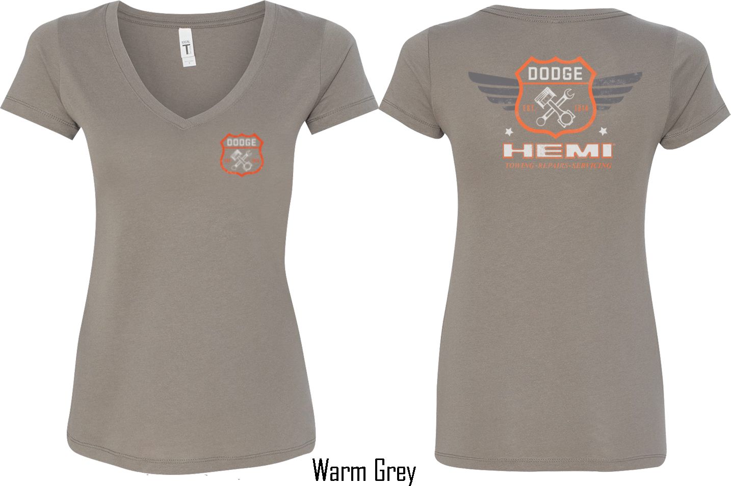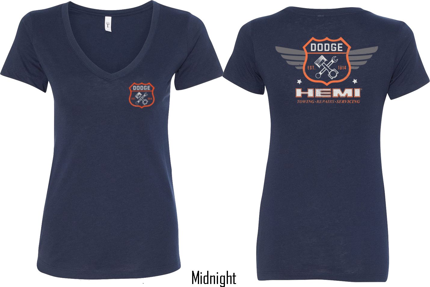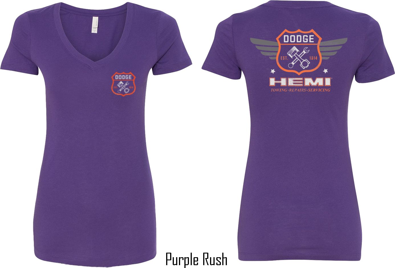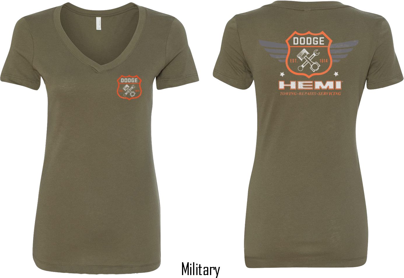 | | Dodge Tee Garage Hemi (Front & Back) Ladies V-neckA fitted ladies v-neck featuring Dodge Garage Est. 1914 on the front and back Hemi: Towing, Repairs, Servicing. This ladies tee makes an awesome gift for all Dodge car enthusiasts! Our ladies shirt is made with a blend of cotton/poly. Available in sizes Small through 2XL. Machine wash cold with like colors; dry low heat. ![]() |