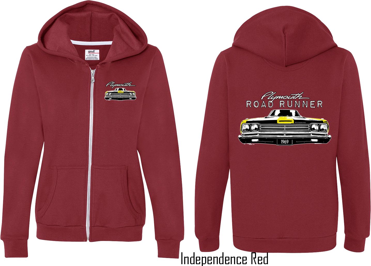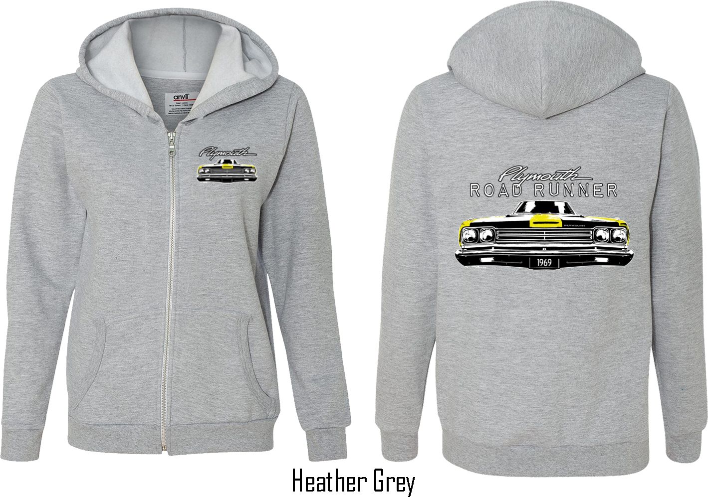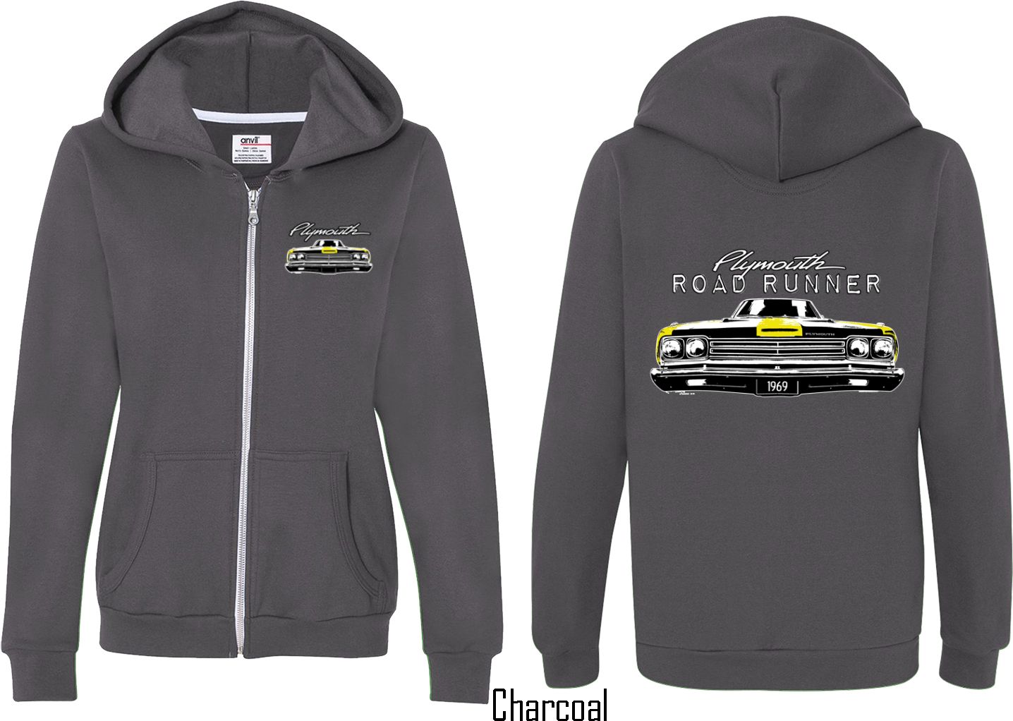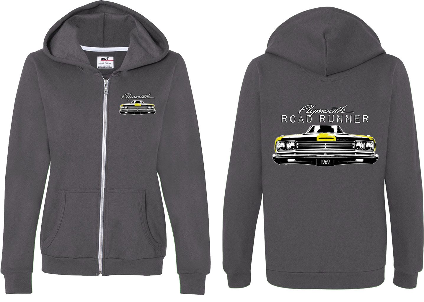 | | Dodge Yellow Plymouth Roadrunner (Front & Back) Ladies Full ZipA ladies full zip hoodie featuring the front end of a yellow 1969 Plymouth Roadrunner on the front and back. Our ladies full zip is made with a blend of cotton/poly. Available in sizes Small through 2XL. Machine wash cold with like colors; dry low heat. ![]() |