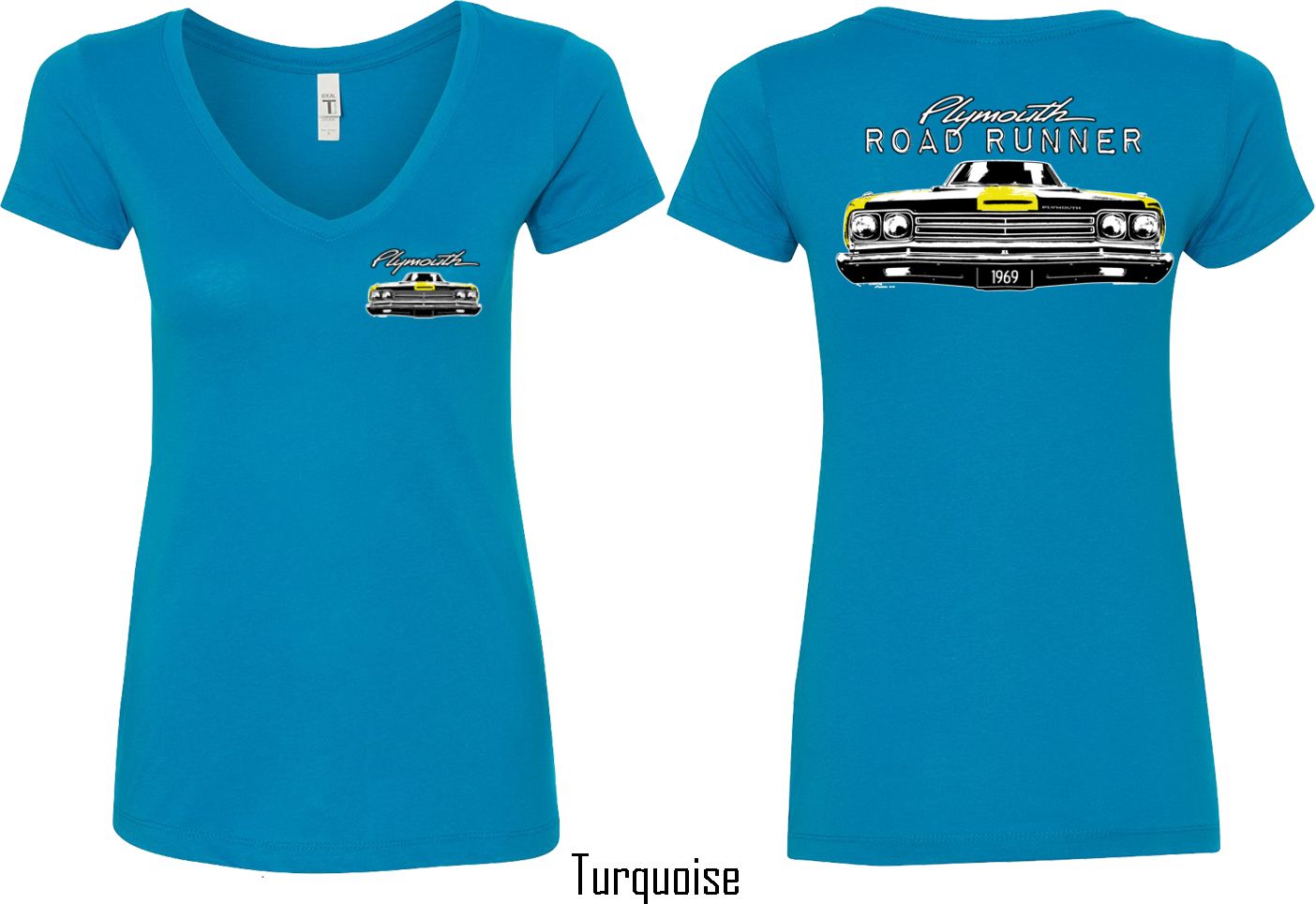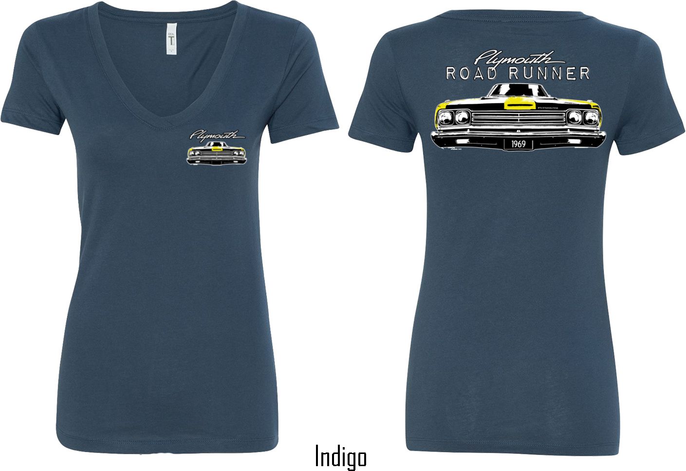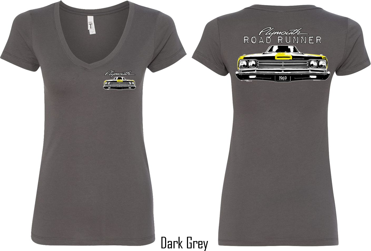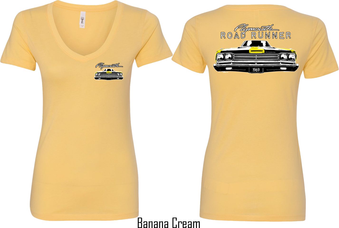 | | Dodge Yellow Plymouth Roadrunner (Front & Back) Ladies V-neckA fitted ladies v-neck featuring the front end of a yellow 1969 Plymouth Roadrunner on the front and back. Our ladies shirt is made with a blend of cotton/poly. Available in sizes Small through 2XL. Machine wash cold with like colors; dry low heat. ![]() |