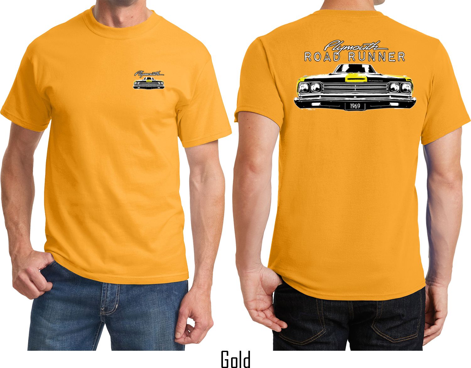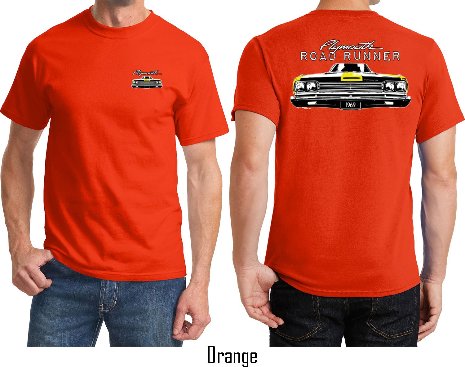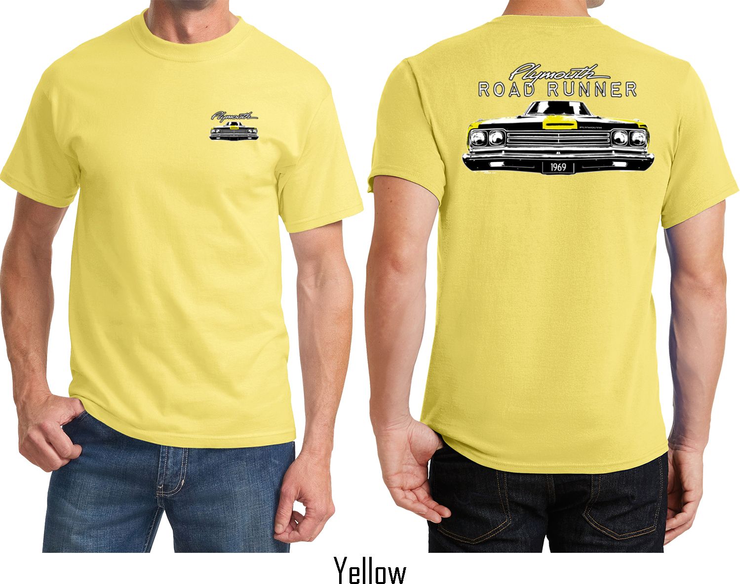 | | Dodge Yellow Plymouth Roadrunner (Front & Back) T-shirtA mens t-shirt featuring the front end of a yellow 1969 Plymouth Roadrunner on the front and back. Our mens tee is made of 100% cotton. (Ash is made with a blend of cotton/poly) Available in sizes Small through 6XL. Machine wash cold with like colors; dry low heat. ![]() |