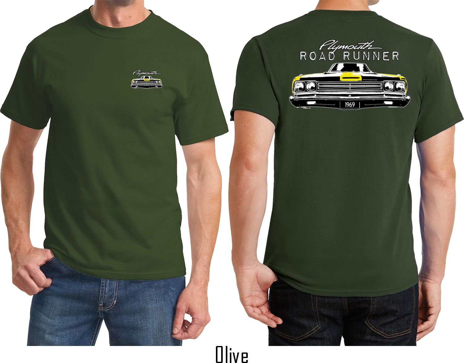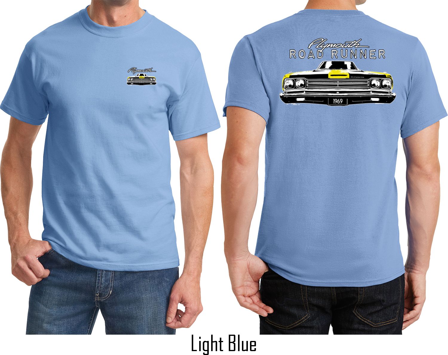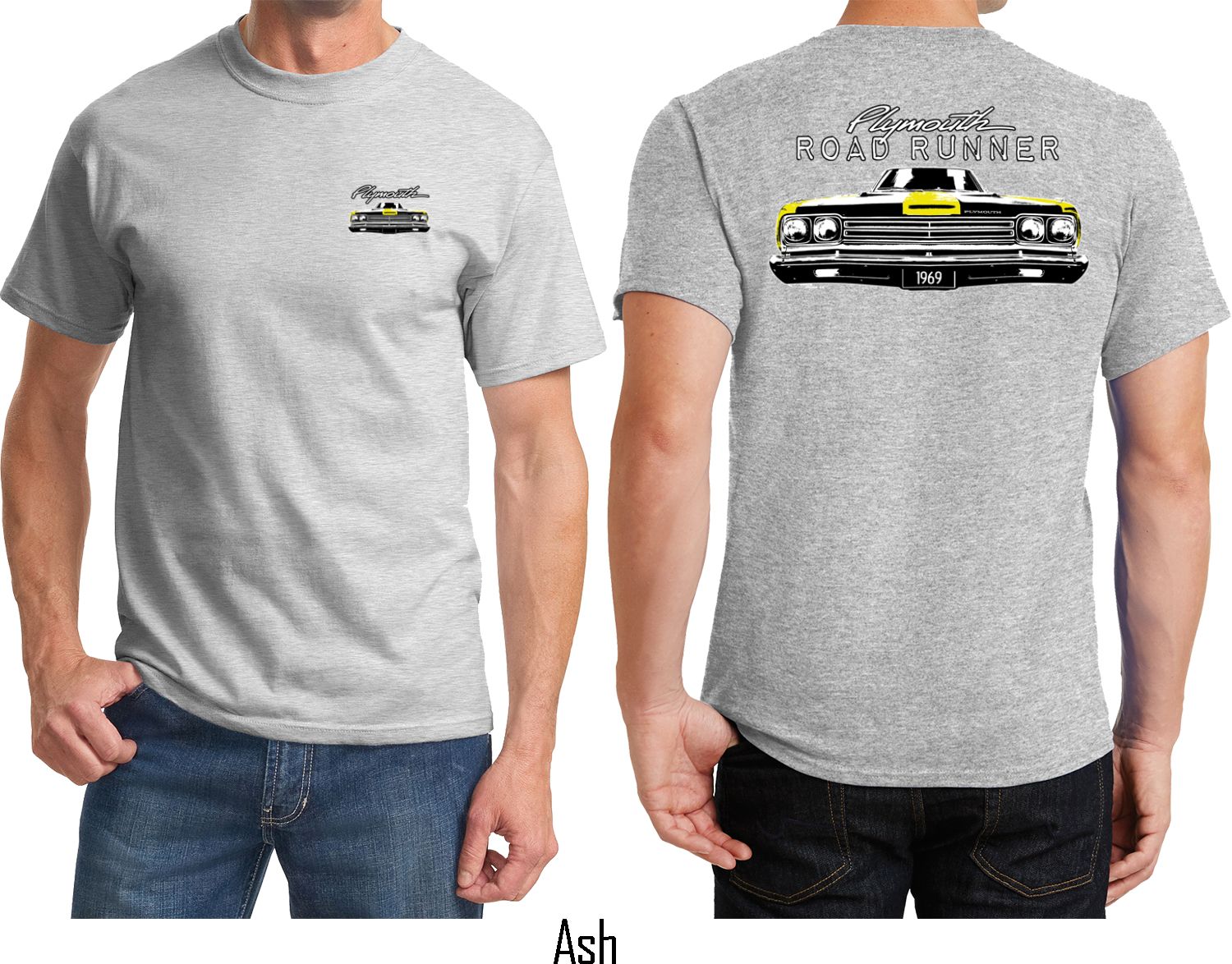 | | Dodge Yellow Plymouth Roadrunner (Front & Back) T-shirtA mens t-shirt featuring the front end of a yellow 1969 Plymouth Roadrunner on the front and back. Our mens tee is made of 100% cotton. (Ash is made with a blend of cotton/poly) Available in sizes Small through 6XL. Machine wash cold with like colors; dry low heat. ![]() |