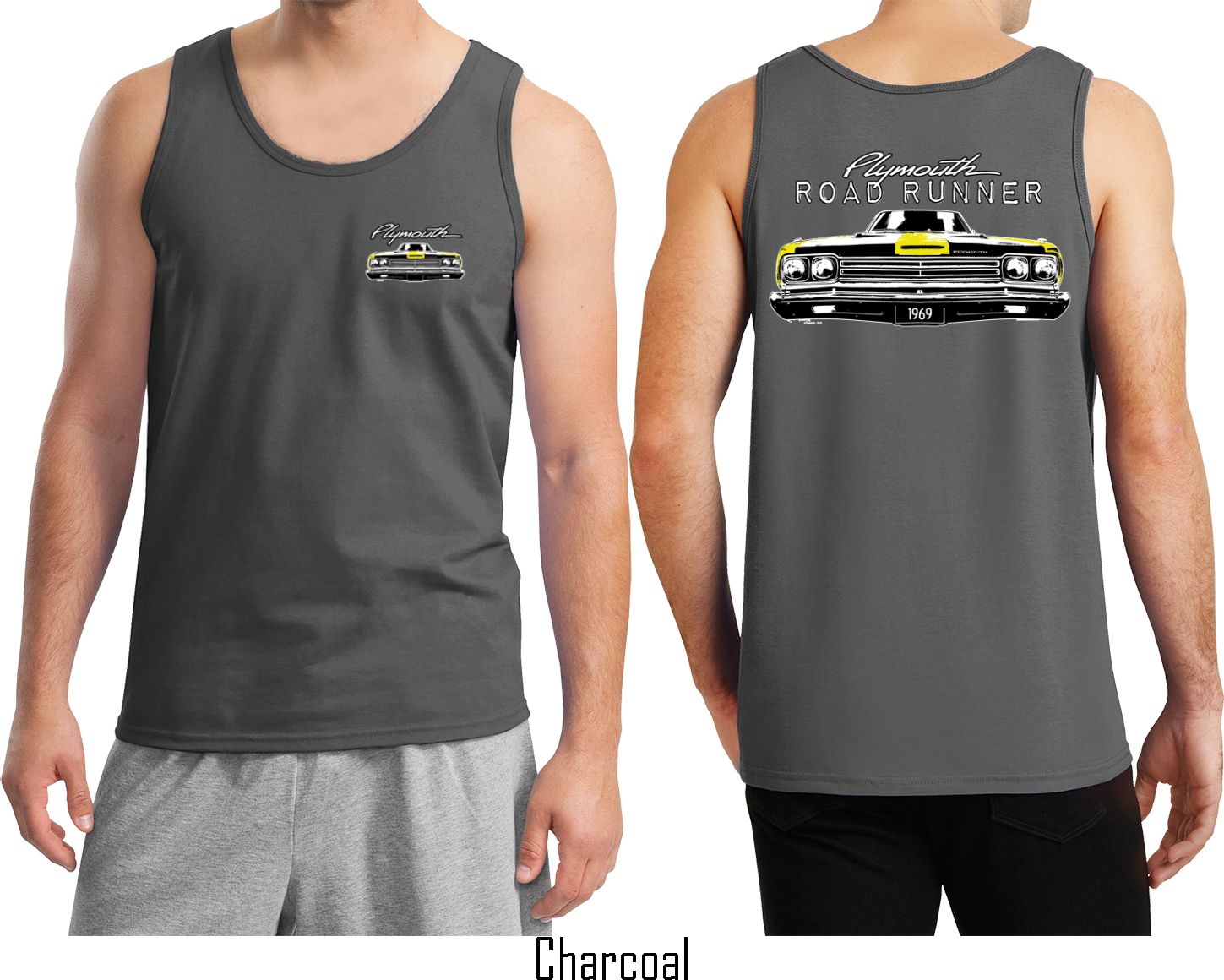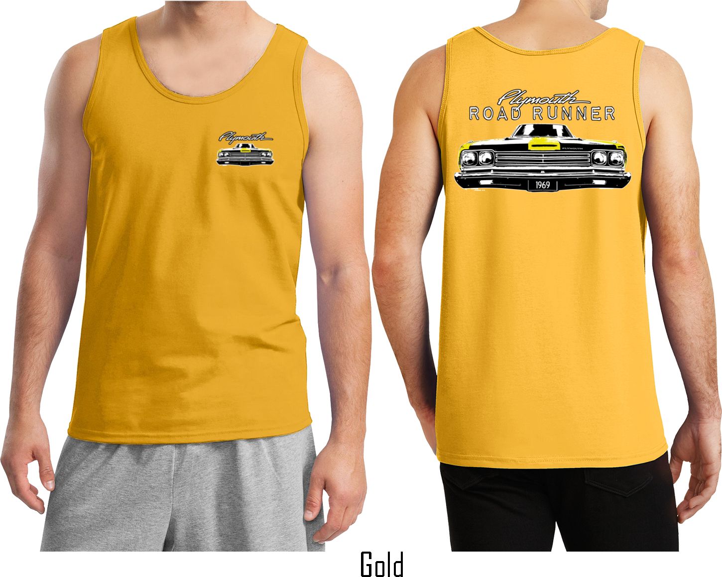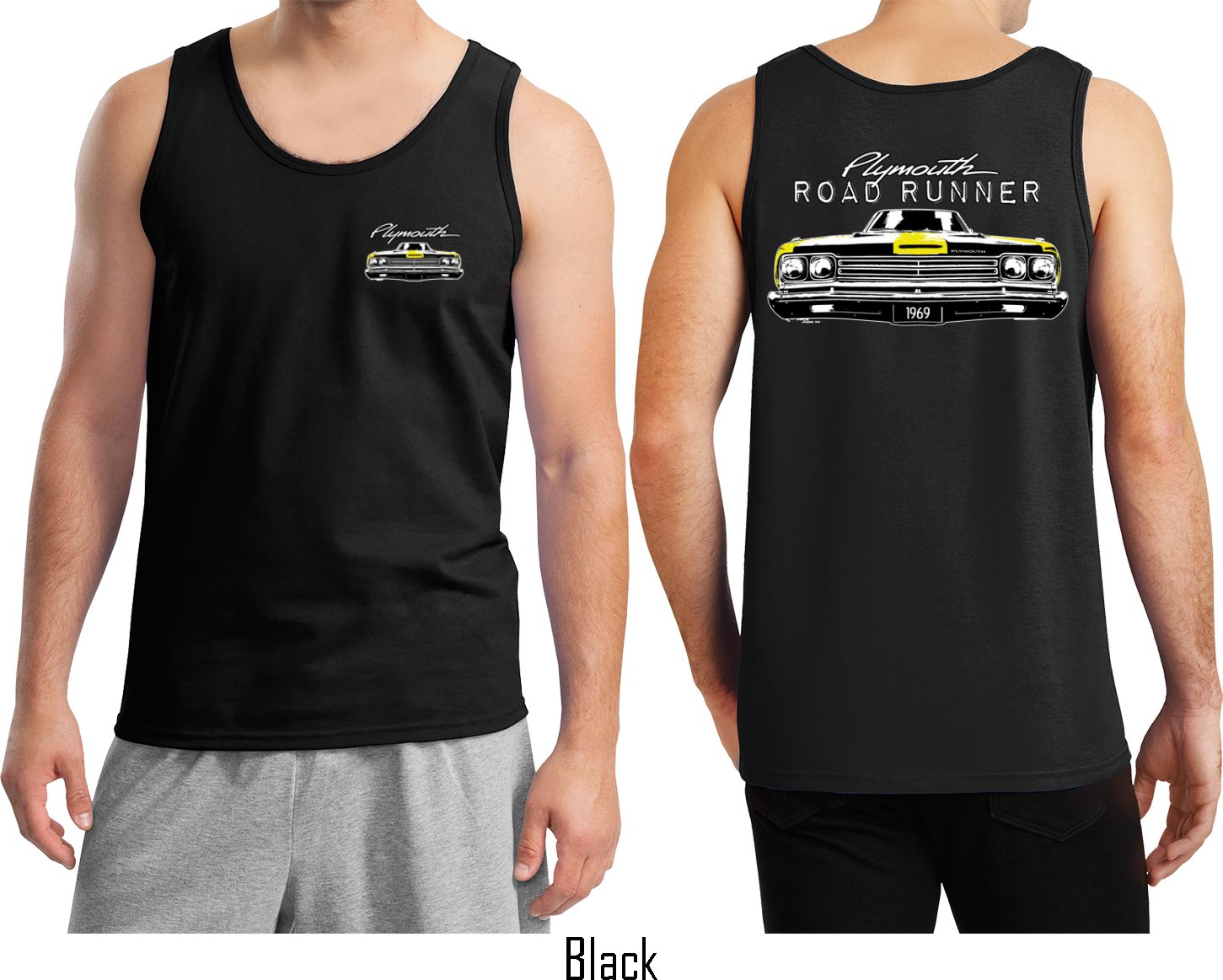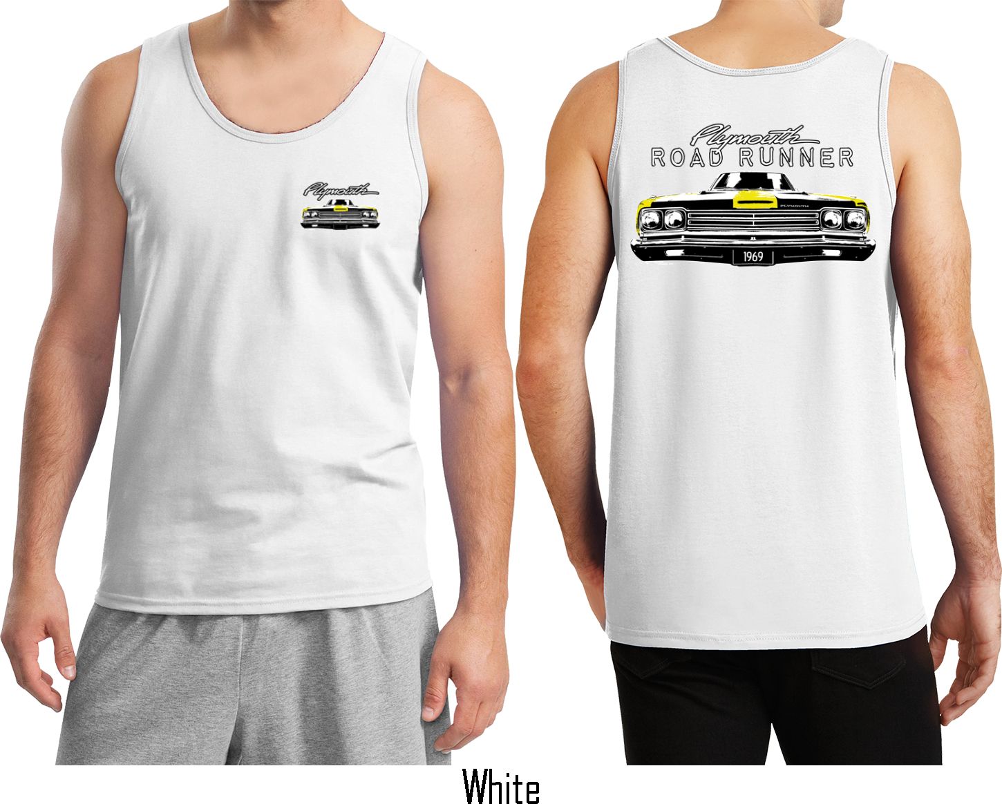| | Dodge Yellow Plymouth Roadrunner (Front & Back) Tank TopA mens tanktop featuring the front end of a yellow 1969 Plymouth Roadrunner on the front and back. Our mens tank top is made of 100% cotton. (Ash and Sports Grey are made with a blend of cotton/poly) Available in sizes Small through 2XL. Machine wash cold with like colors; dry low heat. ![]() |
