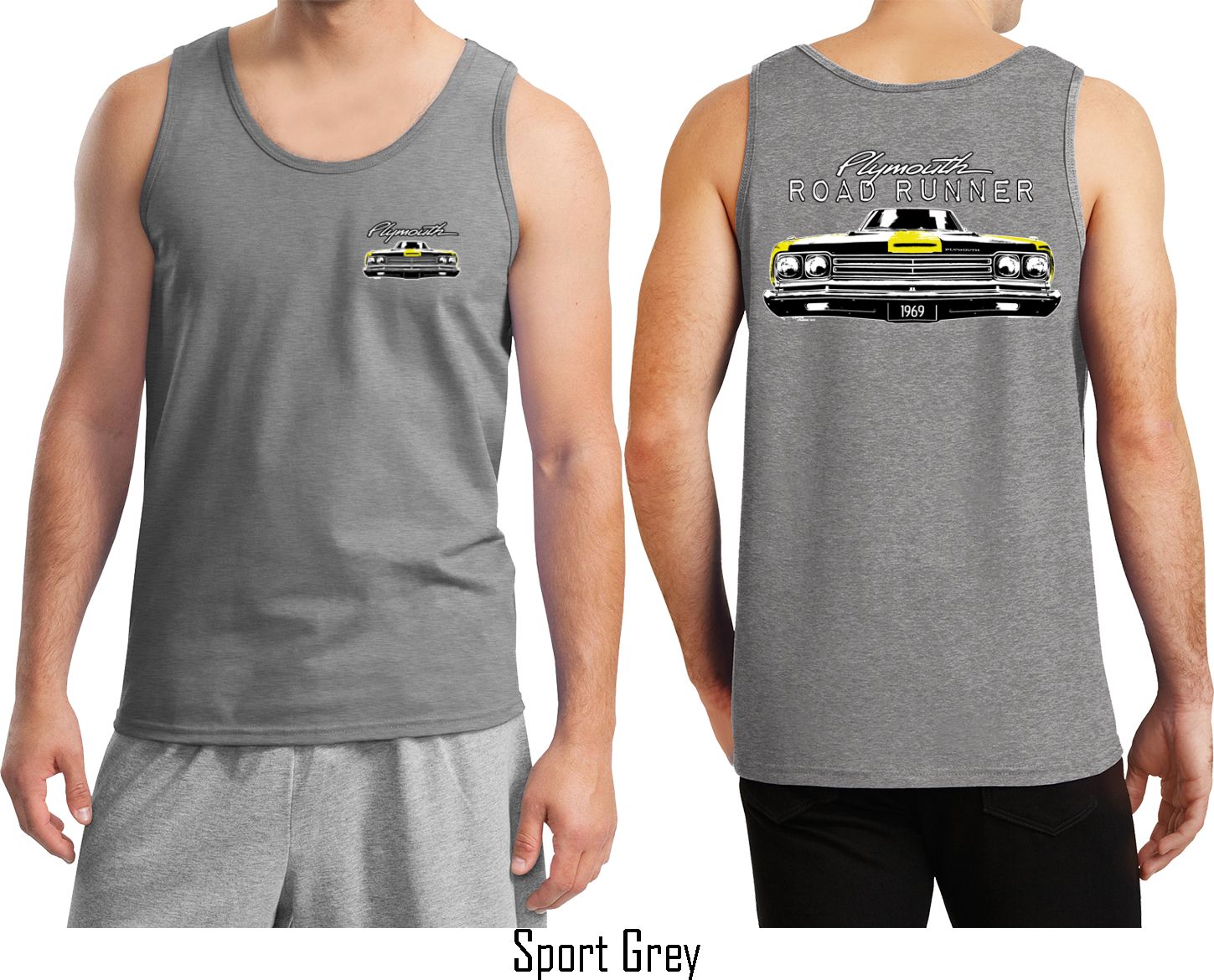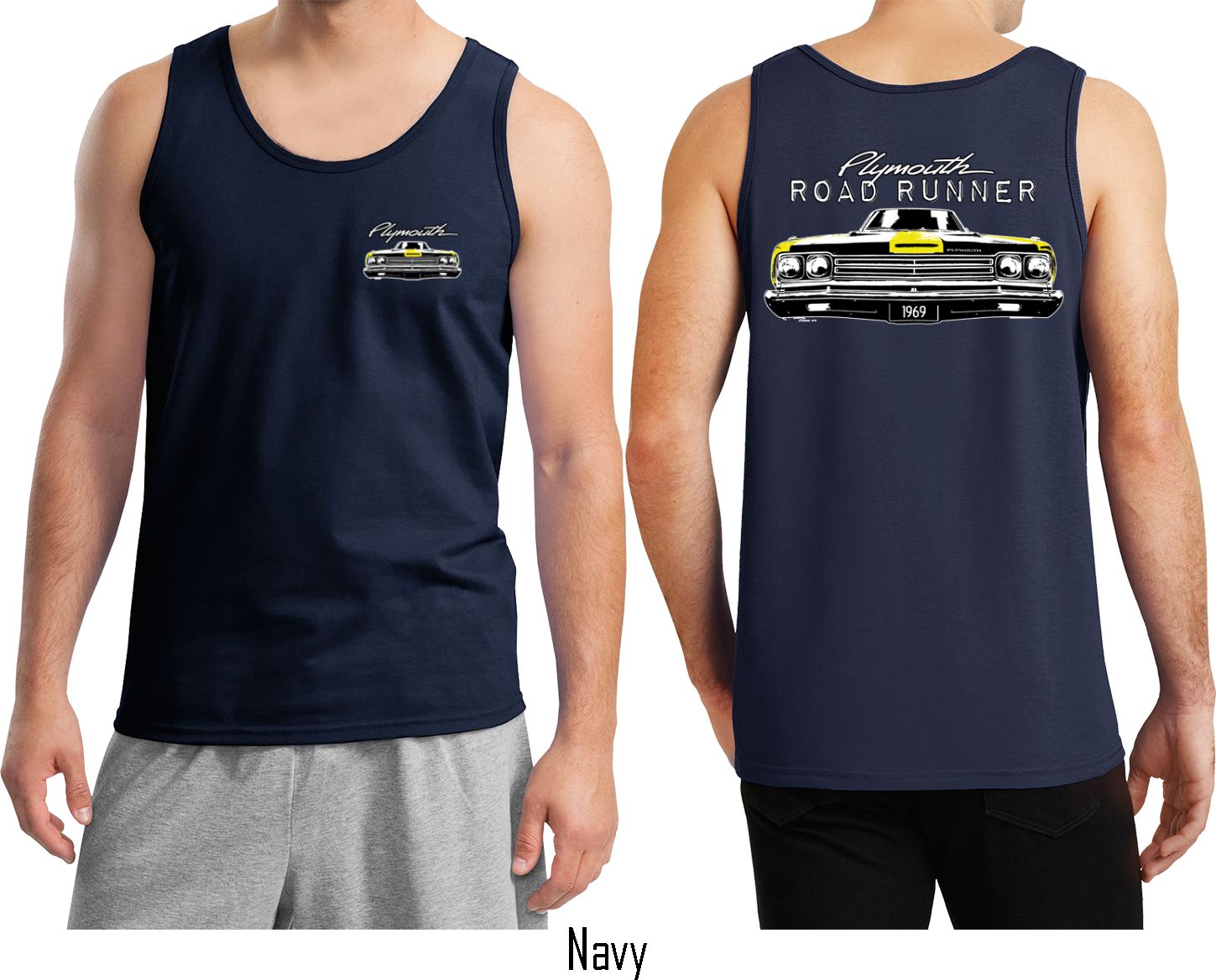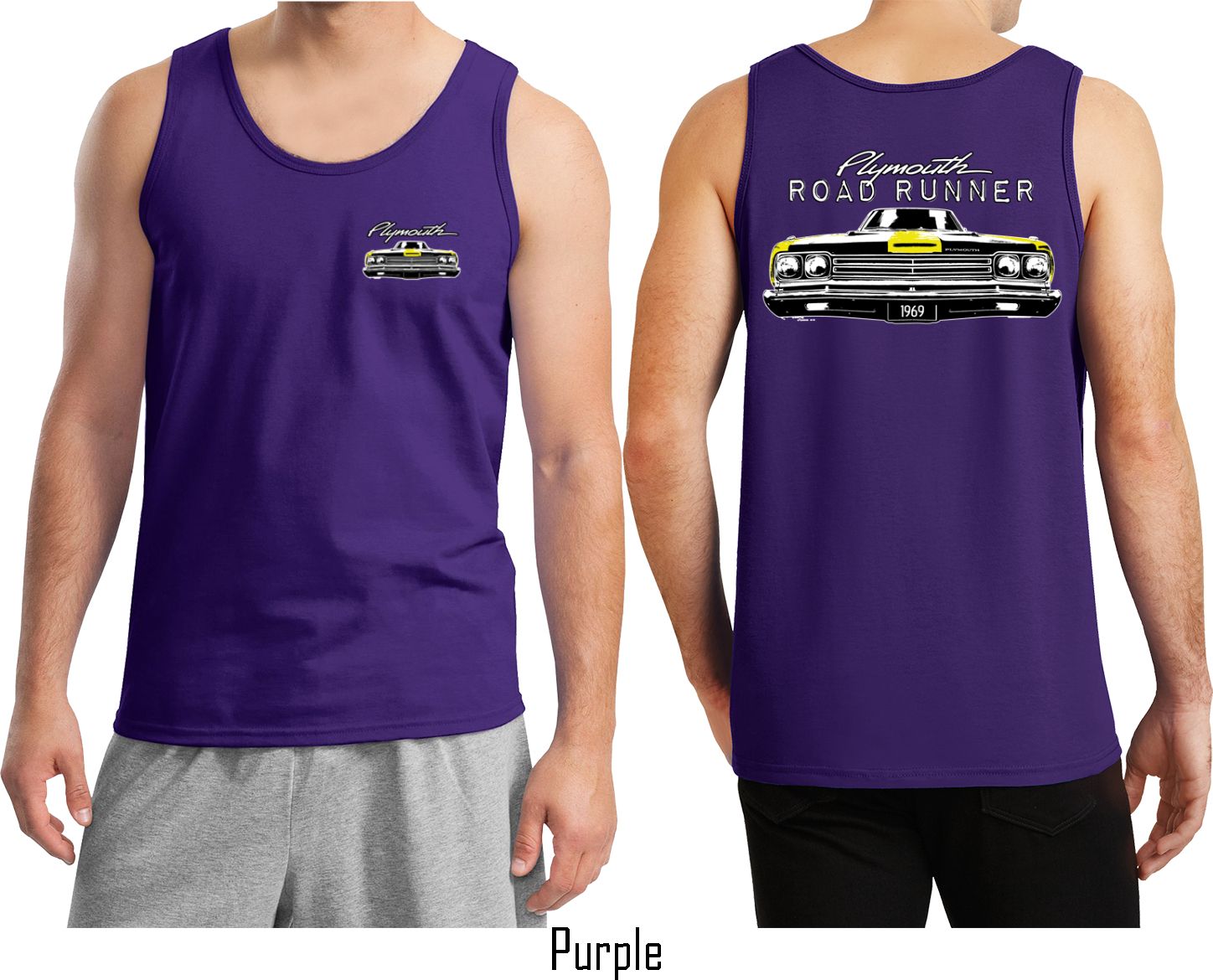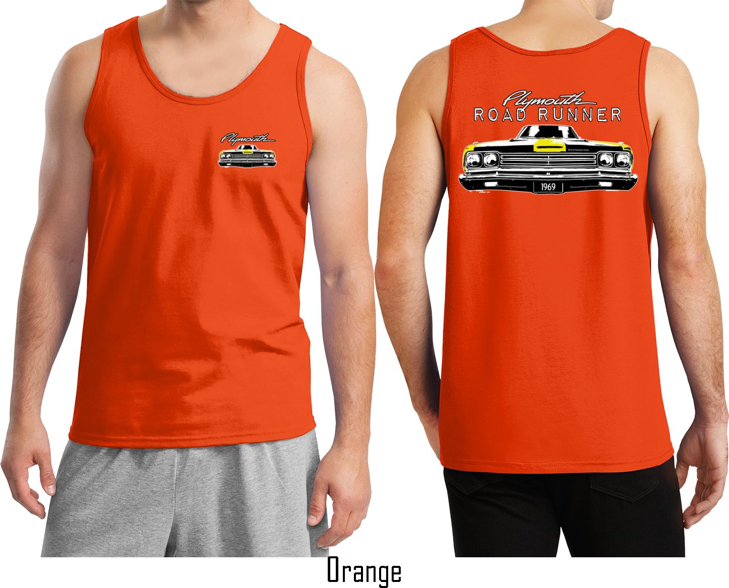 | | Dodge Yellow Plymouth Roadrunner (Front & Back) Tank TopA mens tanktop featuring the front end of a yellow 1969 Plymouth Roadrunner on the front and back. Our mens tank top is made of 100% cotton. (Ash and Sports Grey are made with a blend of cotton/poly) Available in sizes Small through 2XL. Machine wash cold with like colors; dry low heat. ![]() |