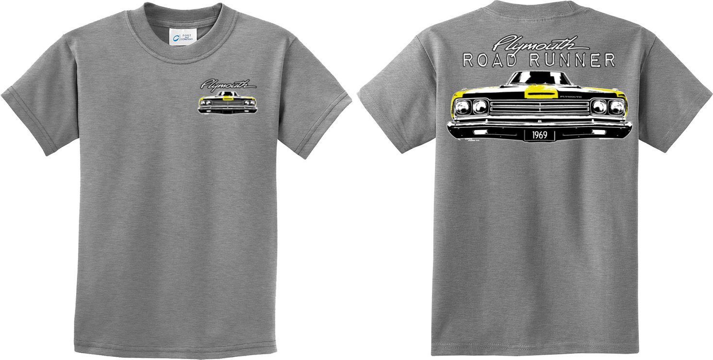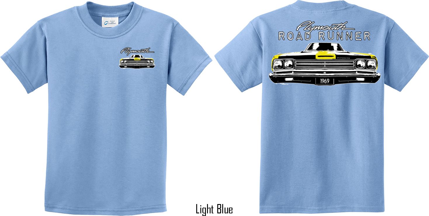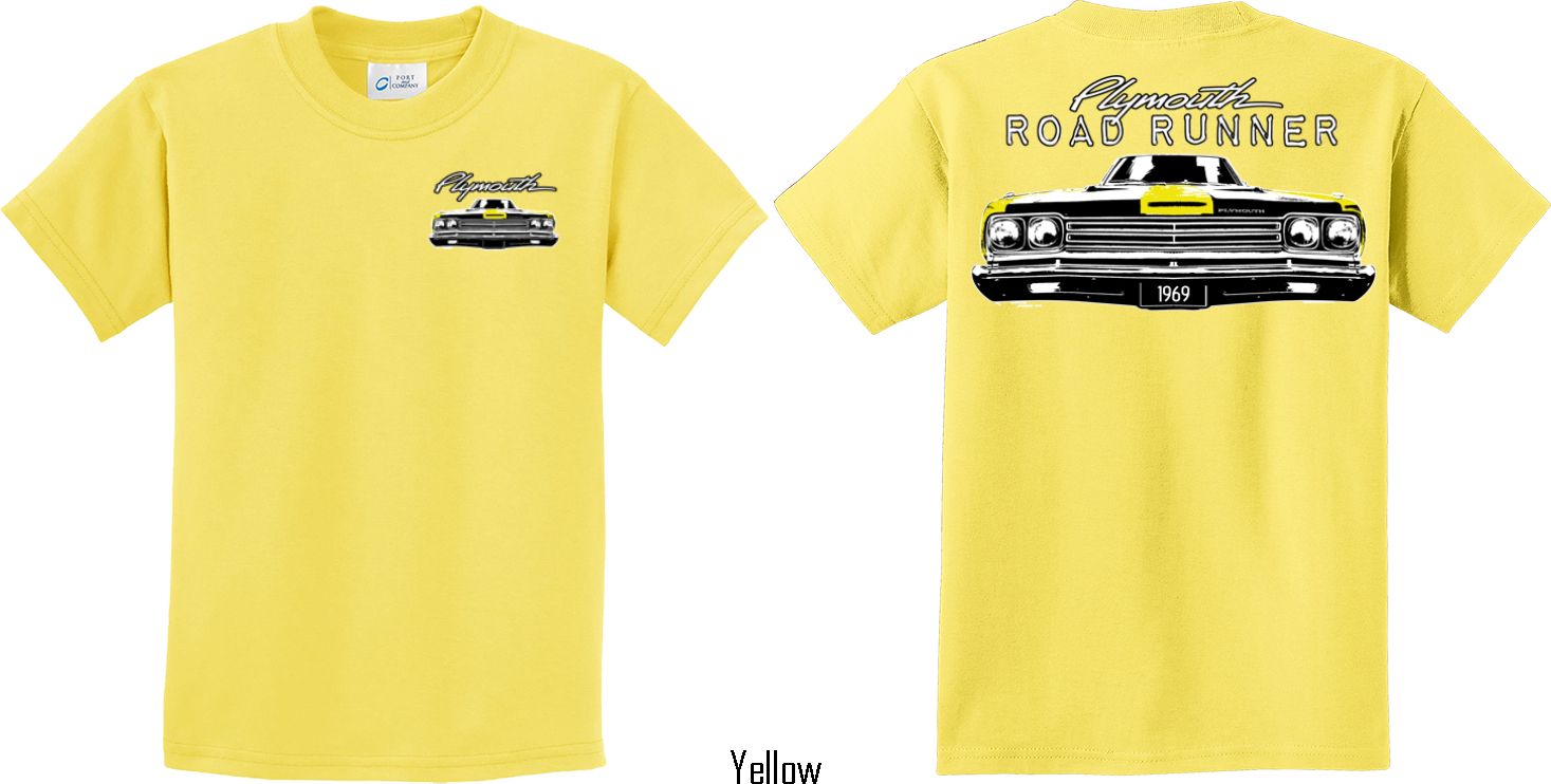 | | Dodge Yellow Plymouth Roadrunner (Front & Back) Youth T-shirtA youth t-shirt featuring the front end of a yellow 1969 Plymouth Roadrunner on the front and back. Our kids tee is made of 100% cotton. (Ash and Athletic Heather are made with a blend of cotton/poly) Available in sizes Small through XL. Machine wash cold with like colors; dry low heat. ![]() |