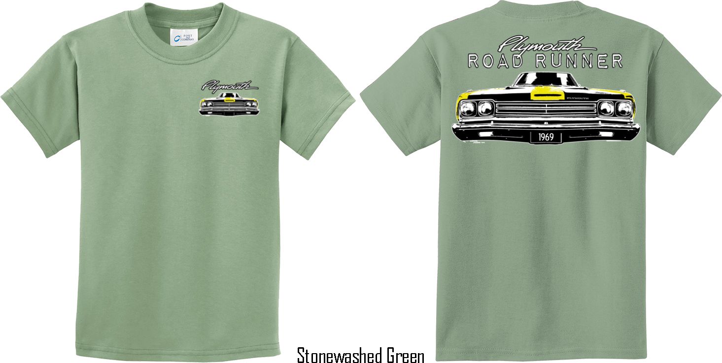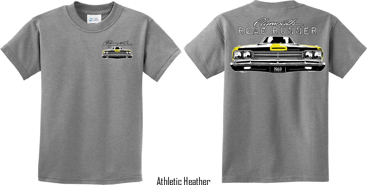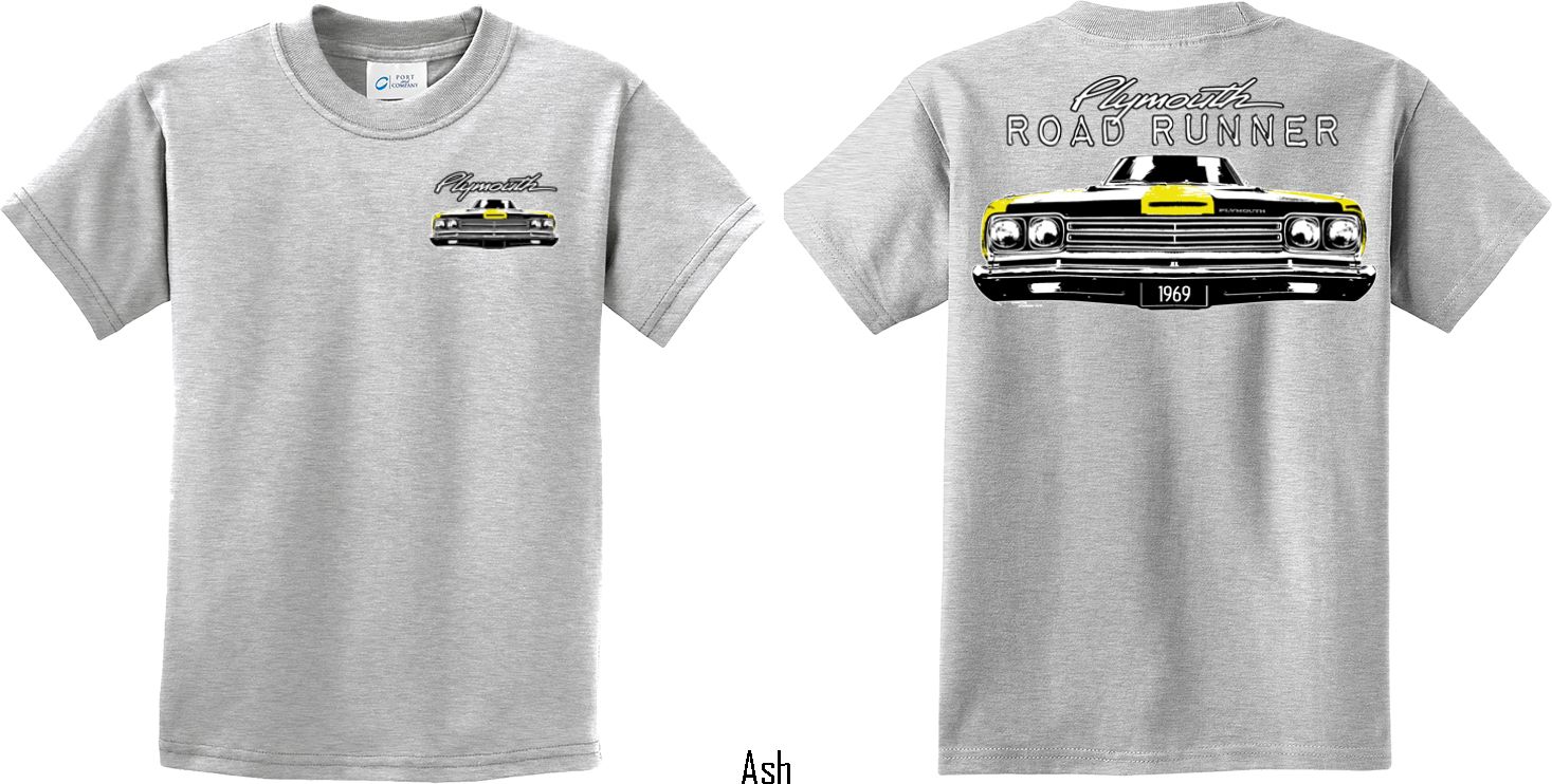 | | Dodge Yellow Plymouth Roadrunner (Front & Back) Youth T-shirtA youth t-shirt featuring the front end of a yellow 1969 Plymouth Roadrunner on the front and back. Our kids tee is made of 100% cotton. (Ash and Athletic Heather are made with a blend of cotton/poly) Available in sizes Small through XL. Machine wash cold with like colors; dry low heat. ![]() |