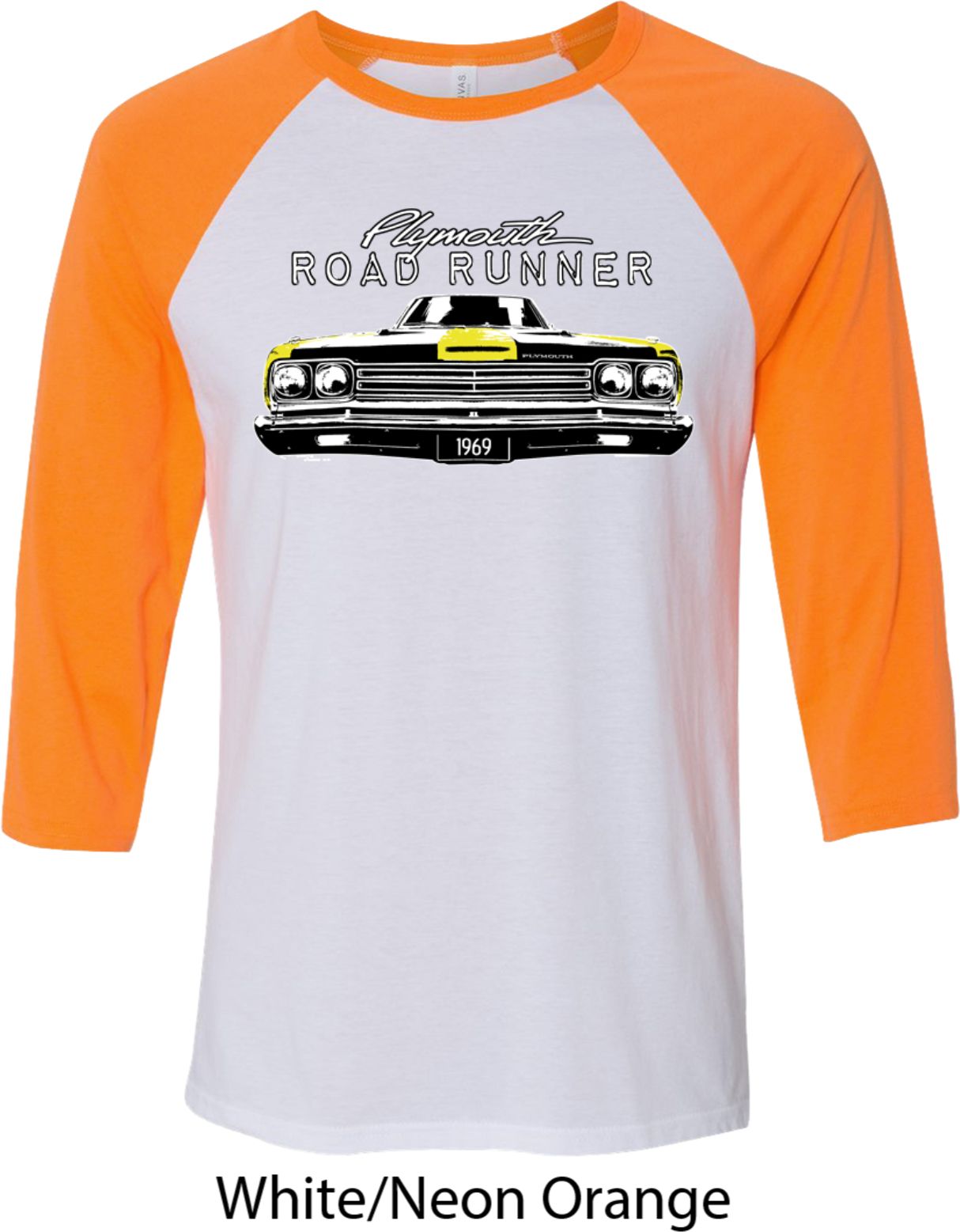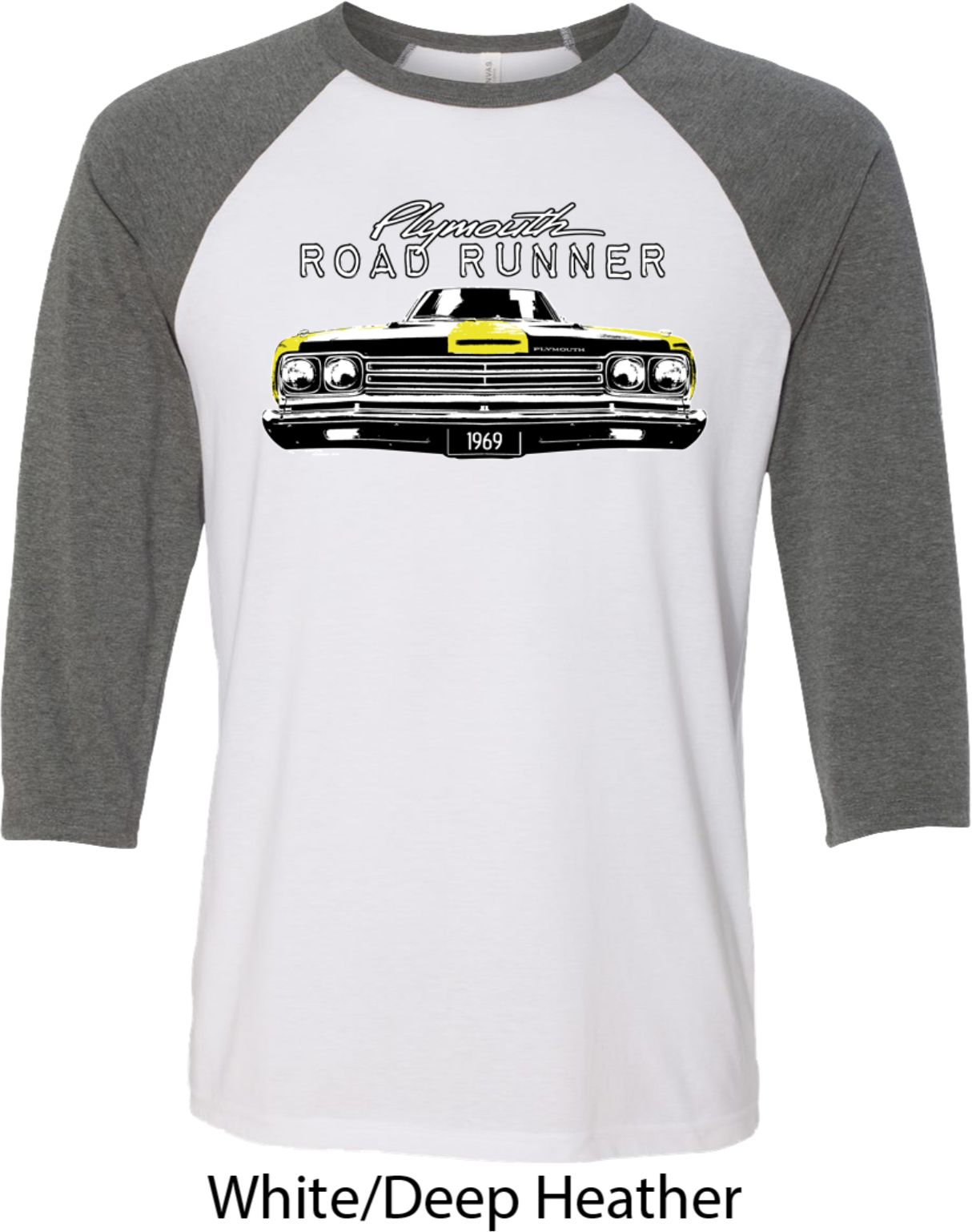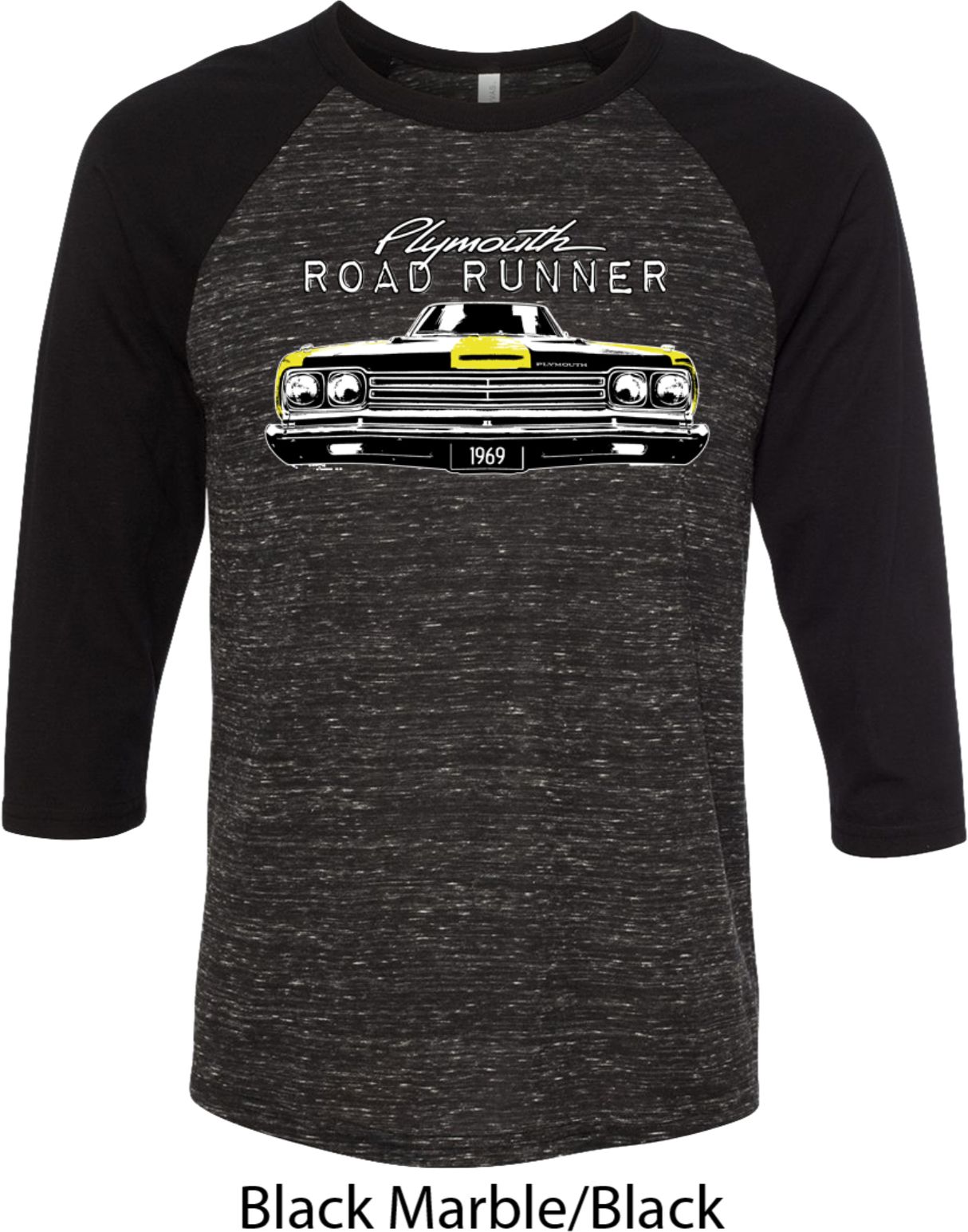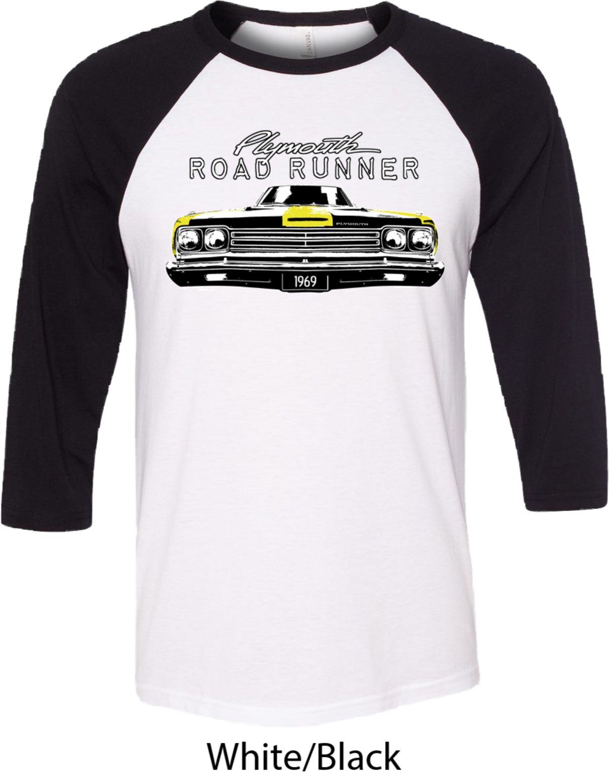 | | Dodge Yellow Plymouth Roadrunner Mens Raglan ShirtDodge Yellow Plymouth Roadrunner Mens Raglan Shirt Features a front profile of the classic 1969 Yellow Plymouth Roadrunner A cotton/poly/rayon blend Available in Small, Medium, Large, XL & 2XL Also available in colors Black/Deep Heather, Black/Red, Black/White, Black Marble/Black, Deep Heather/Black, Grey/Charcoal Black, Grey/Emerald, Grey/Maroon, Grey/Navy, Grey/Red, Grey/Royal, White/Asphalt, White/Black, and White/Dark Grey |