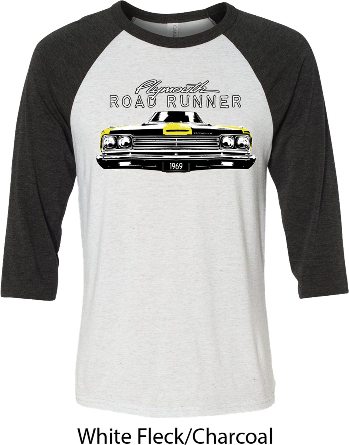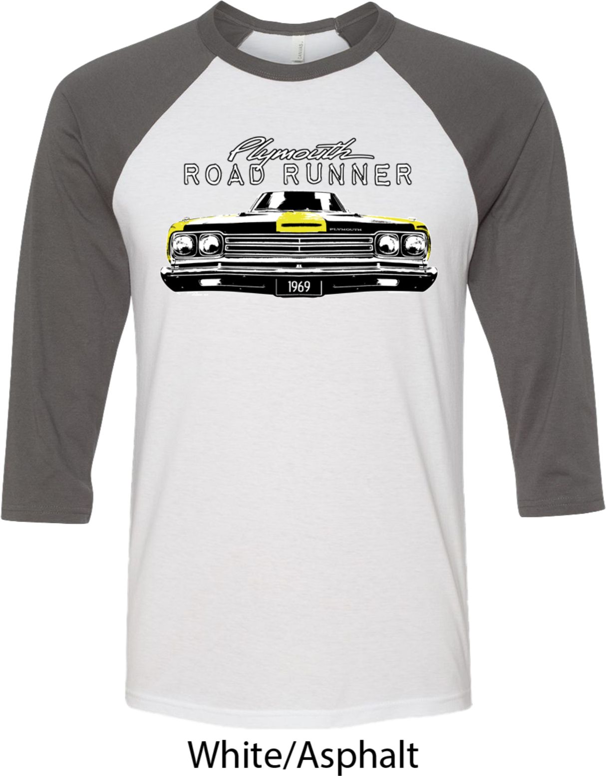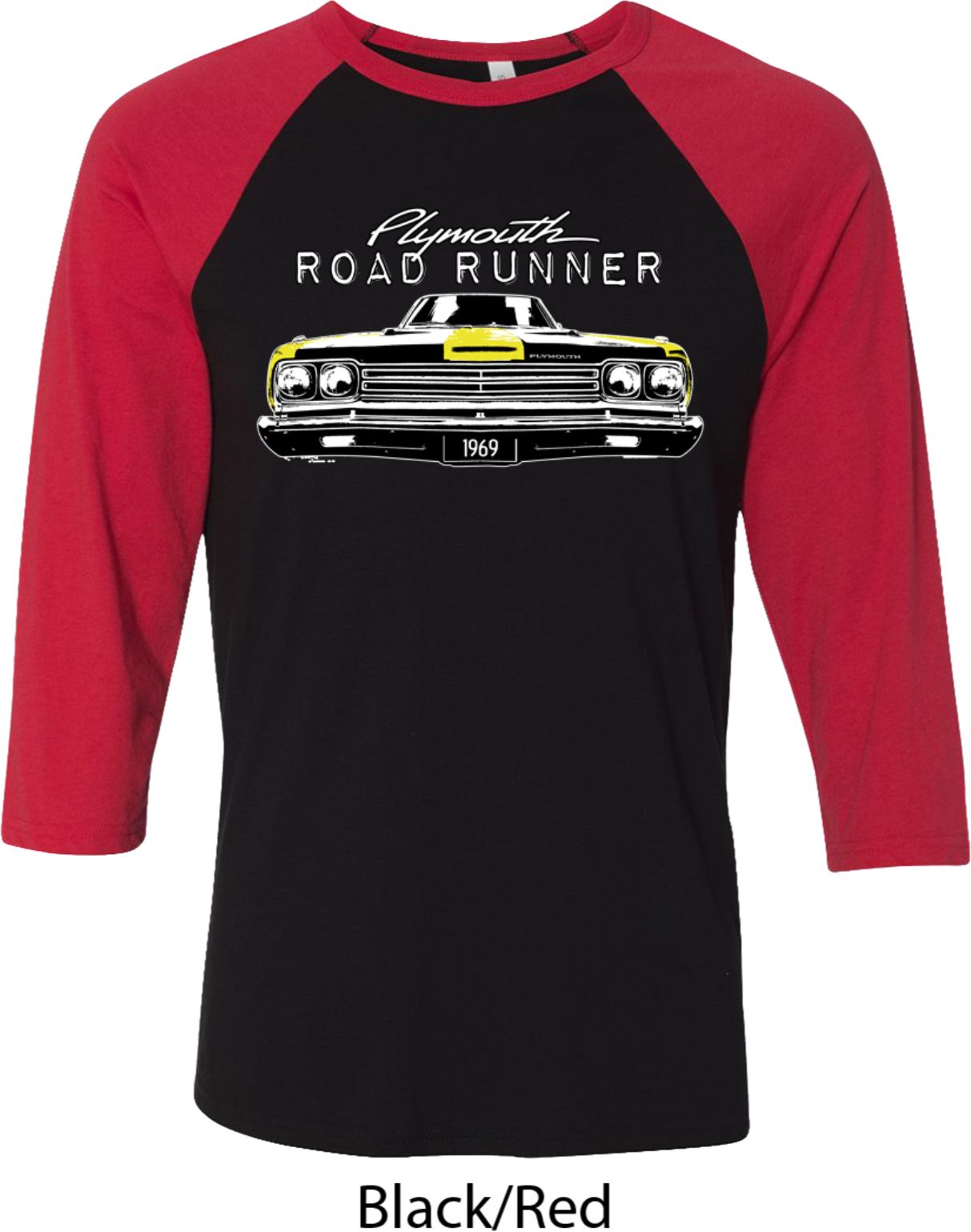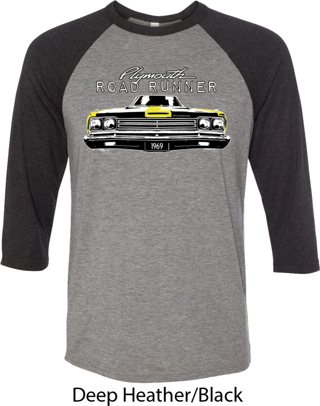 | | Dodge Yellow Plymouth Roadrunner Mens Raglan ShirtDodge Yellow Plymouth Roadrunner Mens Raglan Shirt Features a front profile of the classic 1969 Yellow Plymouth Roadrunner A cotton/poly/rayon blend Available in Small, Medium, Large, XL & 2XL Also available in colors Black/Deep Heather, Black/Red, Black/White, Black Marble/Black, Deep Heather/Black, Grey/Charcoal Black, Grey/Emerald, Grey/Maroon, Grey/Navy, Grey/Red, Grey/Royal, White/Asphalt, White/Black, and White/Dark Grey |