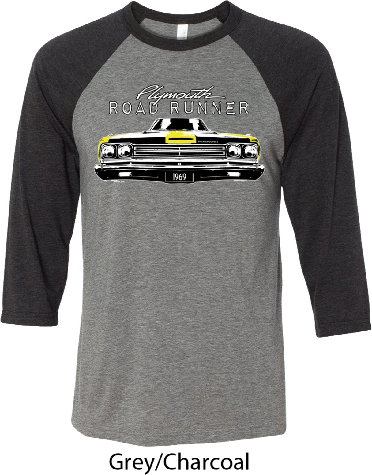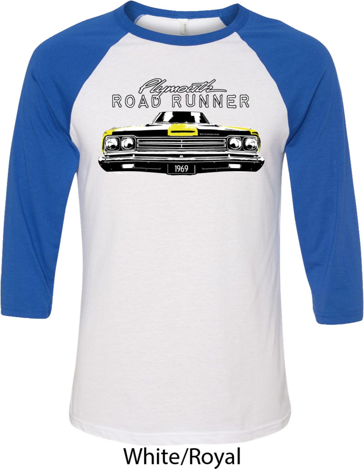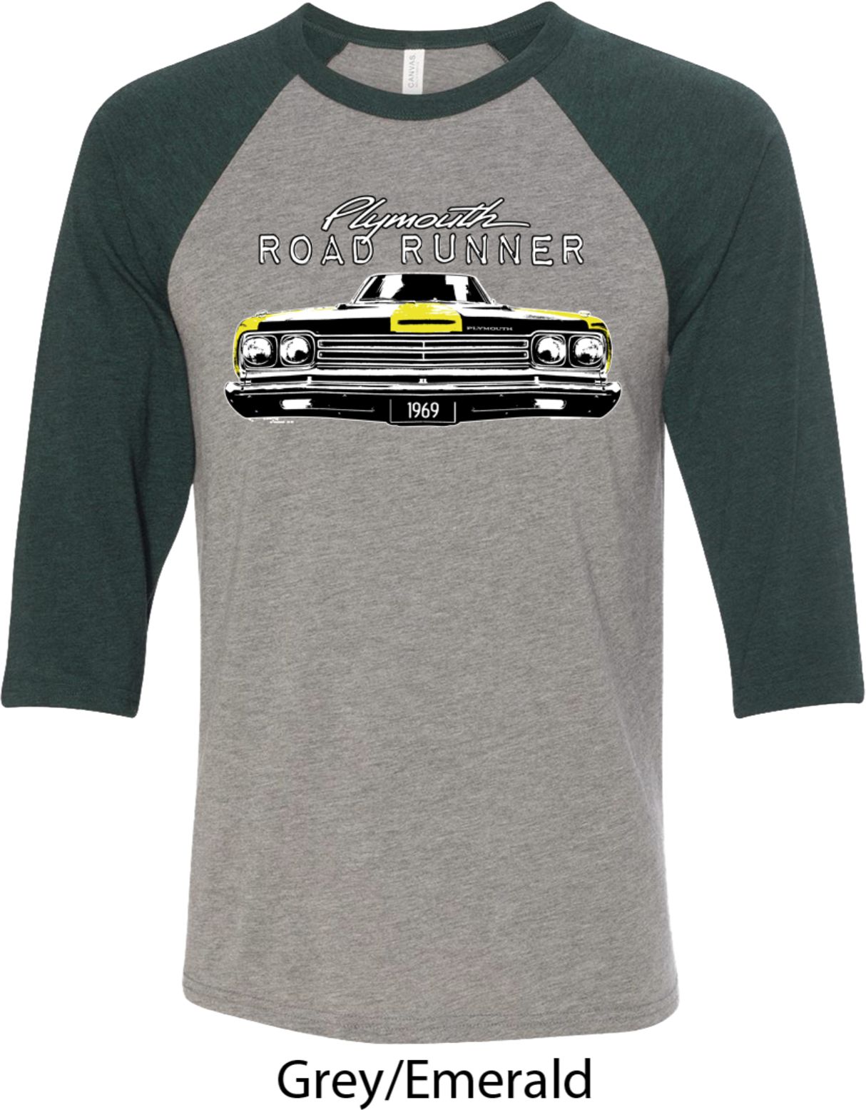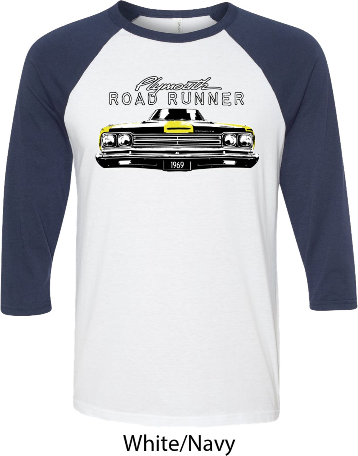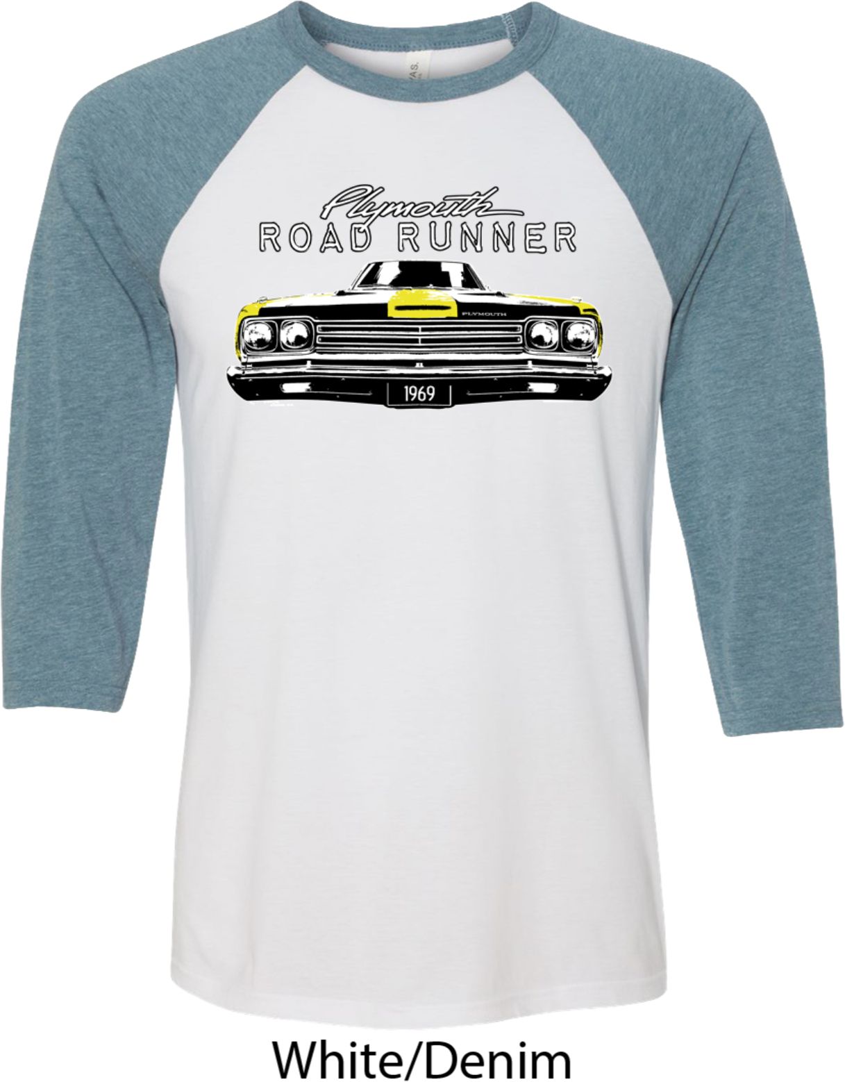 | | Dodge Yellow Plymouth Roadrunner Mens Raglan ShirtDodge Yellow Plymouth Roadrunner Mens Raglan Shirt Features a front profile of the classic 1969 Yellow Plymouth Roadrunner A cotton/poly/rayon blend Available in Small, Medium, Large, XL & 2XL Also available in colors Black/Deep Heather, Black/Red, Black/White, Black Marble/Black, Deep Heather/Black, Grey/Charcoal Black, Grey/Emerald, Grey/Maroon, Grey/Navy, Grey/Red, Grey/Royal, White/Asphalt, White/Black, and White/Dark Grey |