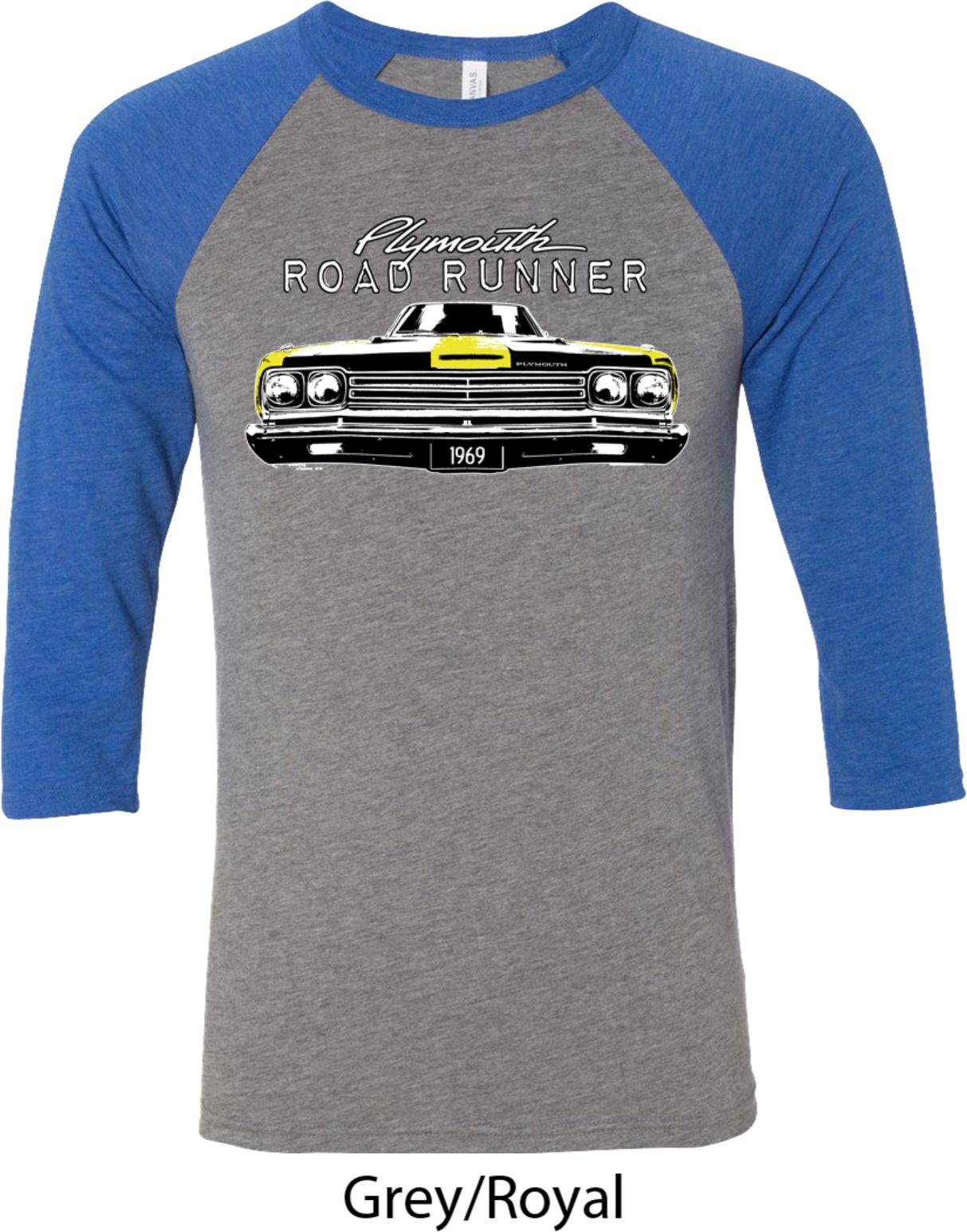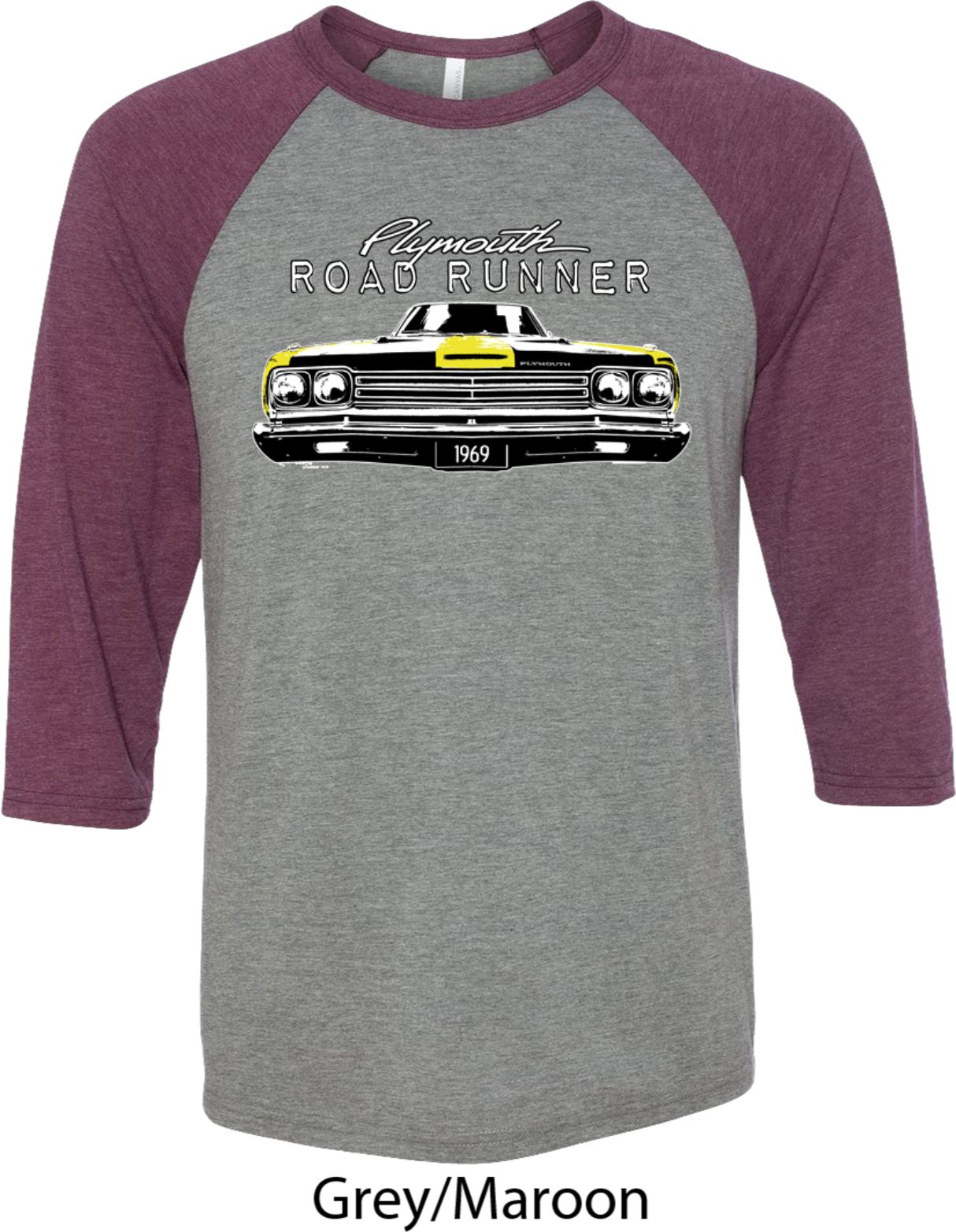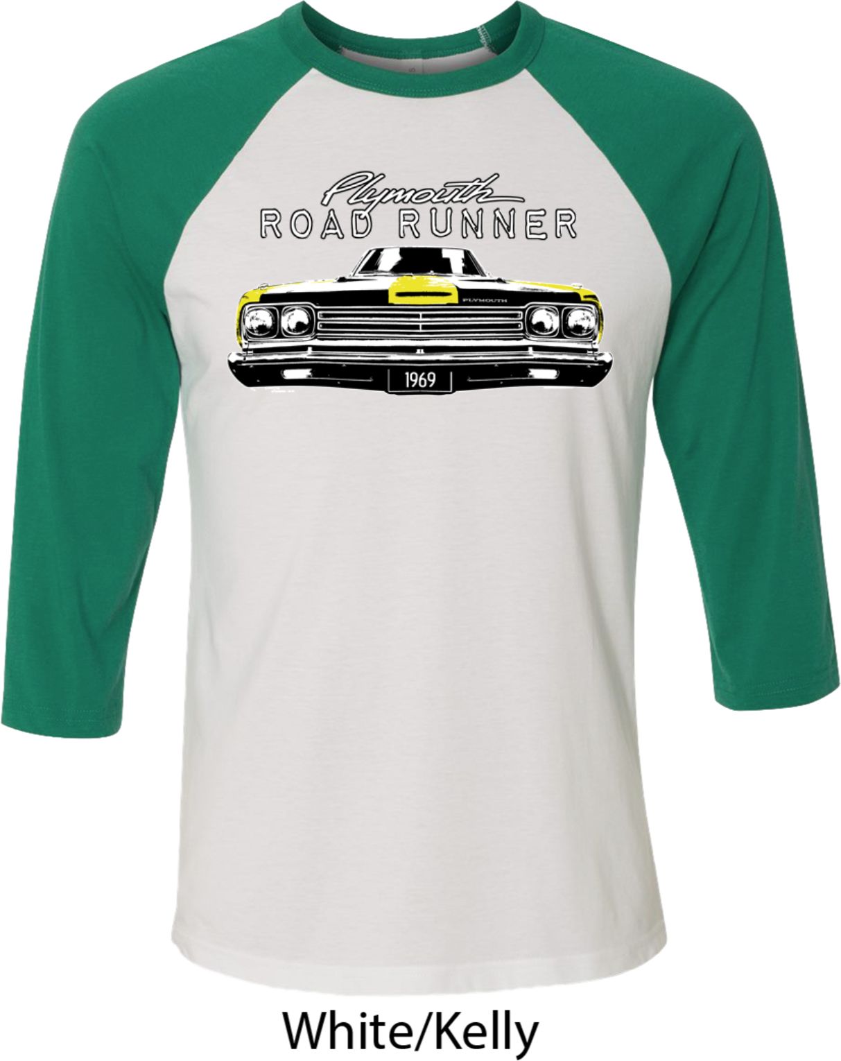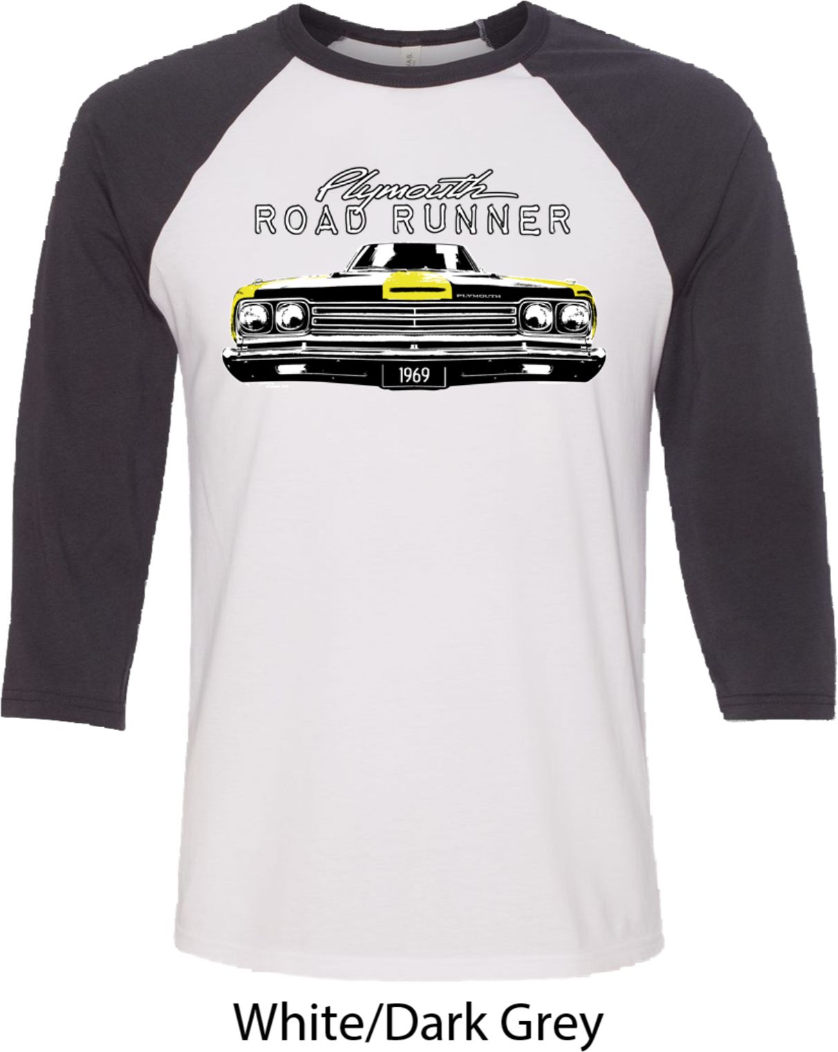 | | Dodge Yellow Plymouth Roadrunner Mens Raglan ShirtDodge Yellow Plymouth Roadrunner Mens Raglan Shirt Features a front profile of the classic 1969 Yellow Plymouth Roadrunner A cotton/poly/rayon blend Available in Small, Medium, Large, XL & 2XL Also available in colors Black/Deep Heather, Black/Red, Black/White, Black Marble/Black, Deep Heather/Black, Grey/Charcoal Black, Grey/Emerald, Grey/Maroon, Grey/Navy, Grey/Red, Grey/Royal, White/Asphalt, White/Black, and White/Dark Grey |