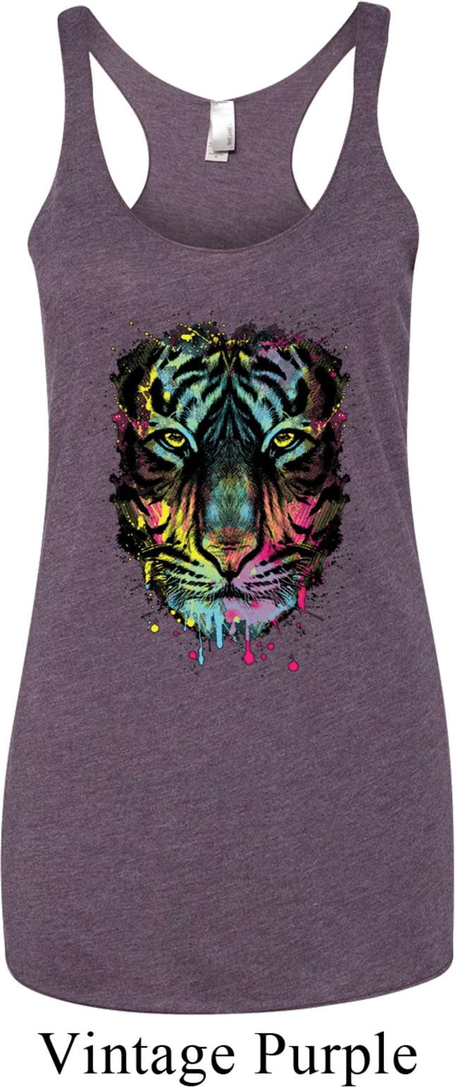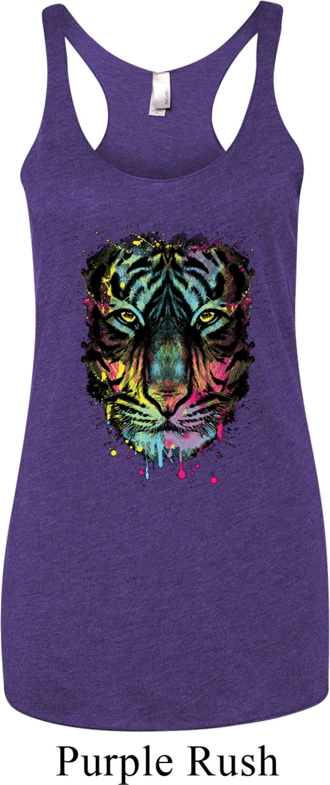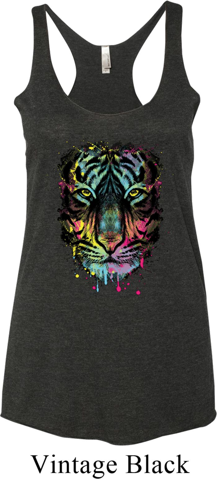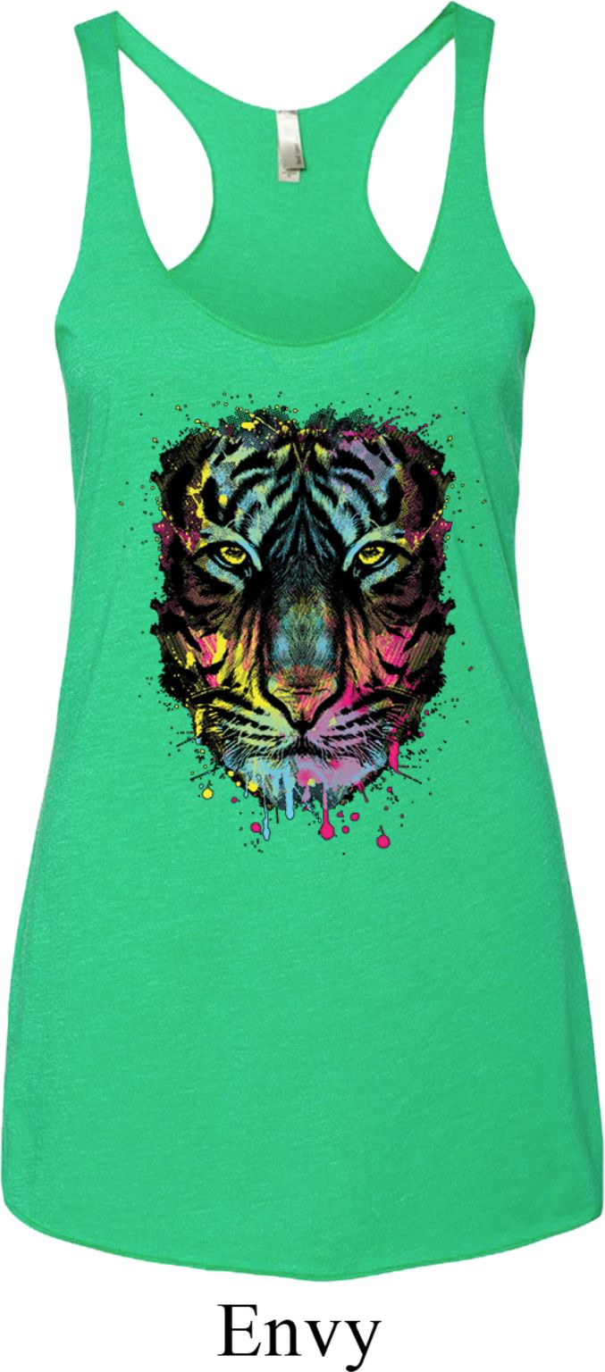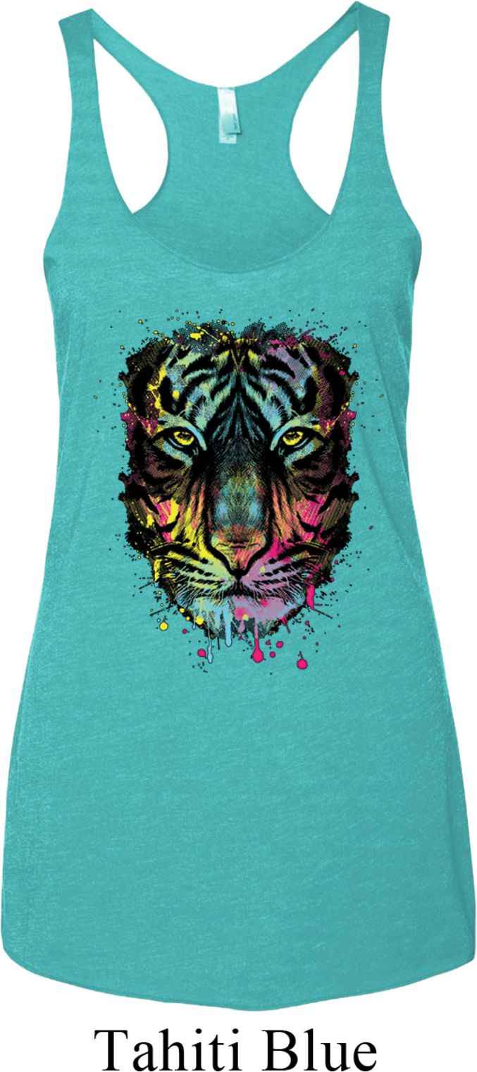 | | Dripping Neon Tiger Ladies Tri Blend Racerback Tank TopDripping Neon Tiger Ladies Tri Blend Racerback Tank Top A tiger shirt with a cool dripping effect A cotton/poly/rayon blend Available in Ladies XS, Ladies Small, Ladies Medium, Ladies Large & Ladies XL Also available in colors Envy, Heather White, Indigo, Macchiato, Premium Heather, Purple Rush, Tahiti, Venetian Grey, Vintage Black, Vintage Navy, Vintage Pink, Vintage Purple, Vintage Red, and Vintage Royal |