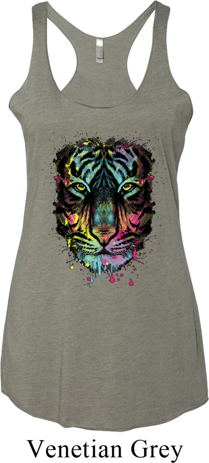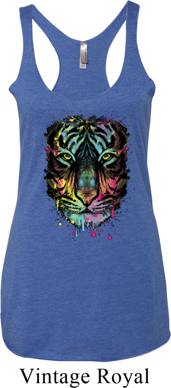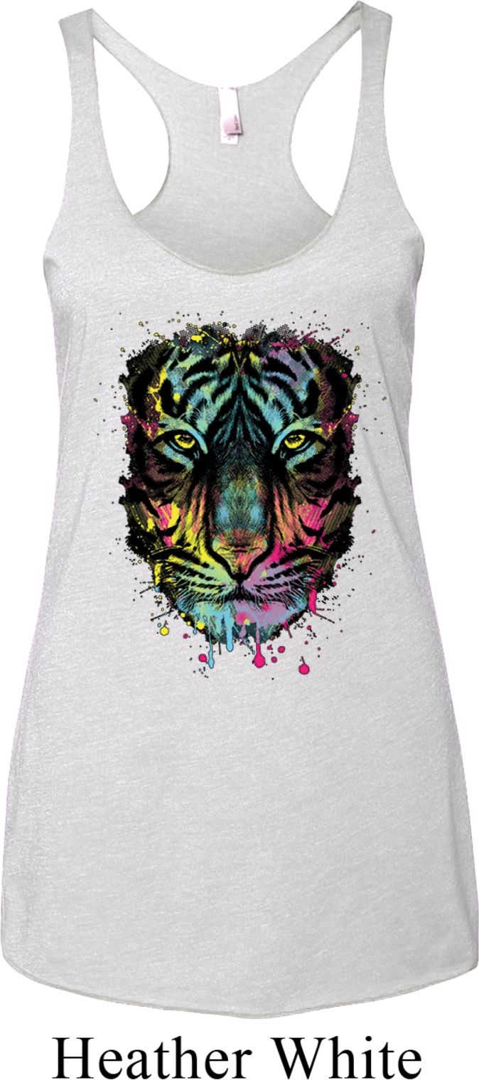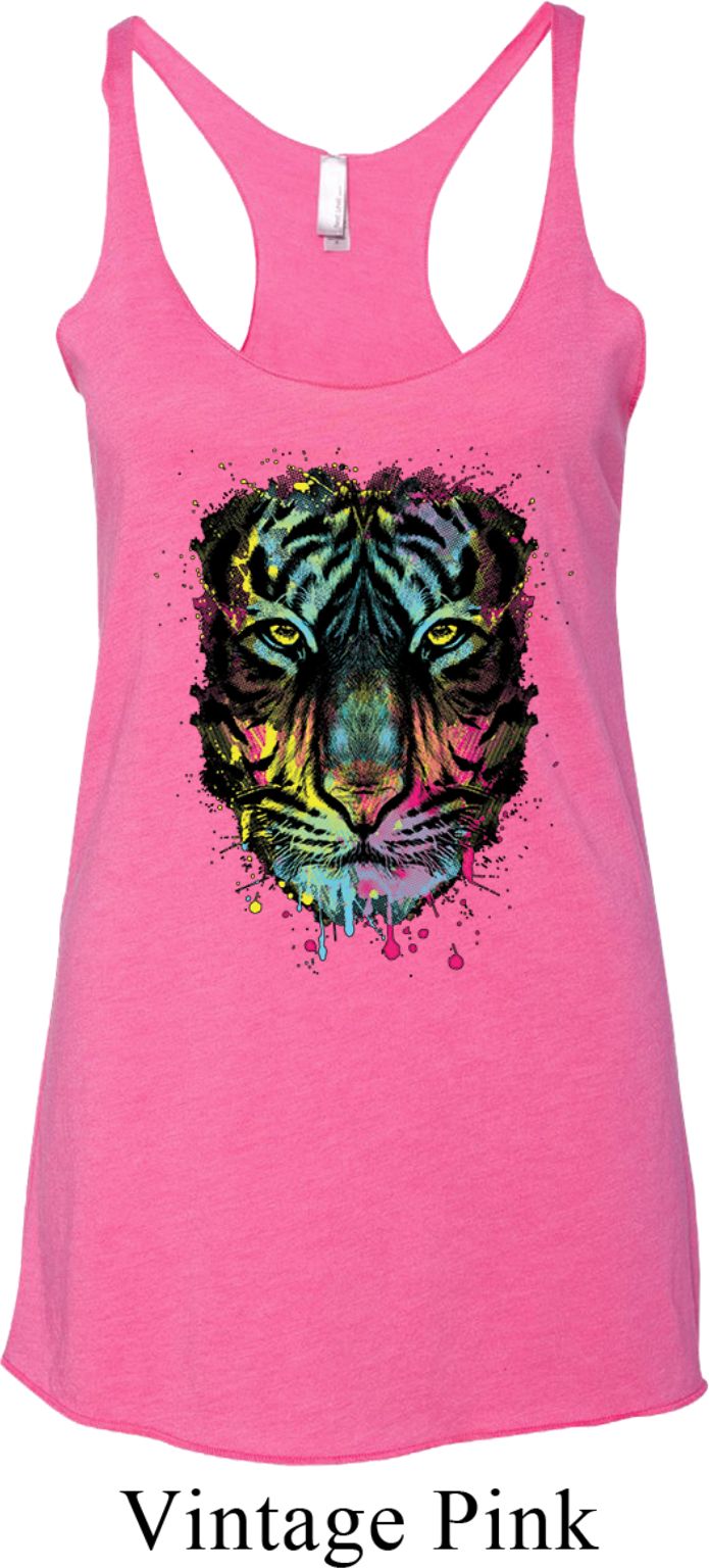 | | Dripping Neon Tiger Ladies Tri Blend Racerback Tank TopDripping Neon Tiger Ladies Tri Blend Racerback Tank Top A tiger shirt with a cool dripping effect A cotton/poly/rayon blend Available in Ladies XS, Ladies Small, Ladies Medium, Ladies Large & Ladies XL Also available in colors Envy, Heather White, Indigo, Macchiato, Premium Heather, Purple Rush, Tahiti, Venetian Grey, Vintage Black, Vintage Navy, Vintage Pink, Vintage Purple, Vintage Red, and Vintage Royal |
